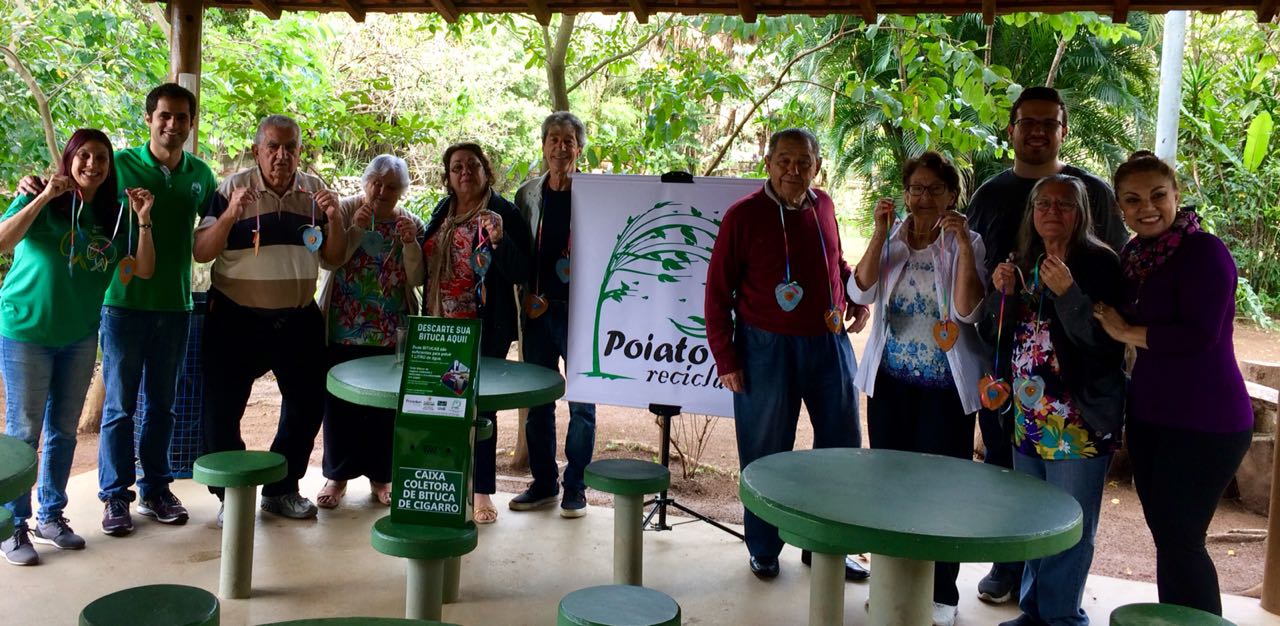 O Parque da Biquinha recebeu nesta terça-feira (18) os idosos para mais um dia de atividades do Clube Ecológico Roda Viva. Para celebrar o Dia da Árvore (21 de setembro), além de um bate-papo sobre o tema, eles confeccionaram um móbile com aromatizador feito a partir do papel reciclado de bitucas de cigarro.