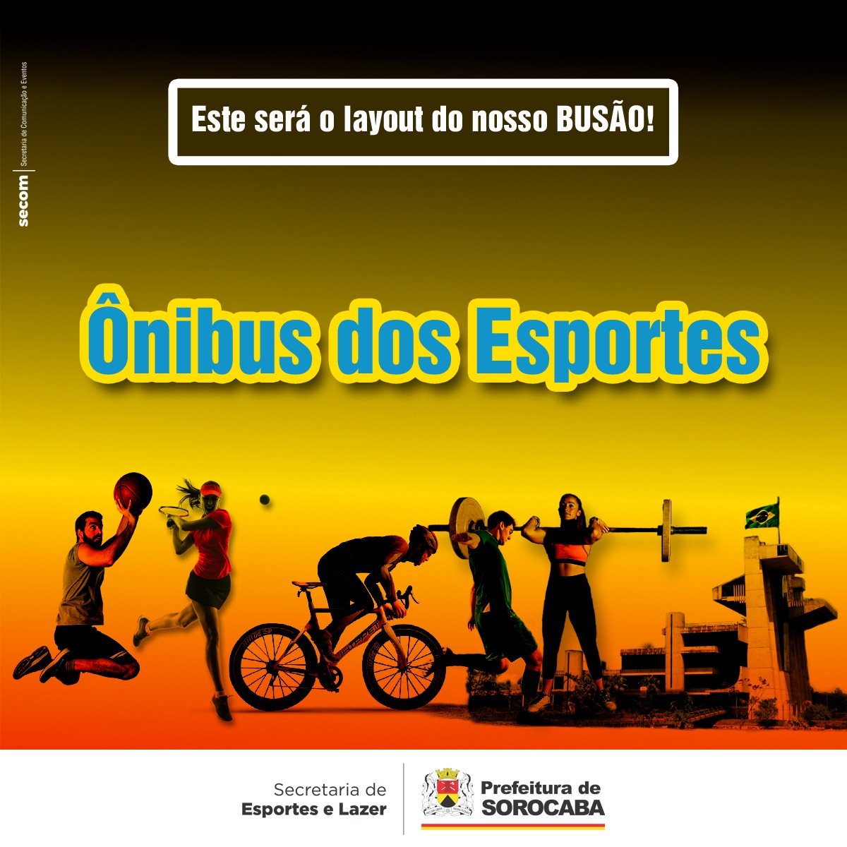 O Ônibus dos Esportes – cedido gentilmente pela empresa Consórcio Sorocaba (Consor) -, estará em breve de cara nova. Foi definido em votação realizada pela Prefeitura de Sorocaba, por meio da Secretaria de Esportes e Lazer (Semes), novo layout que vai caracterizar o veículo. A escolha foi feita por meio de votação entre dois layouts – desenvolvidos pelo departamento de publicidade da Secretaria de Comunicação e Eventos (Secom) –, em suas páginas do Facebook. A intenção da Semes é fazer com o que o ônibus possa ser reconhecido em todos os cantos da cidade.