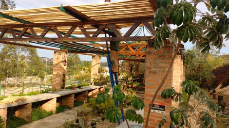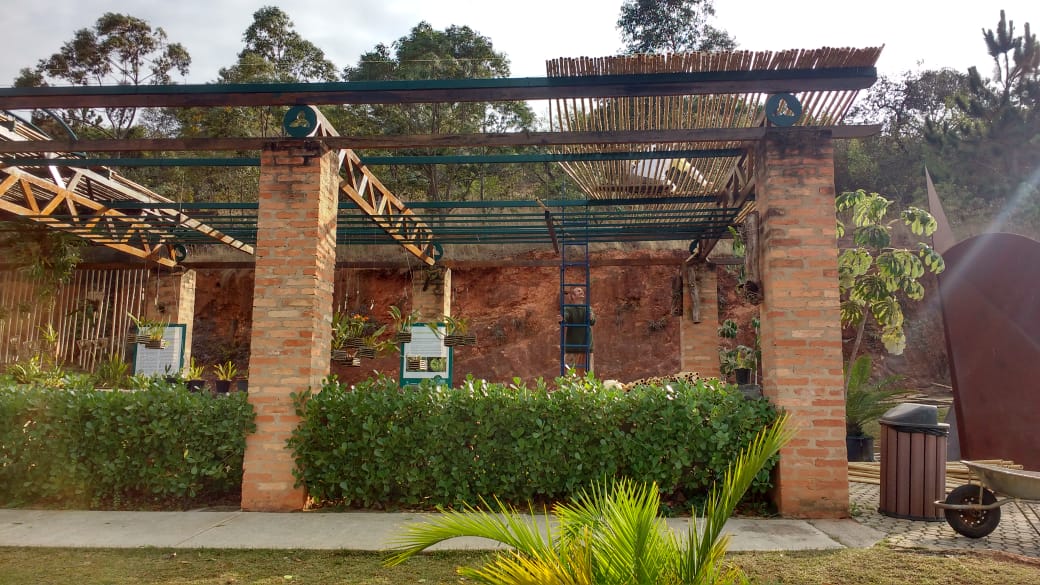 O Orquidário foi construído com tijolos de demolição, ferragens reaproveitadas e bambu, e foi projetado para proporcionar um ambiente mais adequado ao cultivo da planta.