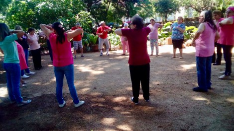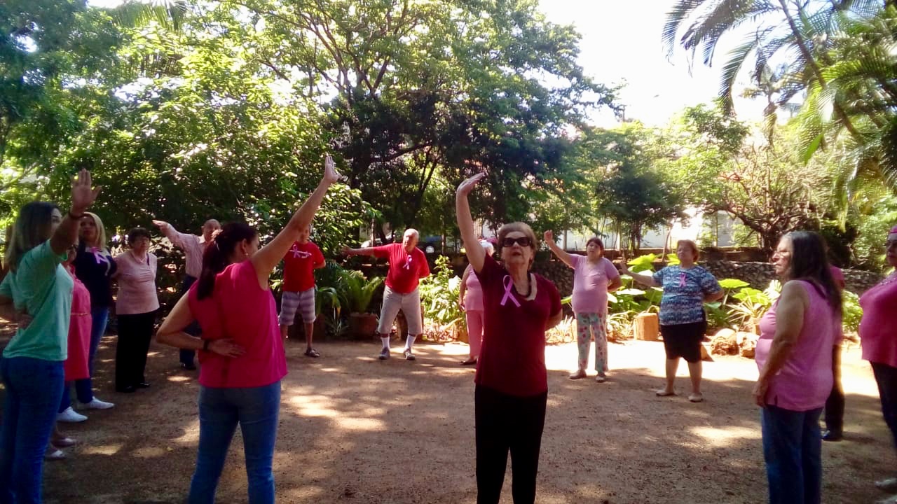 Na manhã desta terça-feira (30), os idosos que participam do Clube Ecológico Roda Viva no Parque da Biquinha aderiram à campanha Outubro Rosa e vestiram a cor que simboliza a luta pela conscientização sobre a importância da prevenção e diagnóstico precoce do câncer de mama, além de fazerem um bate-papo sobre o tema.