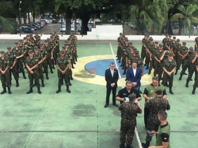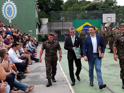 Na ocasião, o prefeito foi representado pelos secretários municipais coronel Antonio Valdir Gonçalves Filho (Segurança e Defesa Civil) e Fábio Pilão (Conservação, Serviços Públicos e Obras). “Uma emocionante solenidade com a presença dos familiares dos atiradores. Entraram marchando de calça jeans e camiseta, retiraram-se e rapidamente retornaram com o uniforme camuflado do Exército, que conquistam o direito de trajar a partir desta data”, explica o secretário municipal da Segurança e Defesa Civil.