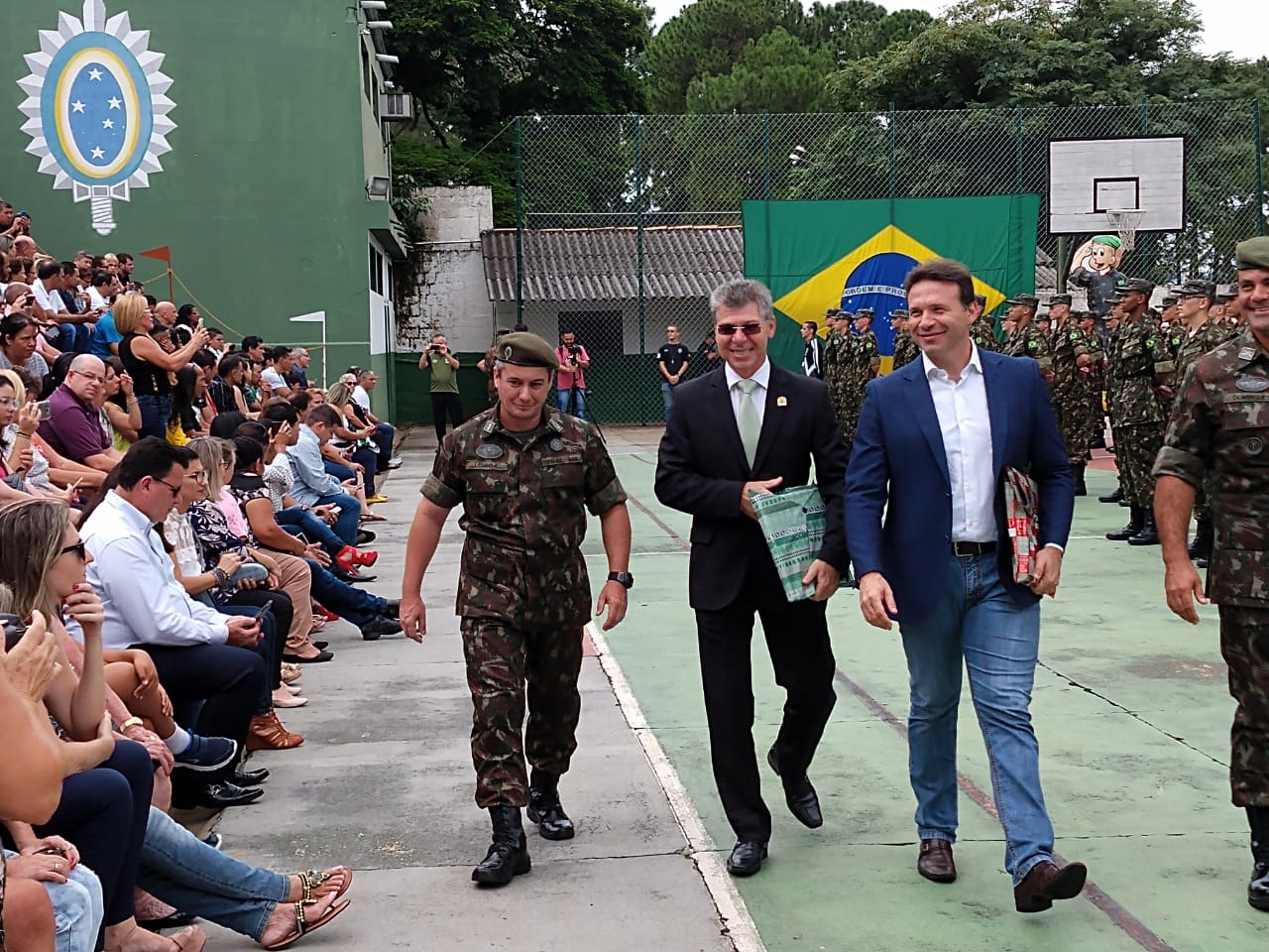 Os secretários municipais receberam os presentes que serão repassados ao prefeito. O comandante da 14ª Circunscrição de Serviço Militar (14ª CSM) do EB, tenente coronel Marcelo Yamada Domingues, fez a entrega ao secretário e coronel Antonio Valdir Gonçalves Filho e o chefe da instrução do Tiro de Guerra 02-040, subtenente Flávio Lisboa Afonso, entregou ao secretário municipal Fábio Pilão. Os secretários municipais disseram que a cerimônia foi muito emocionante e agradou os presentes que cantaram o Hino Nacional Brasileiro.