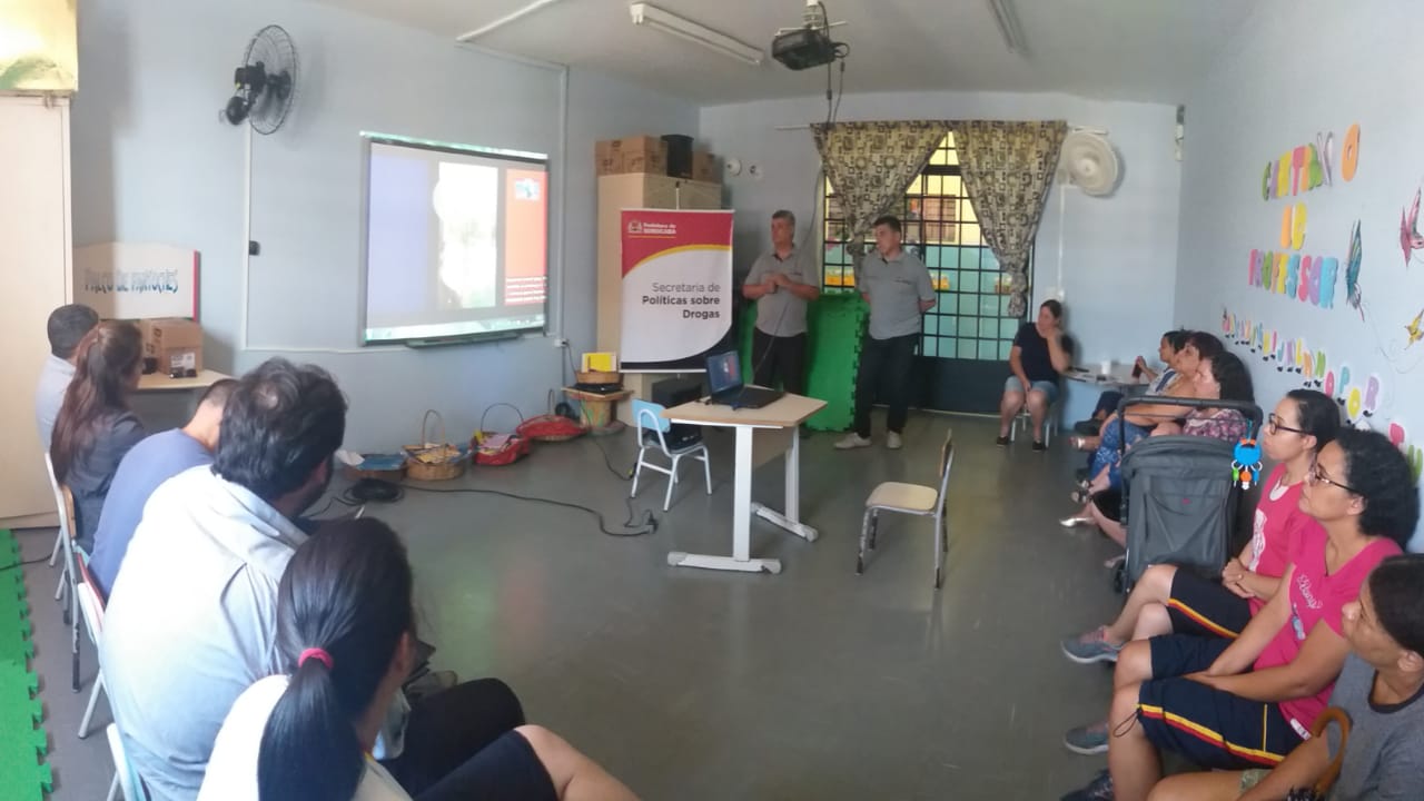 Cerca de quinze pessoas ouviram sobre a importância de se cuidar atentamente das crianças pensando-se, principalmente, no futuro delas. A ação, desenvolvida pela Sepod tem o objetivo de orientar sobre os perigos das drogas lícitas, mais precisamente sobre aquelas que estão dentro das casas, por meio do exemplo dos pais. Drogas lícitas como cigarro, bebidas alcoólicas e remédios podem ser uma porta de entrada para o mundo das drogas ilícitas e do vício, já que esses produtos têm fácil acesso e estão em constante exposição.