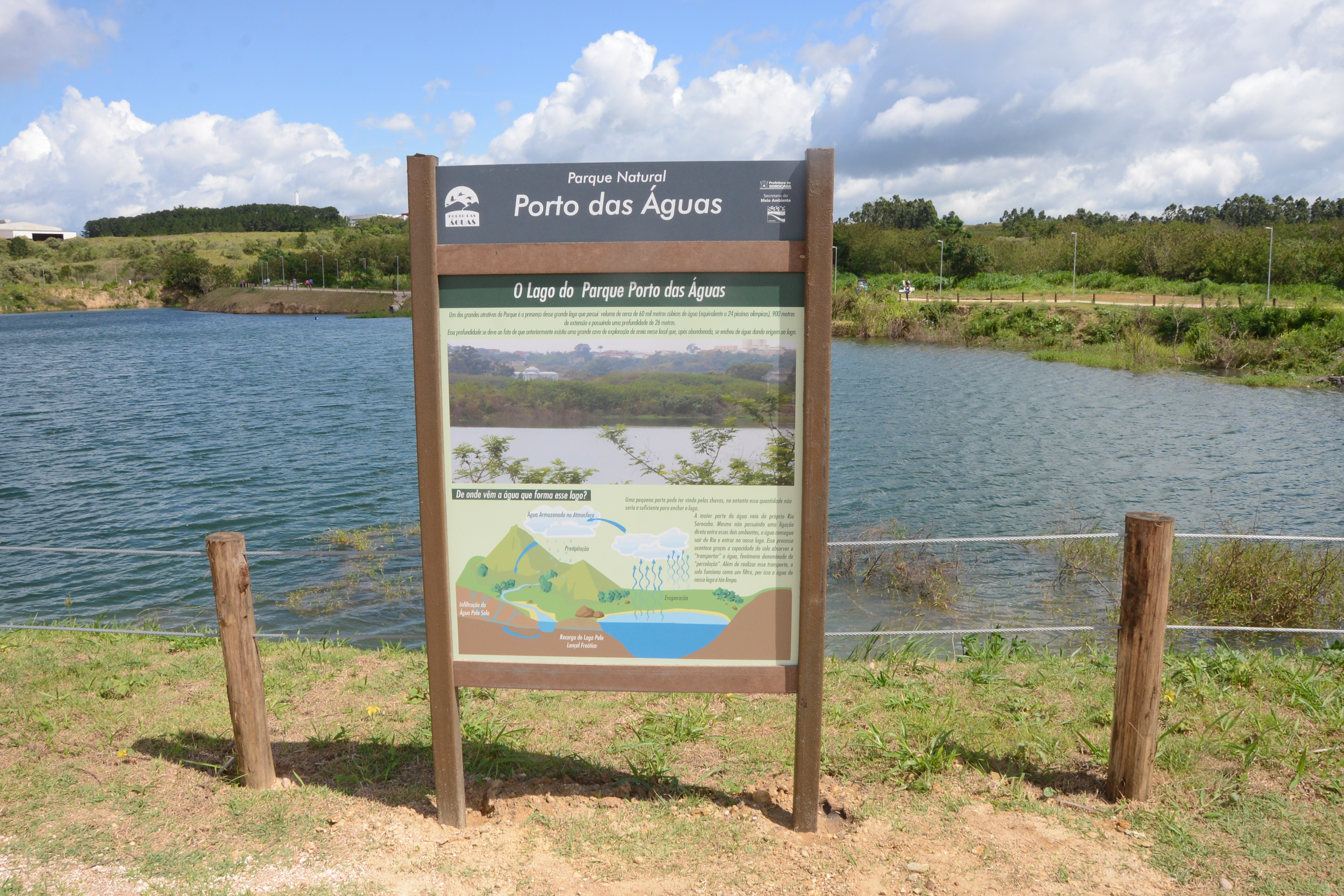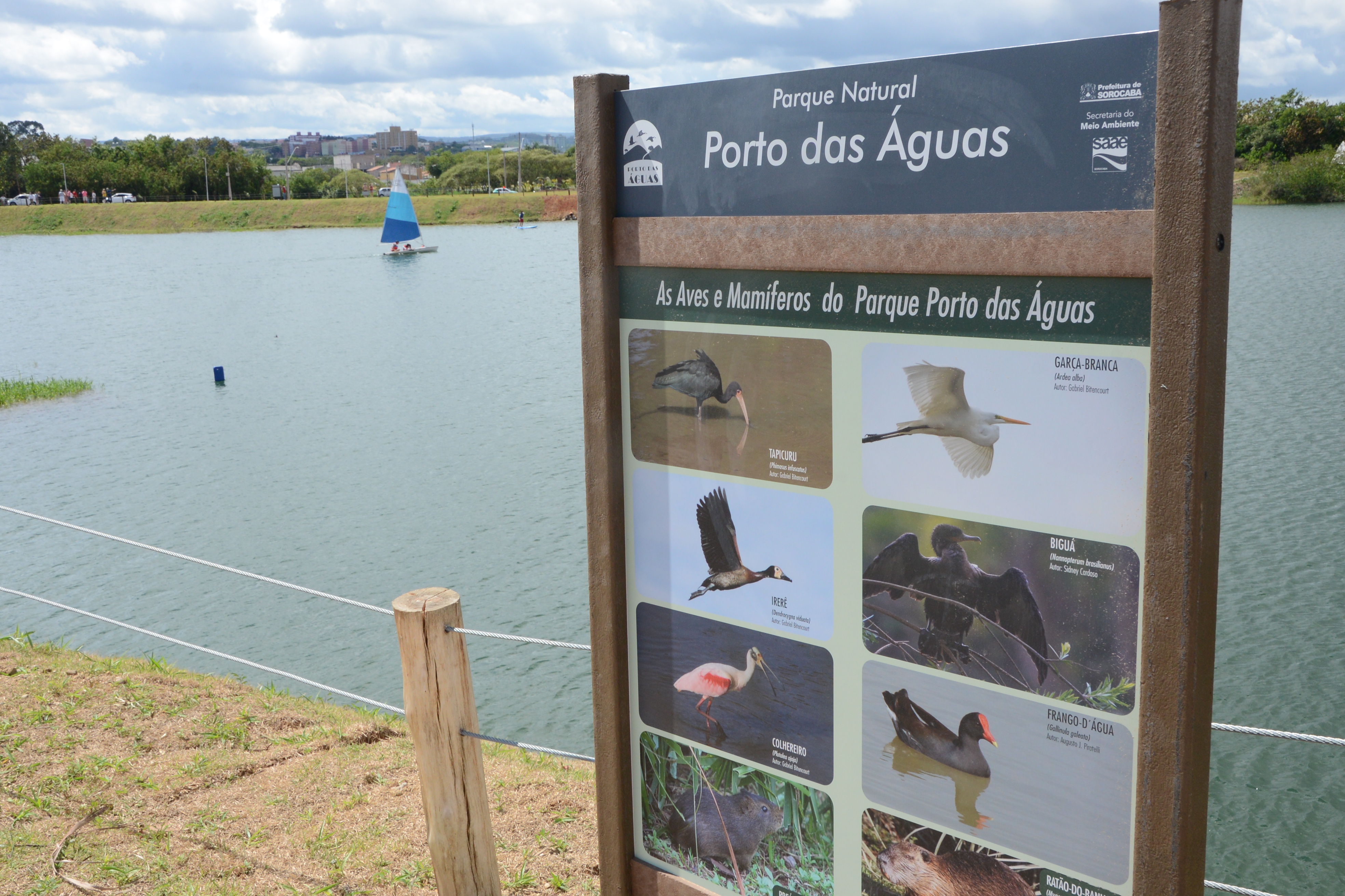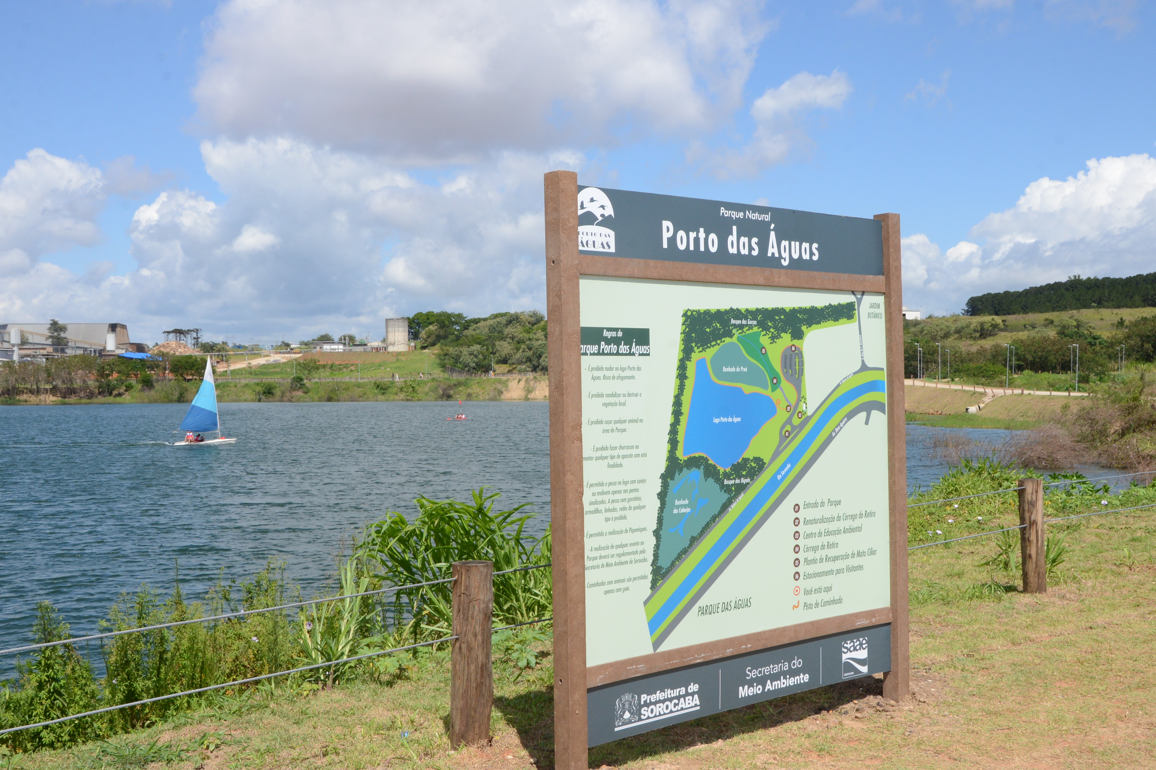Um parque diferente. Assim é o novo Parque Municipal Porto das Águas. Além dos 1.100 metros de pista para caminhar e correr e dos vários pontos para descansar e apreciar a vista, o novo parque é um local para velejar, remar um caiaque ou um stand up paddle. O Parque Municipal foi inaugurado pelo prefeito Antonio Carlos Pannunzio no domingo, dia 4, com a presença do secretário de Meio Ambiente, Clebson Ribeiro, e de diversos munícipes e autoridades civis e militares. A beleza, o tamanho do parque e o fato dele estar praticamente “dentro” da cidade surpreendem quem conhece o local pela primeira vez.
