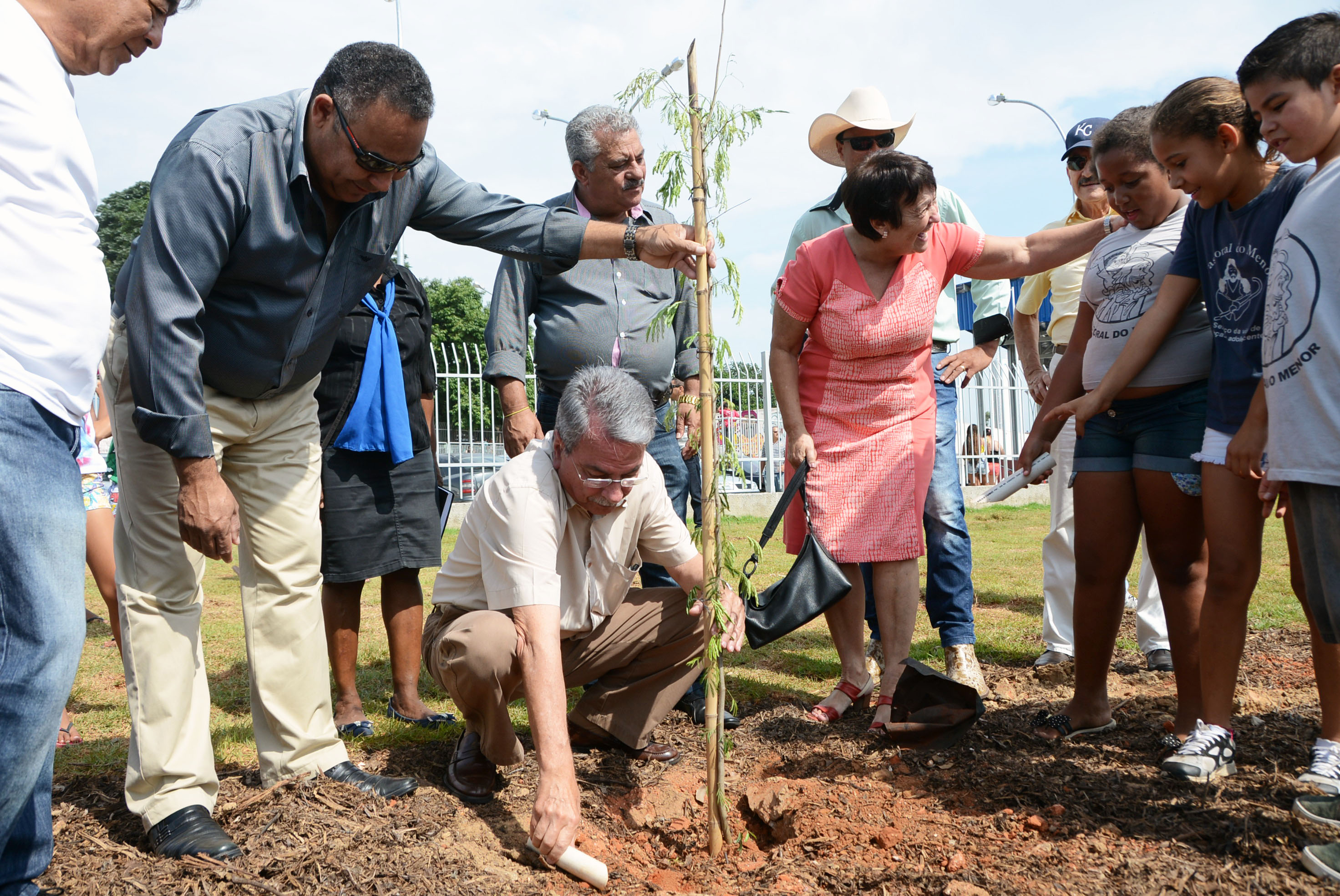 Logo às 8h30 cerca de setenta crianças da Pastoral do Menor plantaram 64 de árvores nativas numa área próxima ao córrego, junto com a equipe da Secretaria do Meio Ambiente (Sema). O local ganhou mudas de genipapo, jequitibá, jatobá, gerivá, angico, ipê-roxo, sibipiruna, entre outras espécies.