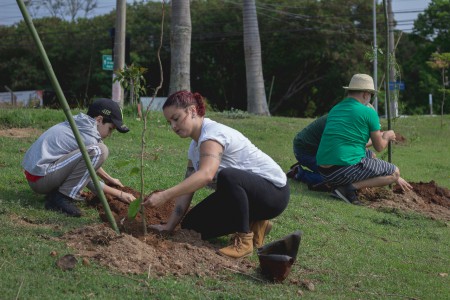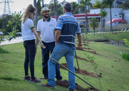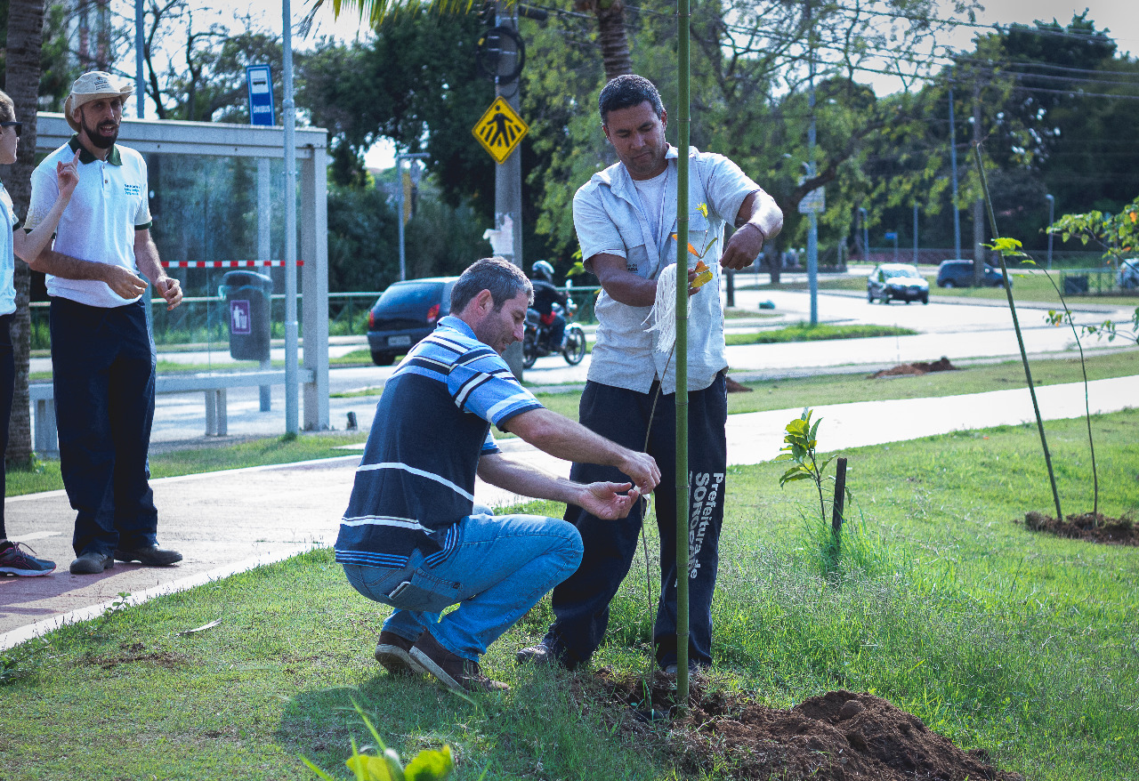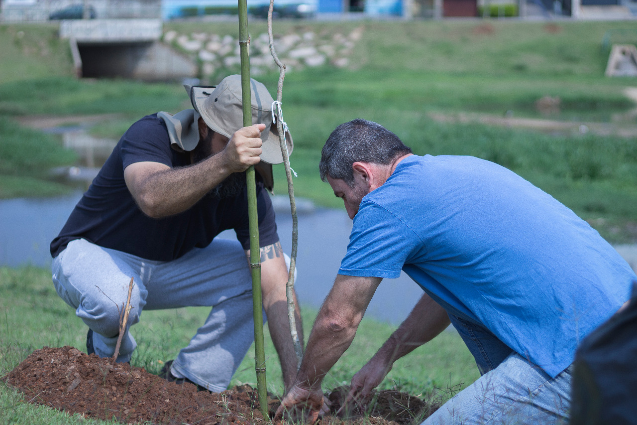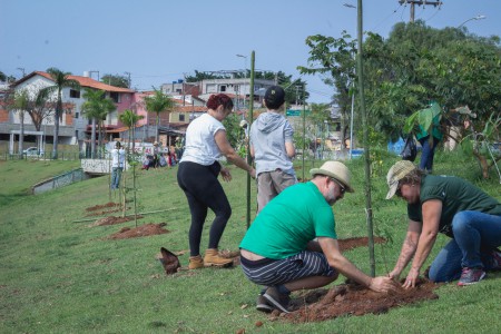 Um grupo de 25 pessoas, entre funcionários da Secretaria do Meio Ambiente, Parques e Jardins (Sema) e alunos da UFSCar (Universidade Federal de São Carlos) Sorocaba, realizou na manhã de sábado (21) o plantio de 100 árvores no parque do Reservatório de Detenção de Cheias (RDC) do córrego Água Vermelha, no Jardim dos Estados. O espaço ganhou mudas de aroeira-brava, angico-branco, cabreúva, canela, embaúba, grumixama, pau-viola, pitanga, urucum, entre outras espécies.