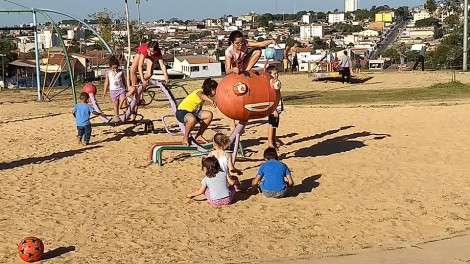 Crianças aproveitam o período de férias para brincar e fazer novos amigos; espaços são abertos à população.