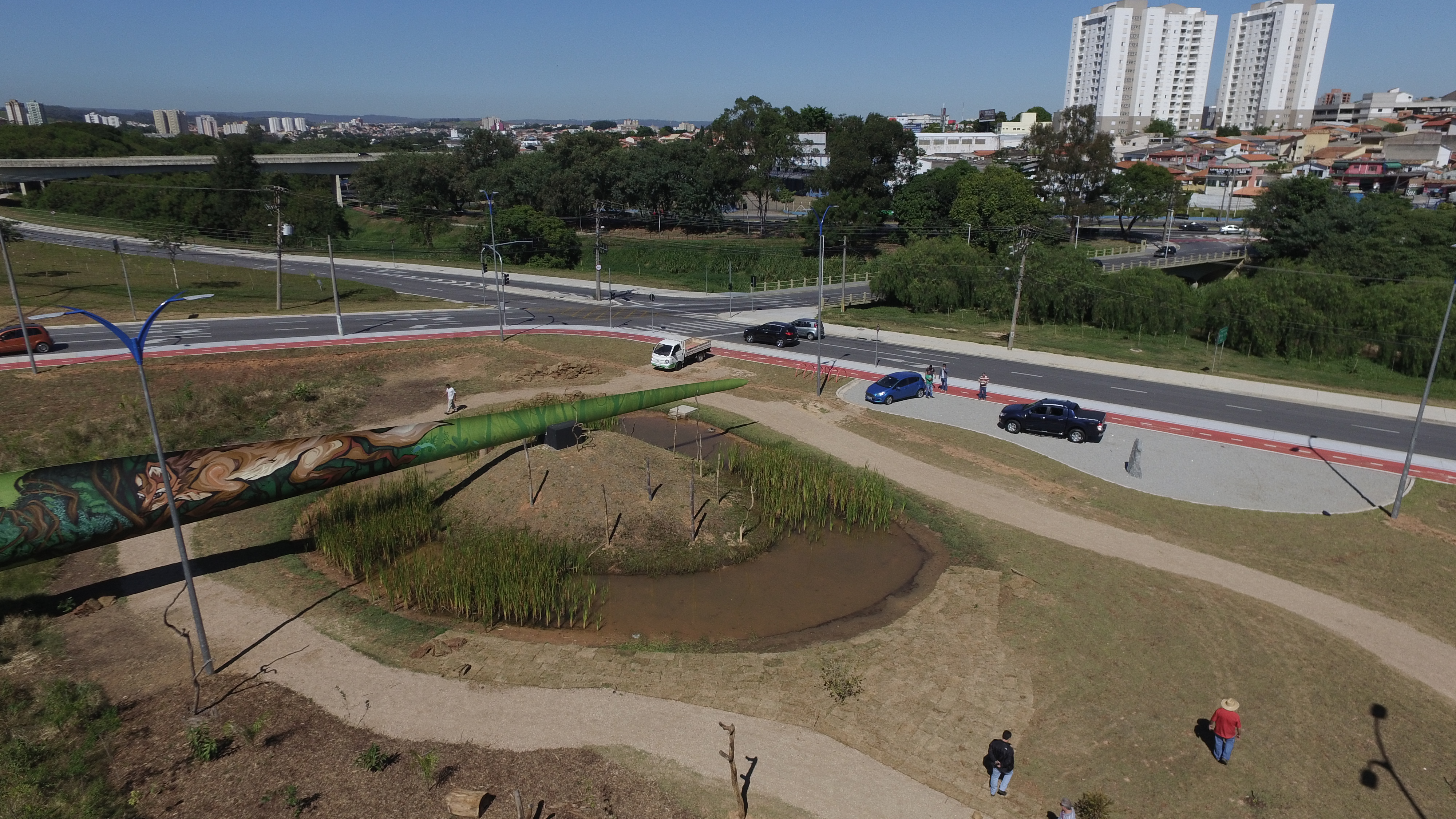 Um detalhe que chama a atenção de quem passa pelo local é uma pá eólica de cerca de quarenta metros apoiada horizontalmente na pequena ilha do brejo. Recentemente ela ganhou o grafite das mãos dos artistas Will Ferreira e Michel Japs, do Fite Art, que tiveram como inspiração o tema “Biodiversidade de Sorocaba”, retratando a flora, a fauna e o ser humano, e se tornou mais uma obra de arte a céu aberto de Sorocaba.