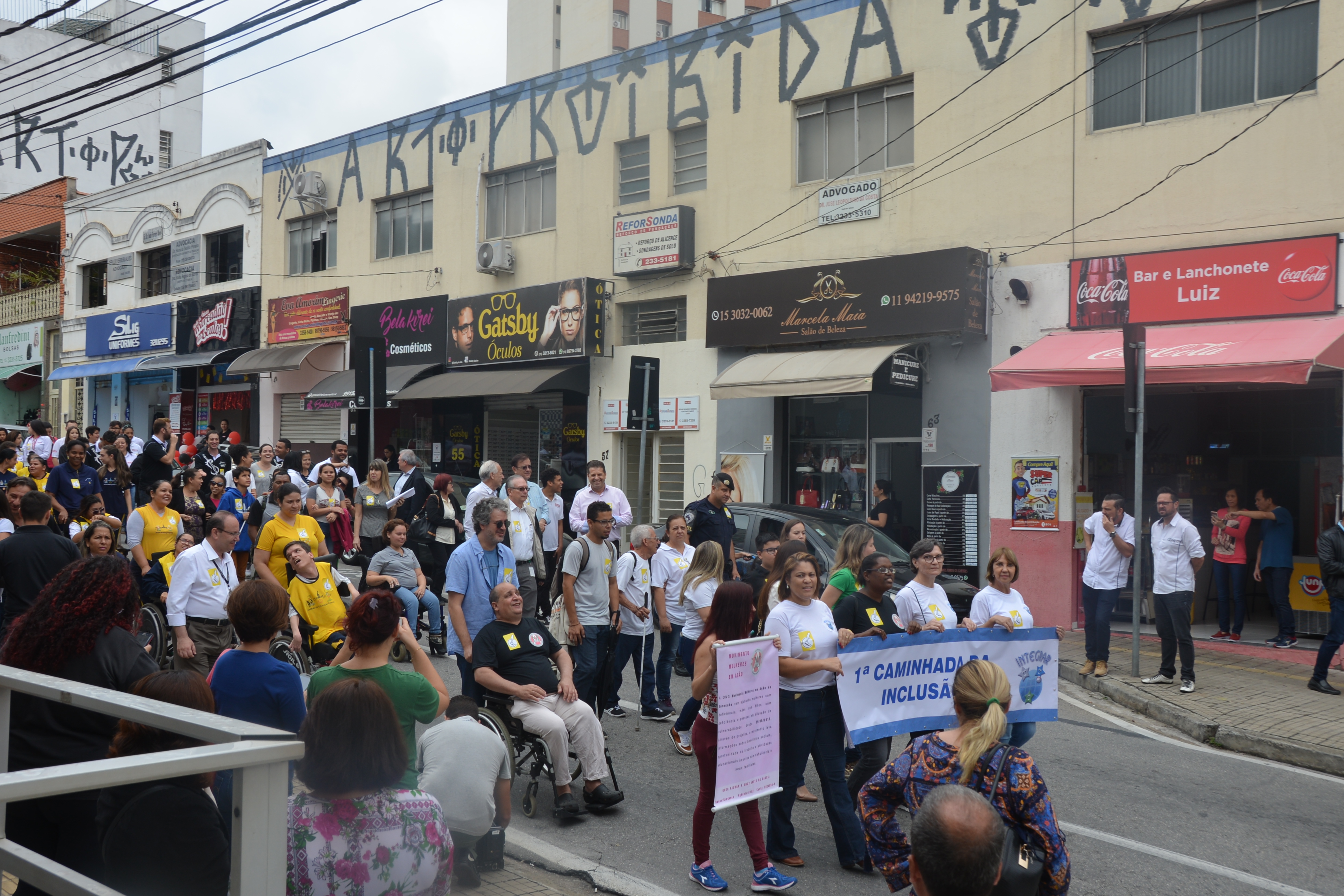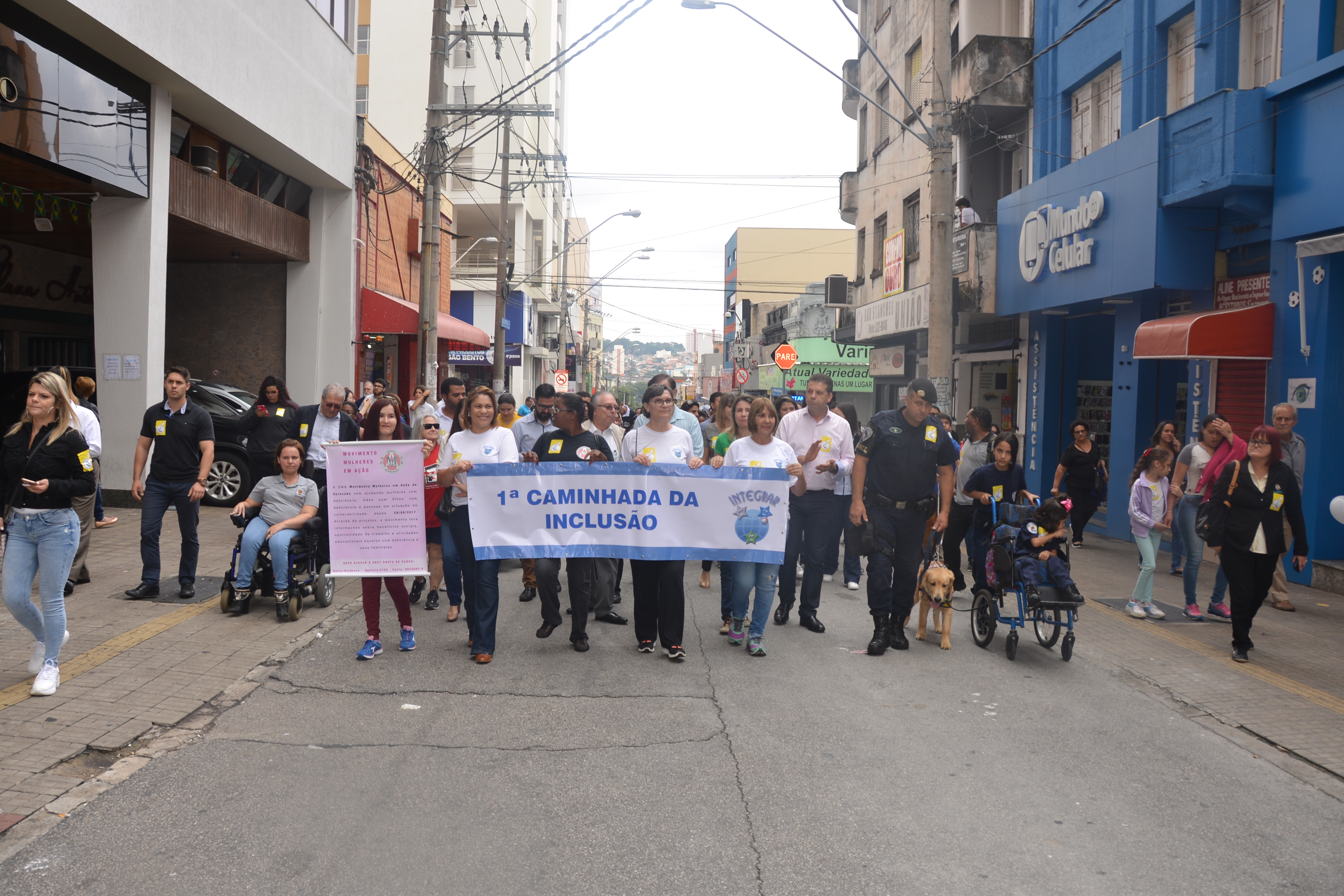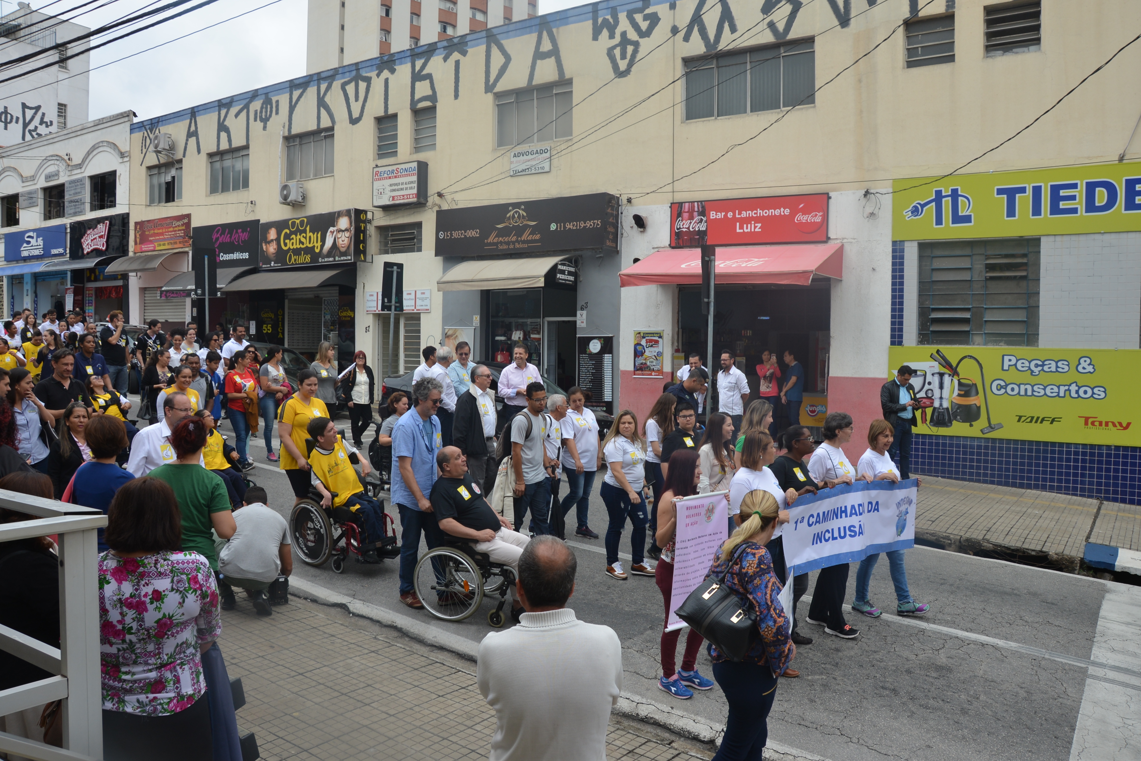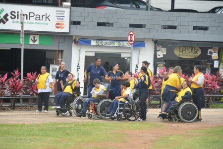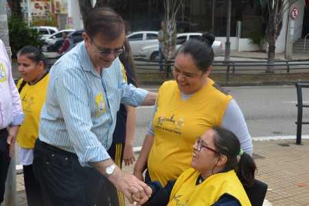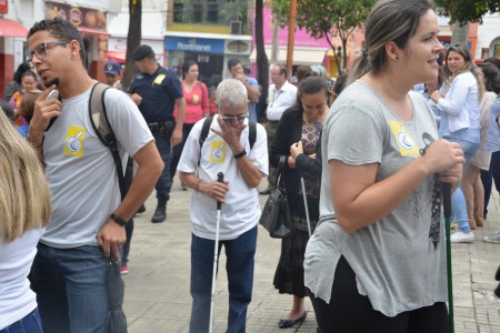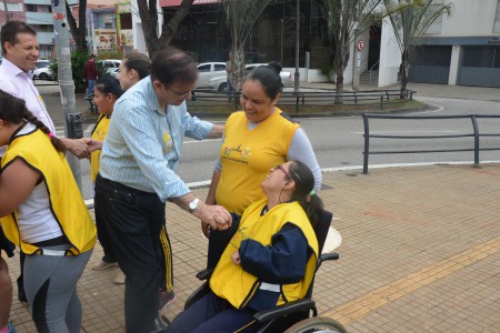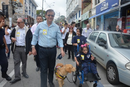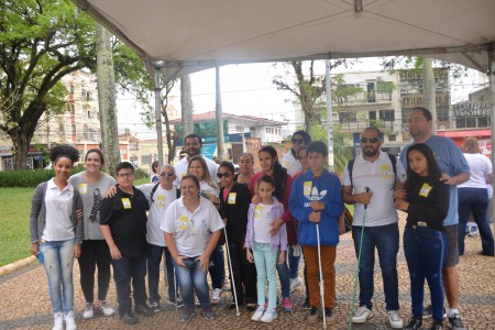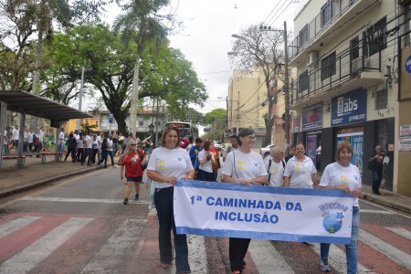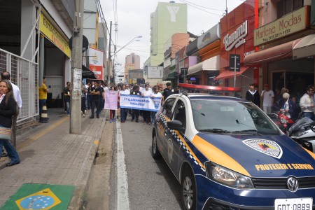 Ao som do coral do Senai – Serviço Nacional de Aprendizado Industrial, aproximadamente 150 pessoas, em sua maioria cadeirantes e deficientes visuais, caminharam pelas ruas centrais, que foram interditadas para o movimento. Lojistas e clientes pararam para prestigiar a manifestação da causa.