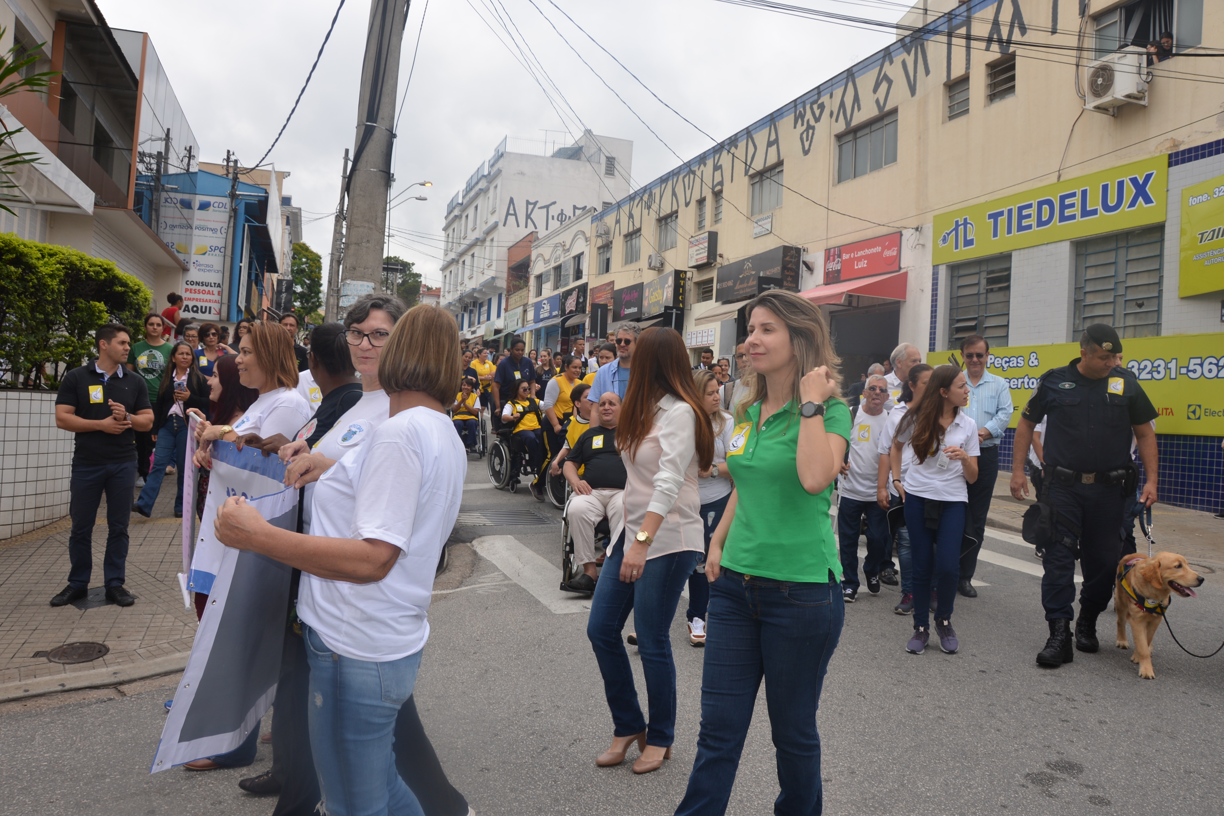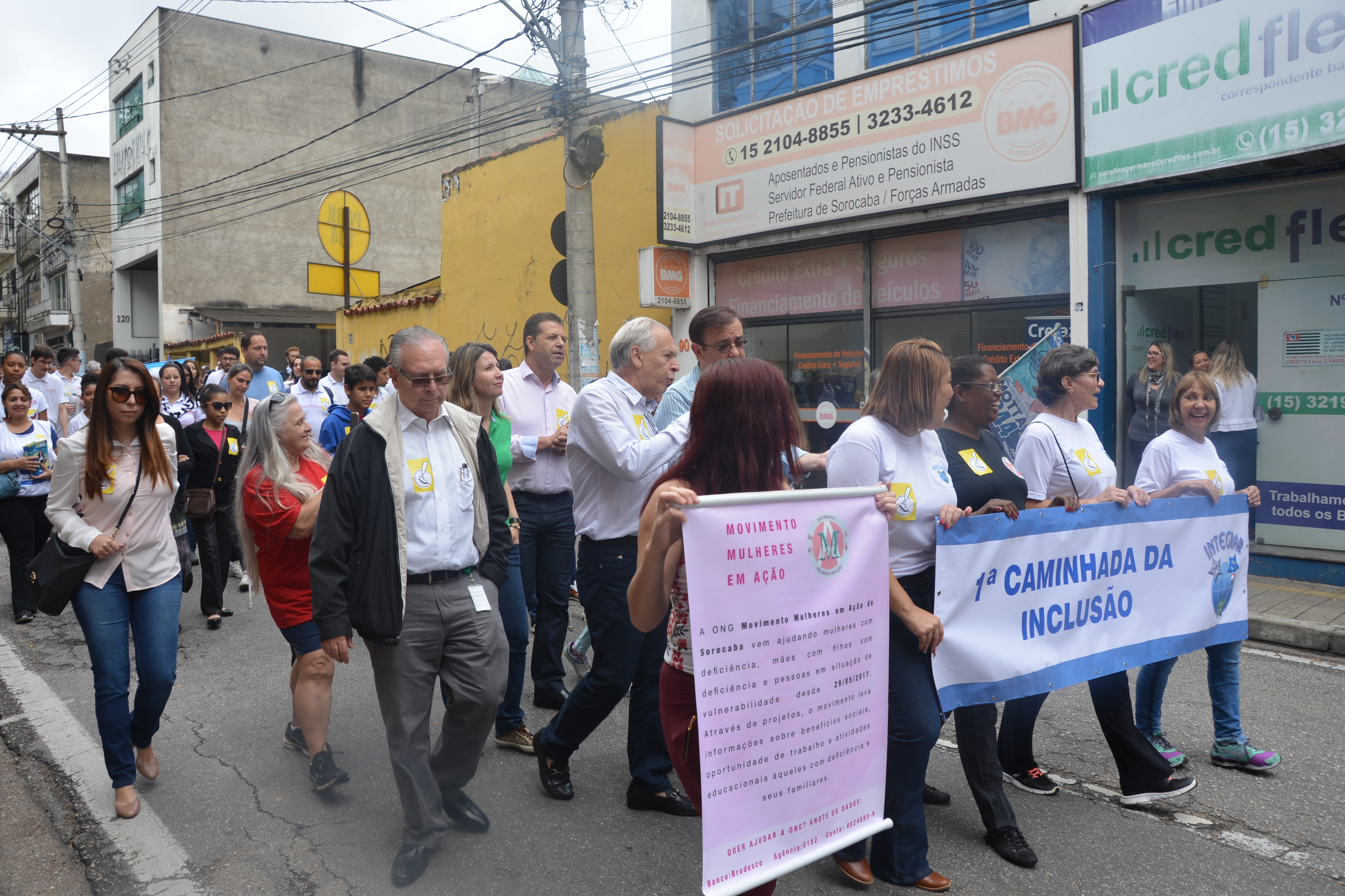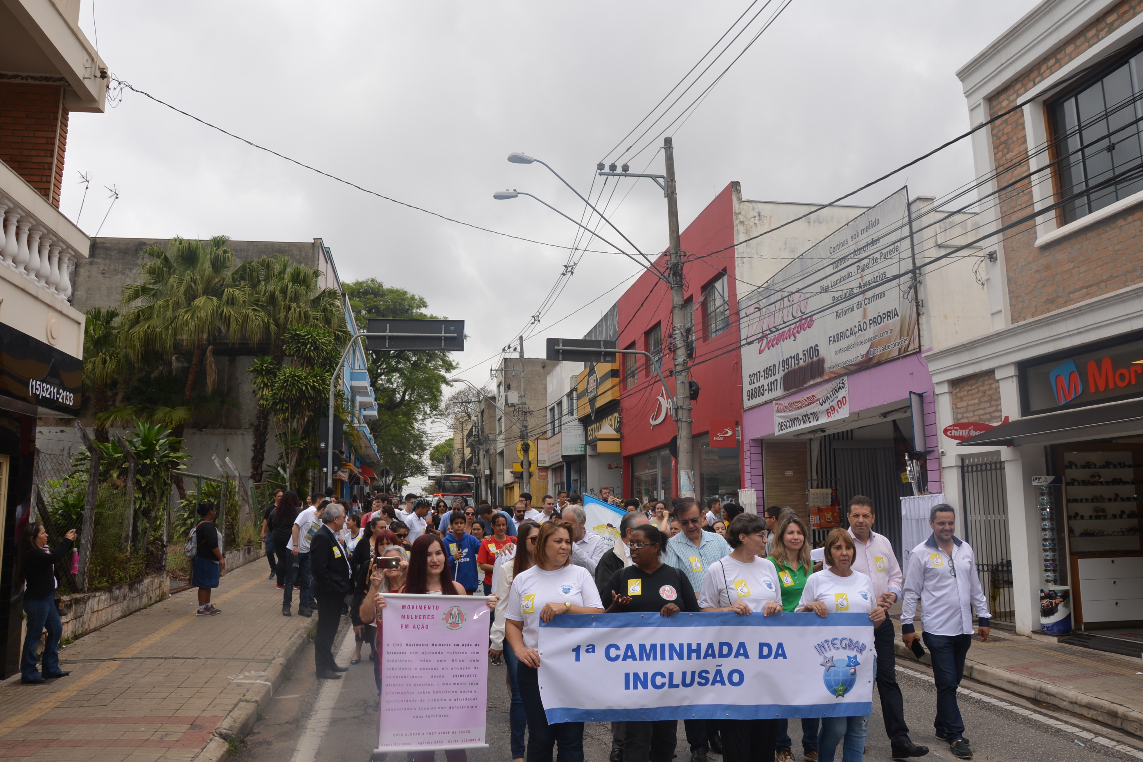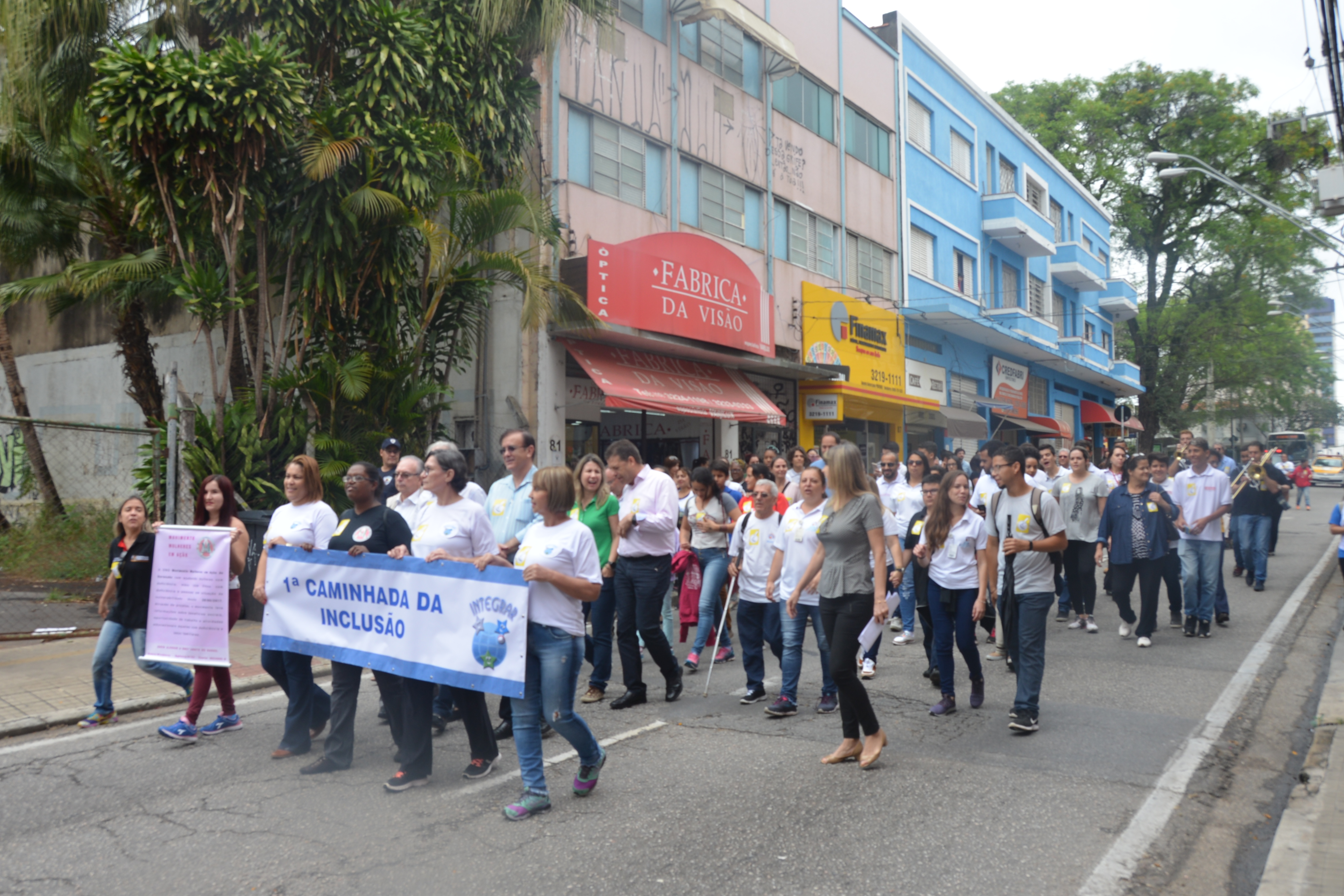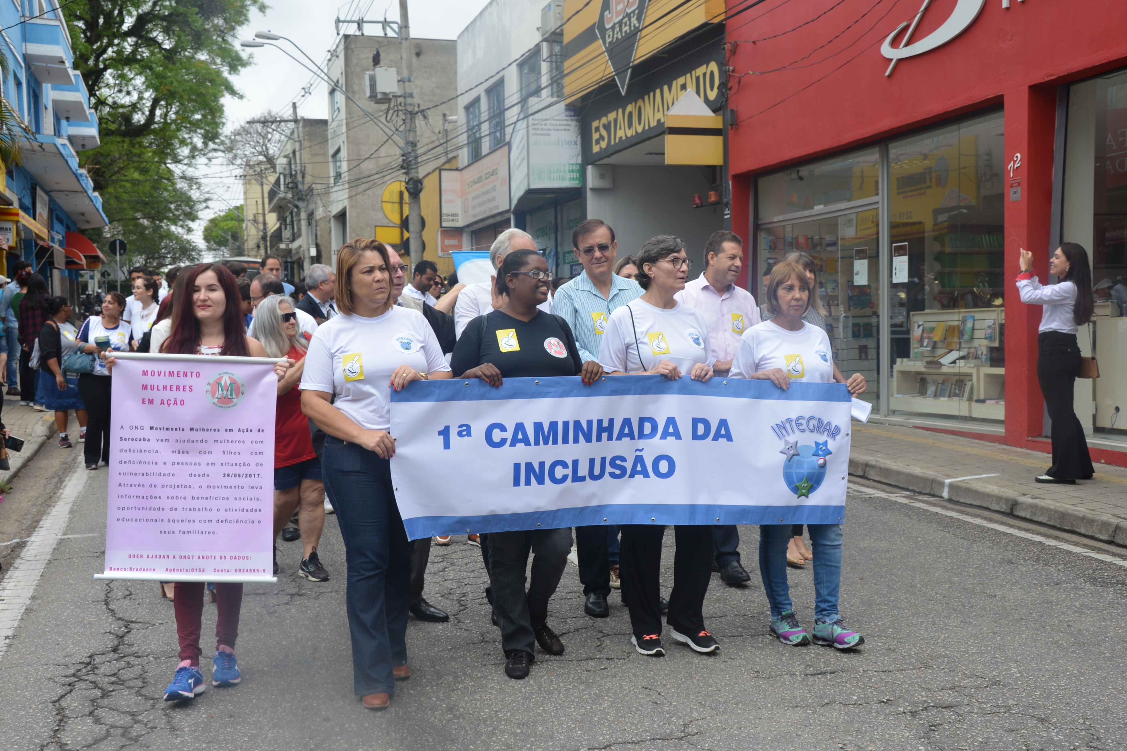 Ao som do coral do Senai – Serviço Nacional de Aprendizado Industrial, aproximadamente 150 pessoas, em sua maioria cadeirantes e deficientes visuais, caminharam pelas ruas centrais, que foram interditadas para o movimento. Lojistas e clientes pararam para prestigiar a manifestação da causa.