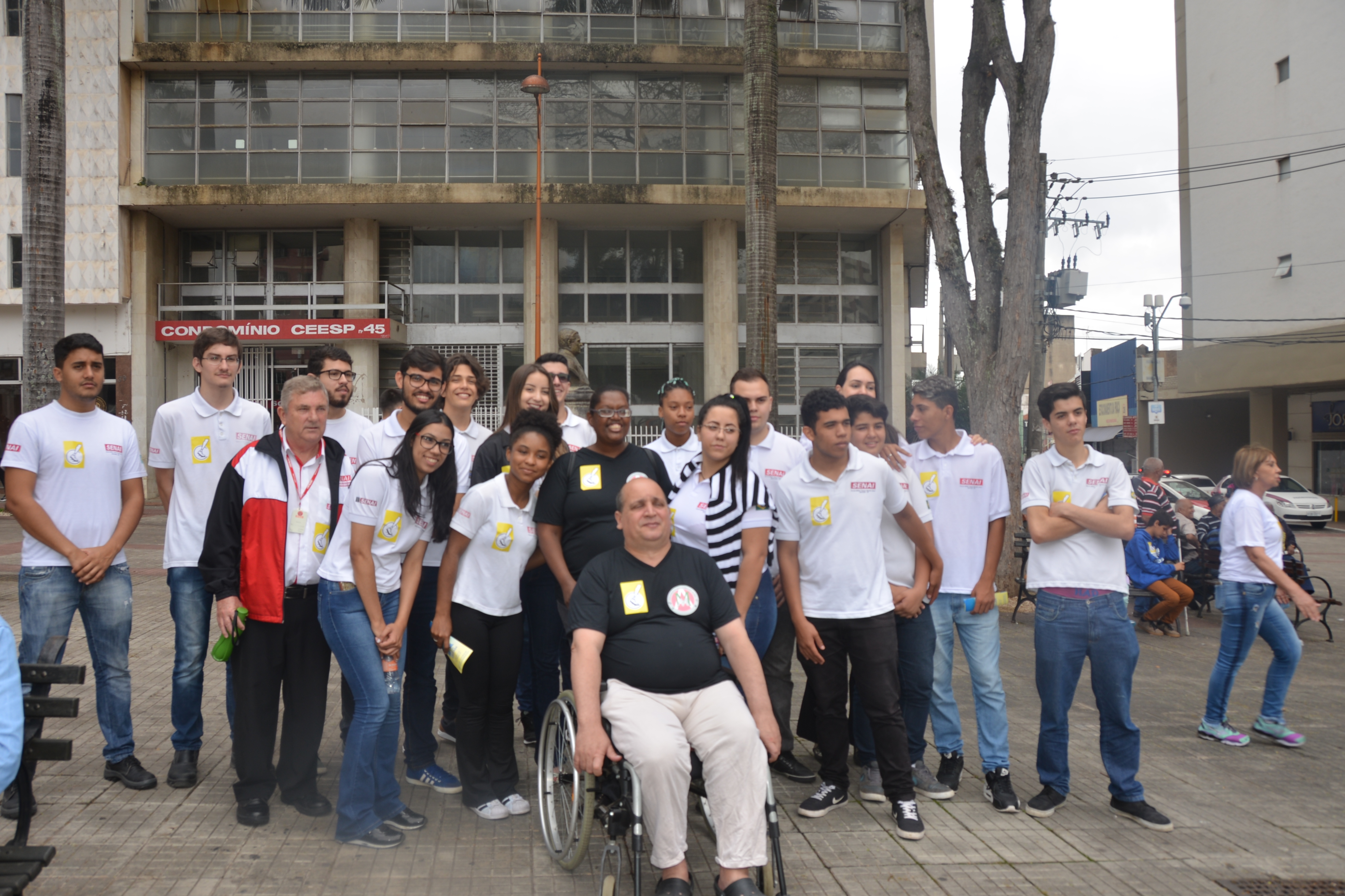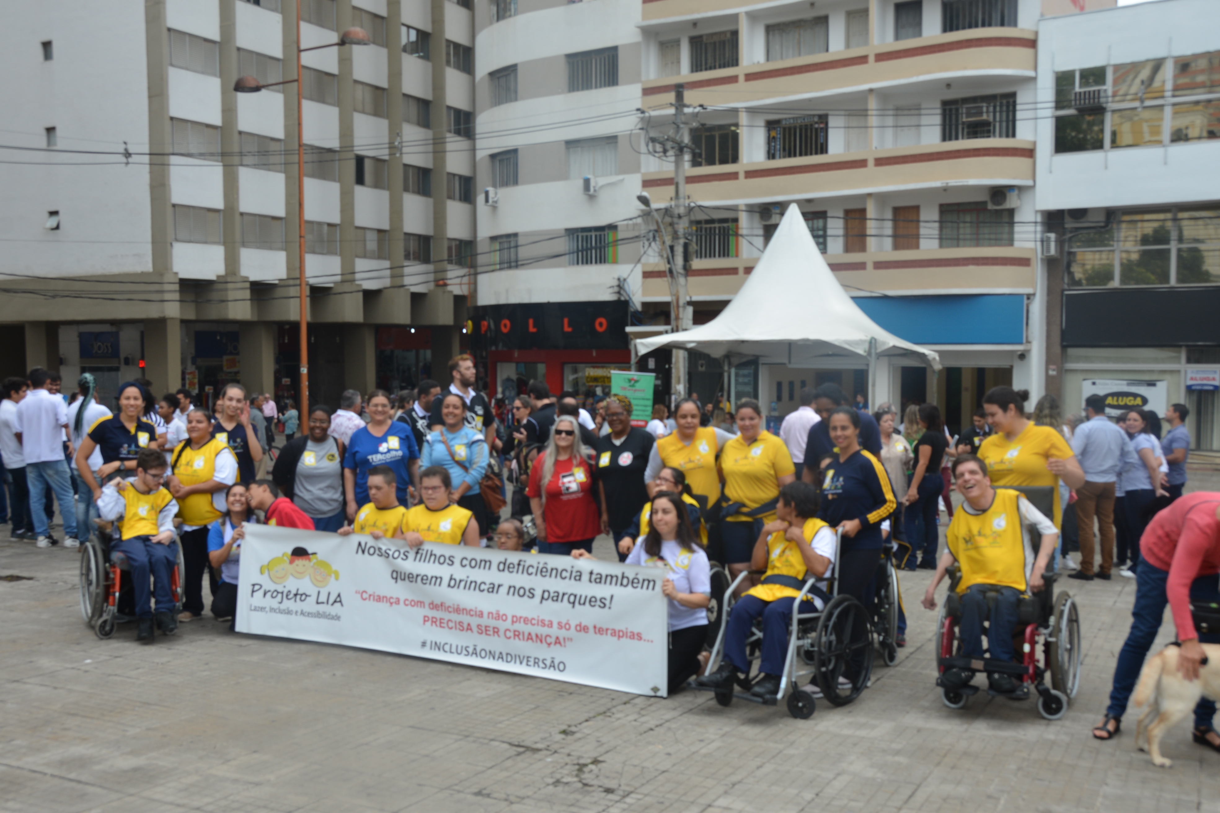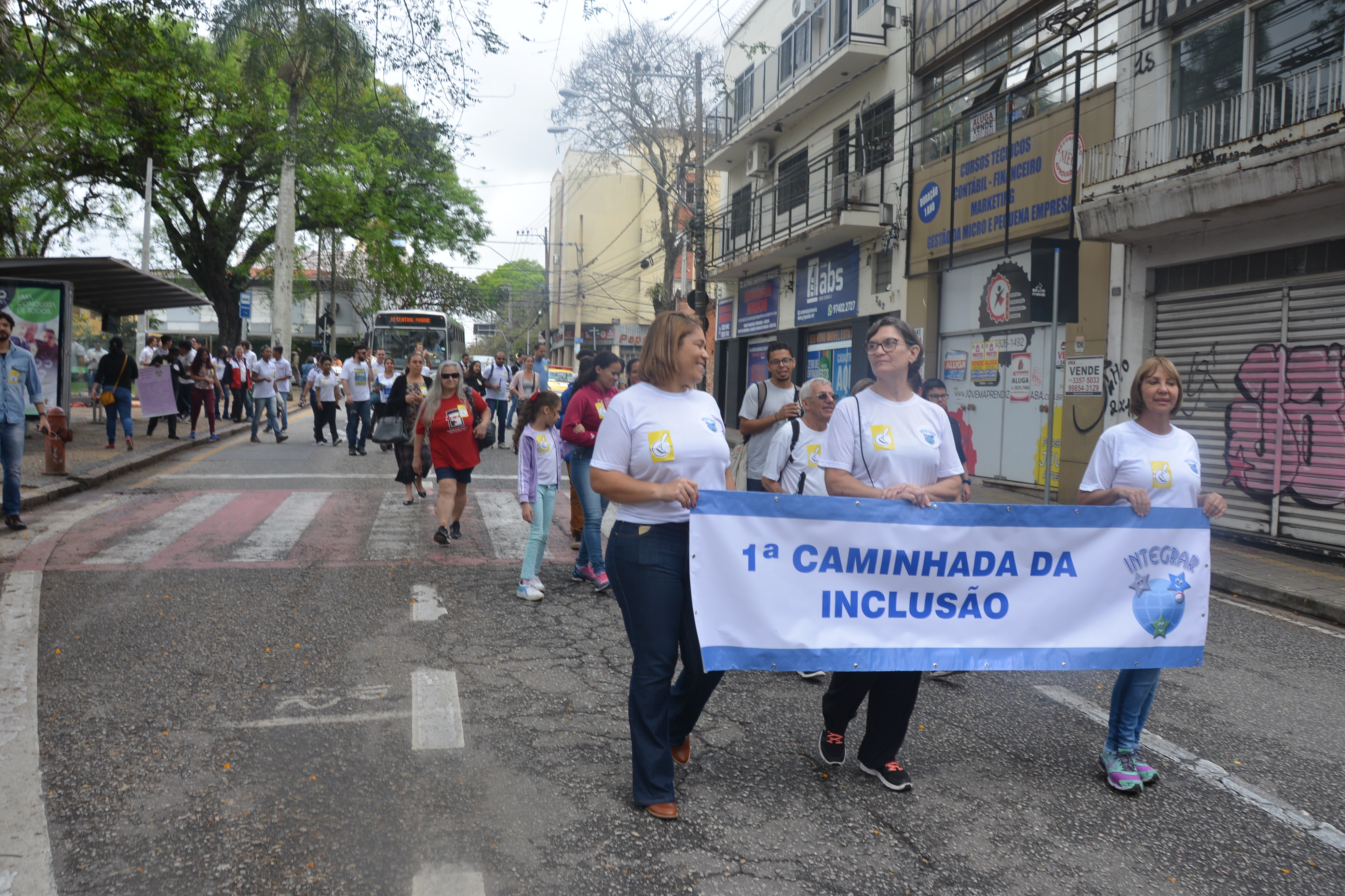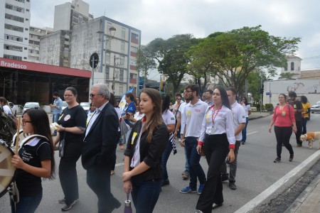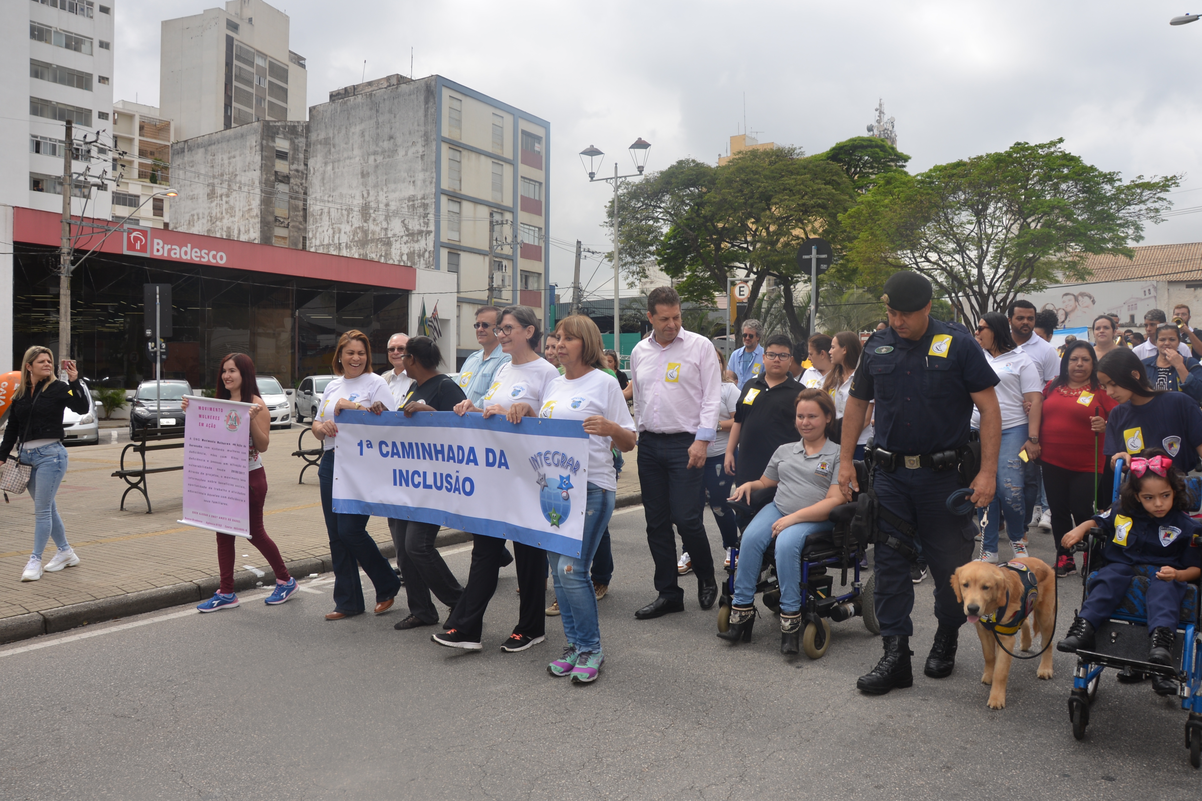 Ao som do coral do Senai – Serviço Nacional de Aprendizado Industrial, aproximadamente 150 pessoas, em sua maioria cadeirantes e deficientes visuais, caminharam pelas ruas centrais, que foram interditadas para o movimento. Lojistas e clientes pararam para prestigiar a manifestação da causa.