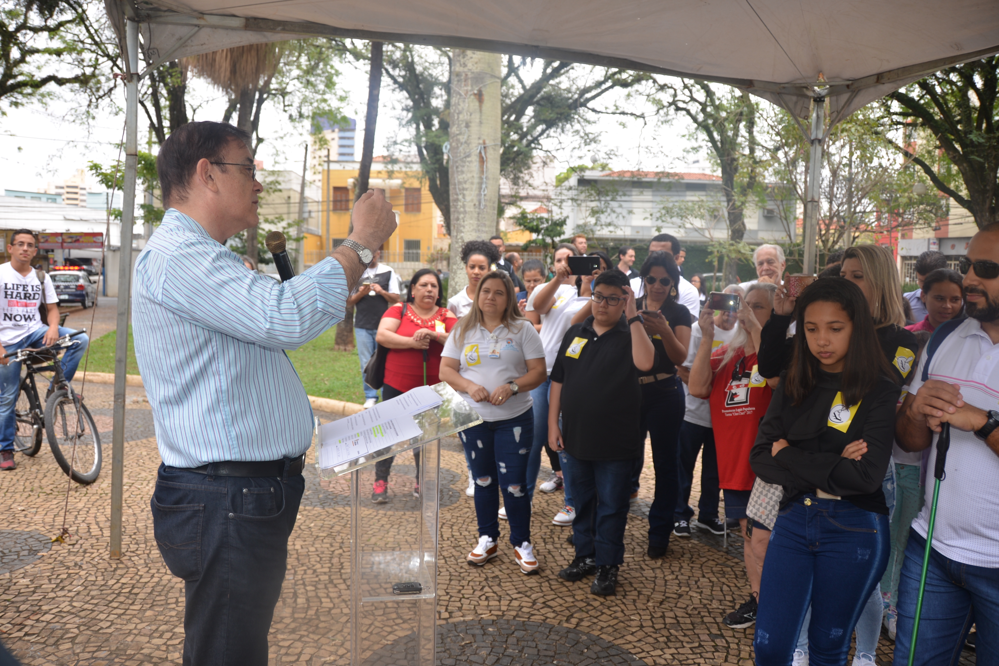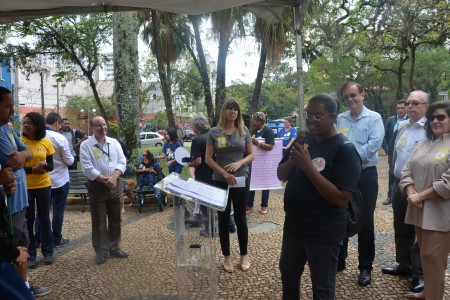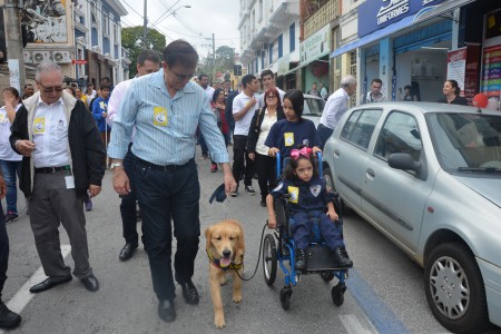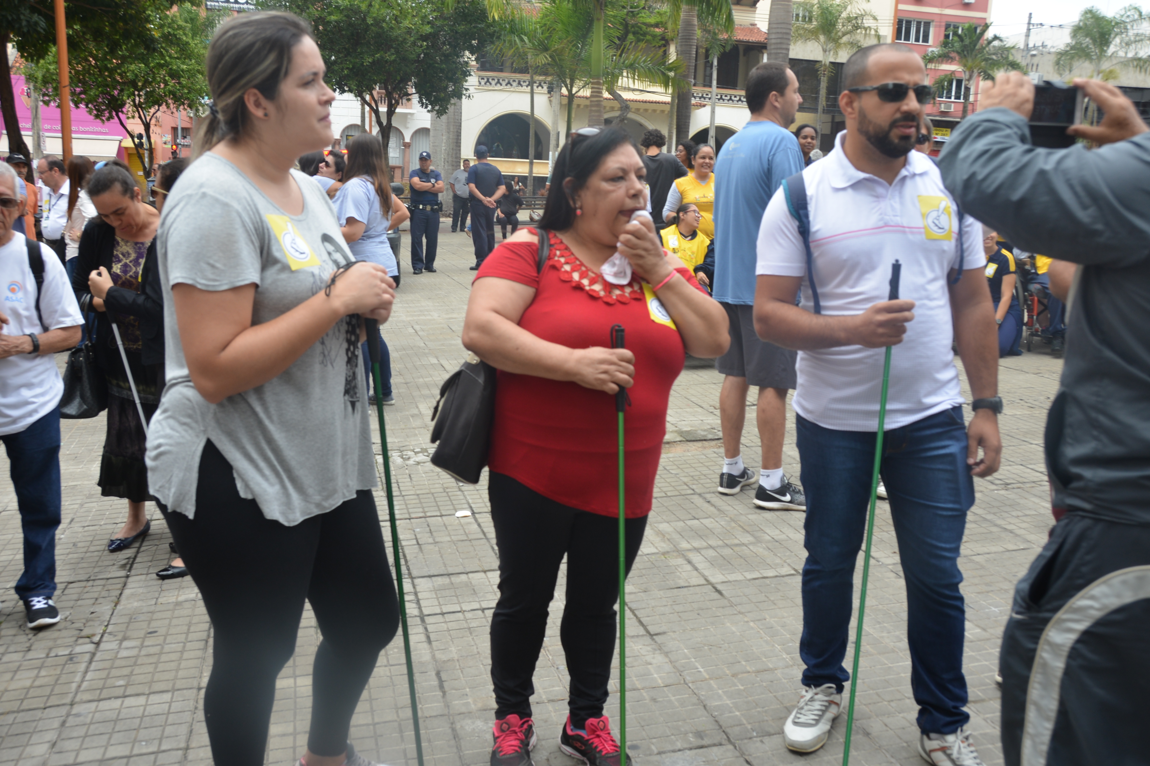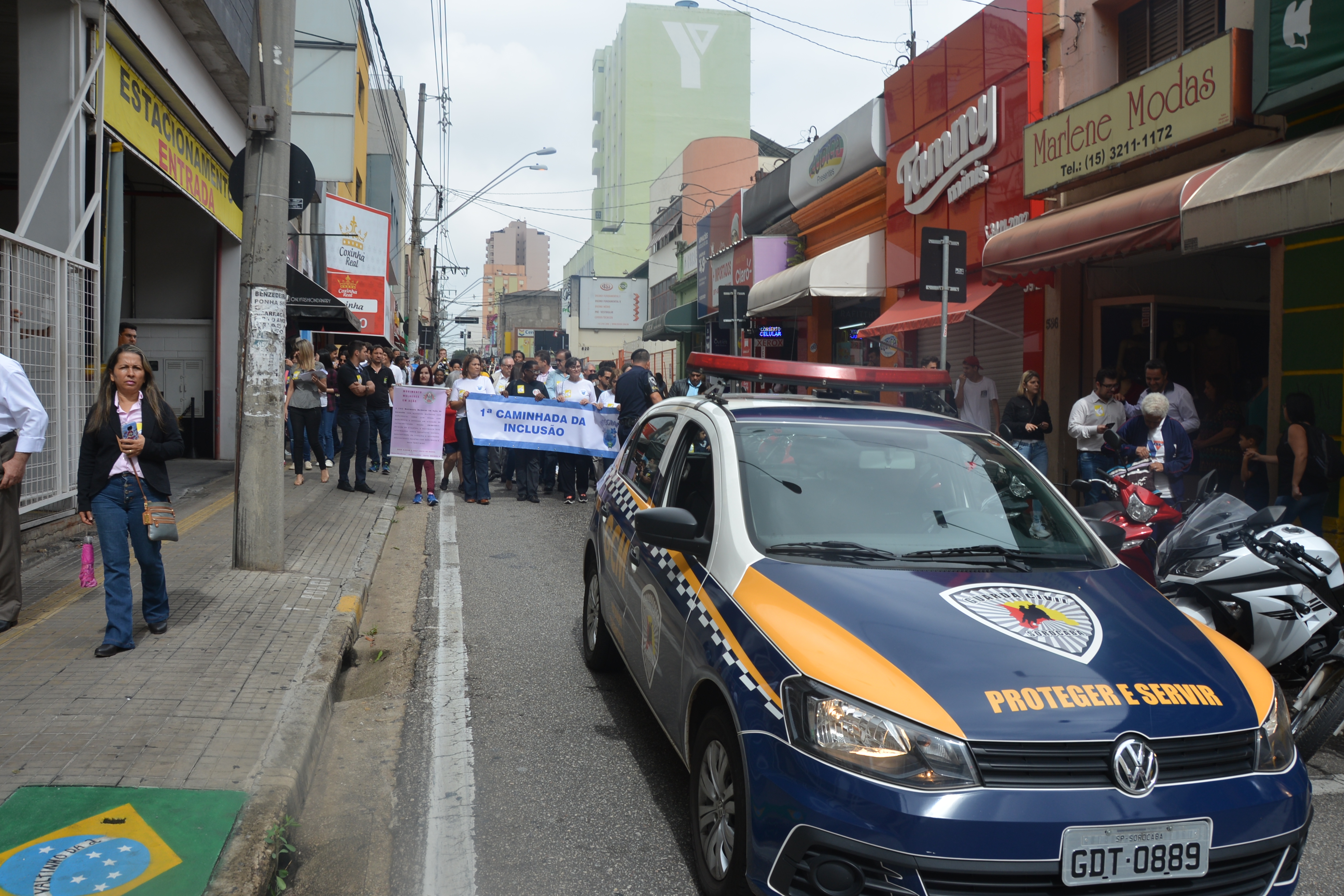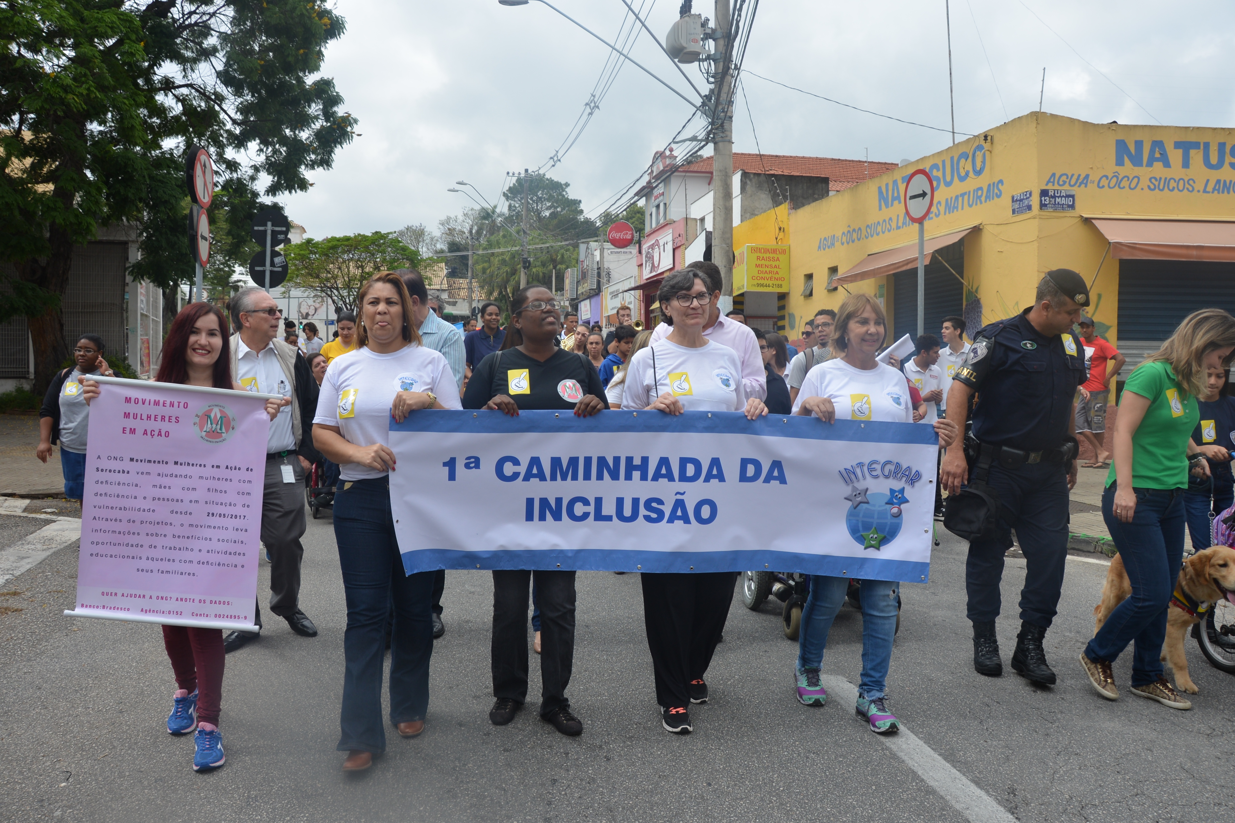 Ao som do coral do Senai – Serviço Nacional de Aprendizado Industrial, aproximadamente 150 pessoas, em sua maioria cadeirantes e deficientes visuais, caminharam pelas ruas centrais, que foram interditadas para o movimento. Lojistas e clientes pararam para prestigiar a manifestação da causa.