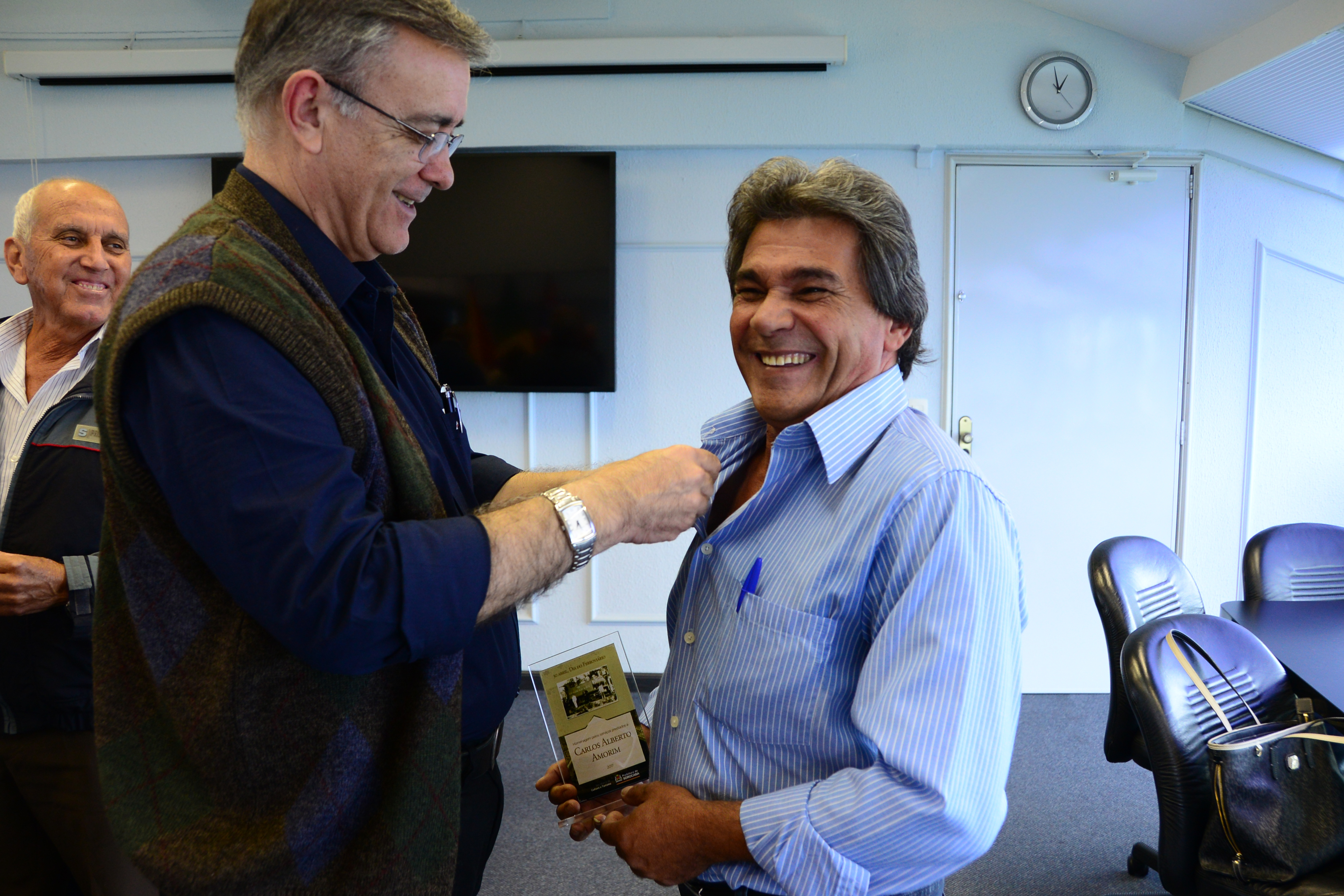Em razão da ‘Semana Comemorativa – Dia do Ferroviário’, o prefeito de Sorocaba, José Crespo, homenageou na manhã de sexta-feira (28), três ex-ferroviários pelos serviços prestados à ferrovia em Sorocaba. A homenagem foi realizada no gabinete do prefeito, no Paço Municipal. O dia do ferroviário é celebrado neste domingo (30).