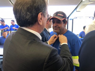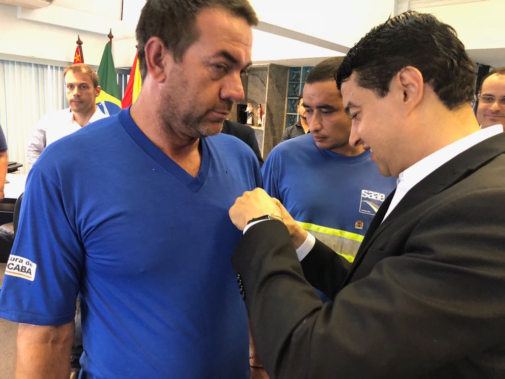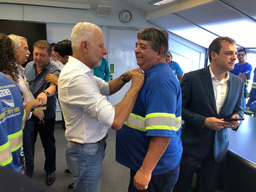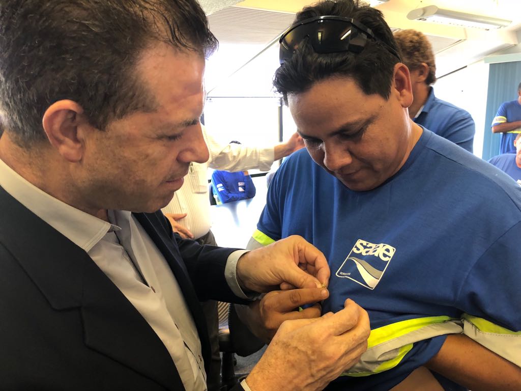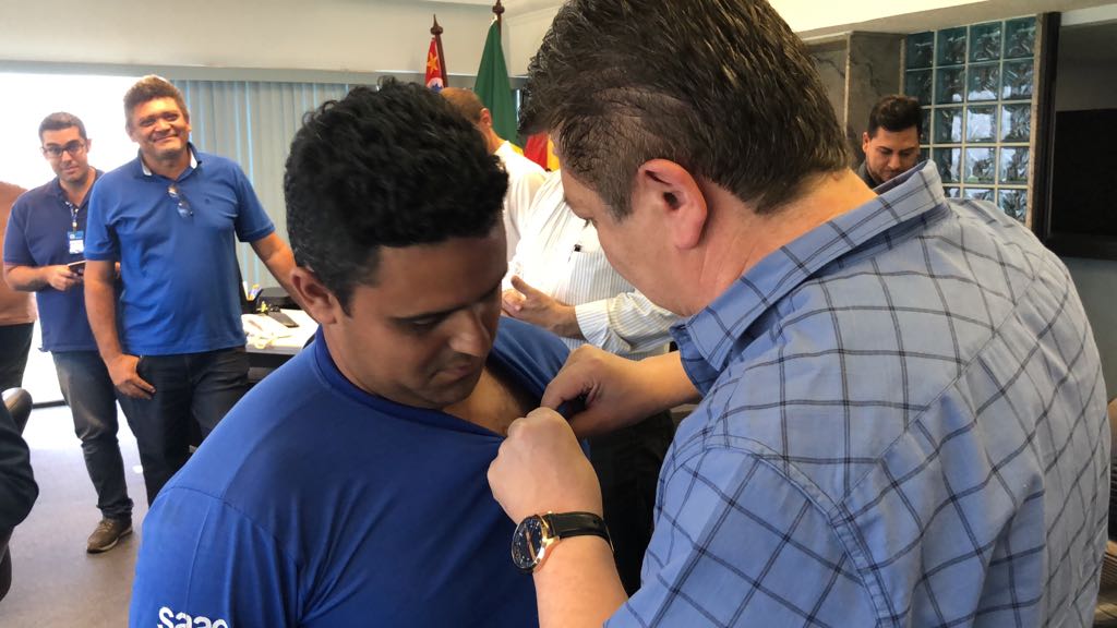 Cada um dos trabalhadores foi chamado pelo nome e os broches foram colocados em suas camisas ou camisetas por autoridades ou personalidades da administração municipal: o prefeito José Crespo; o deputado federal, Jefferson Campos; deputado estadual Carlos César; ex-deputado federal e ex-prefeito de Sorocaba, Renato Amary; os secretários municipais Alceu Segamarchi, Eloy de Oliveira, Marinho Marte, Alexandre Robim, Hudson Zuliani e o assessor técnico do Saae-Sorocaba, Maurício Campanati.