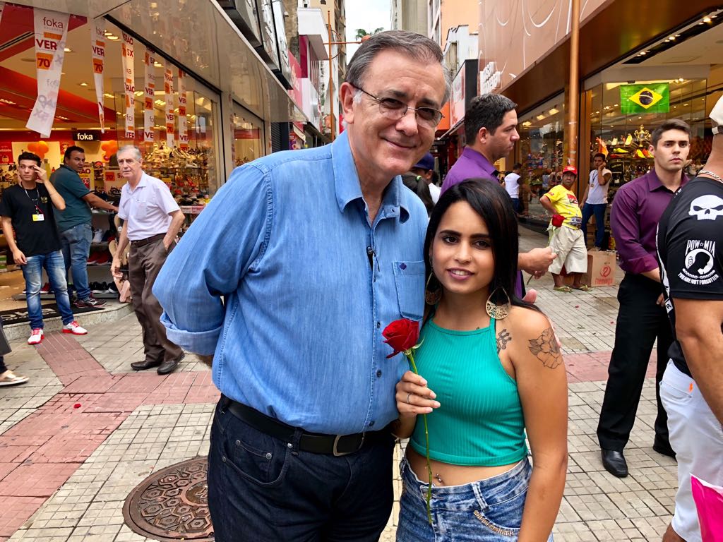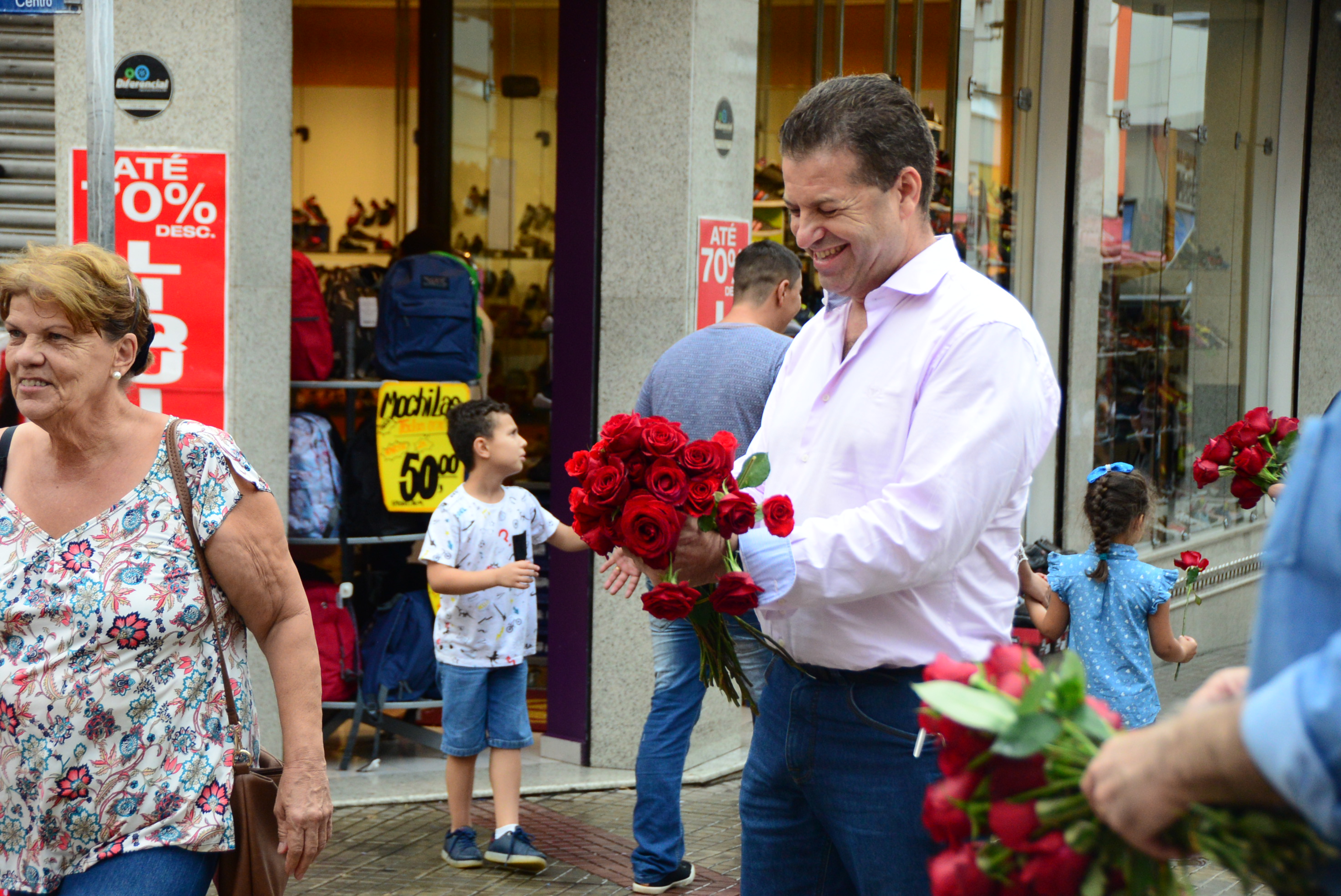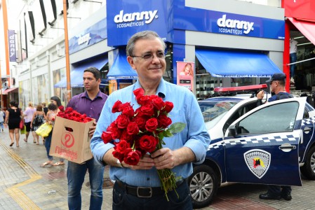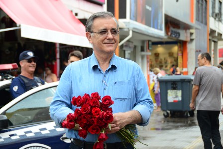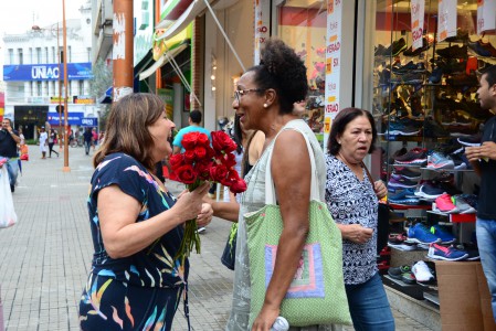 Prefeito José Crespo entrega rosas às mulheres no Centro de Sorocaba