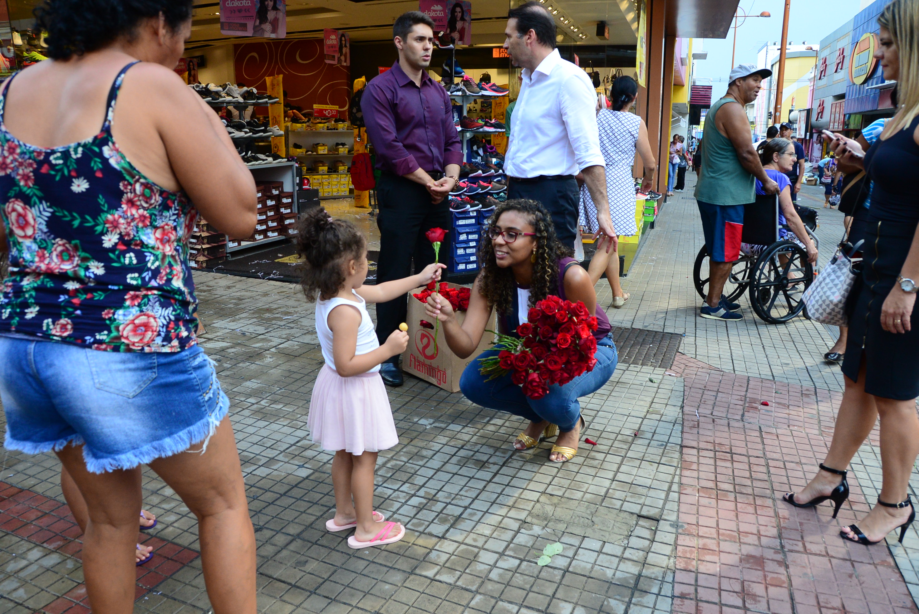 O local ficou lotado de curiosos, entre consumidores e comerciantes. A professora Márcia de Melo foi ao Centro para comprar um presente de aniversário para sua mãe e recebeu das mãos da primeira-dama outra rosa para ser entregue a aniversariante. “Essa rosa é para sua mãe, já que eu não tenho mãe, preste minha homenagem a ela”, disse Lilian Crespo. Foi uma surpresa para a professora: “minha mãe ficará muito feliz quando eu disser quem mandou entregar,” contou Márcia.