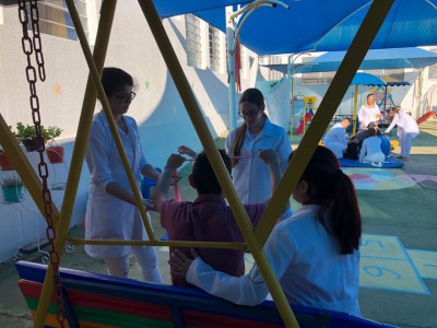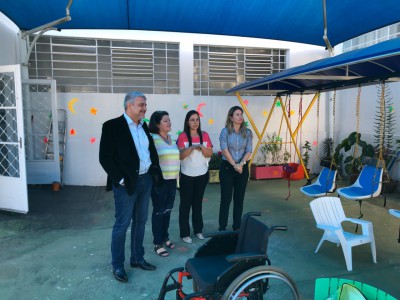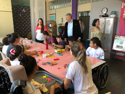 José Crespo e sua equipe foram recepcionados pelo presidente da entidade Carlos Janovitch e pela vice Lilian Grosso, além da coordenadora e funcionários. Eles conheceram as salas onde as atividades são realizadas, o refeitório, o parque e algumas das crianças atendidas que recebem gratuitamente o serviço educacional, terapêutico, alimentação, transporte, fraldas, medicamentos e dieta específica para os atendidos com gastrostomia (alimentação por sonda) e distúrbios gastrointestinais.