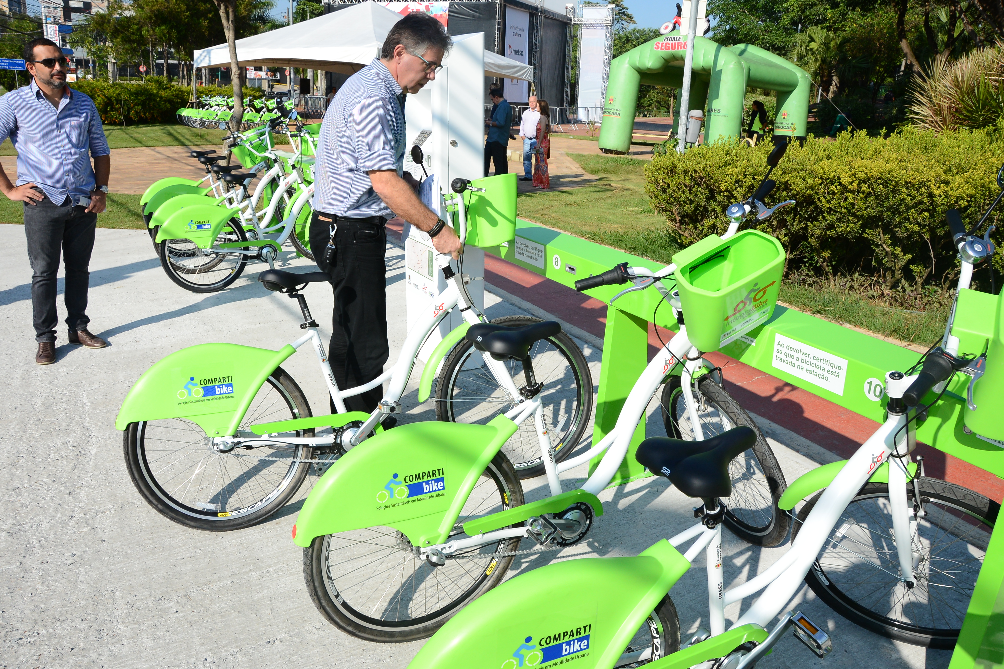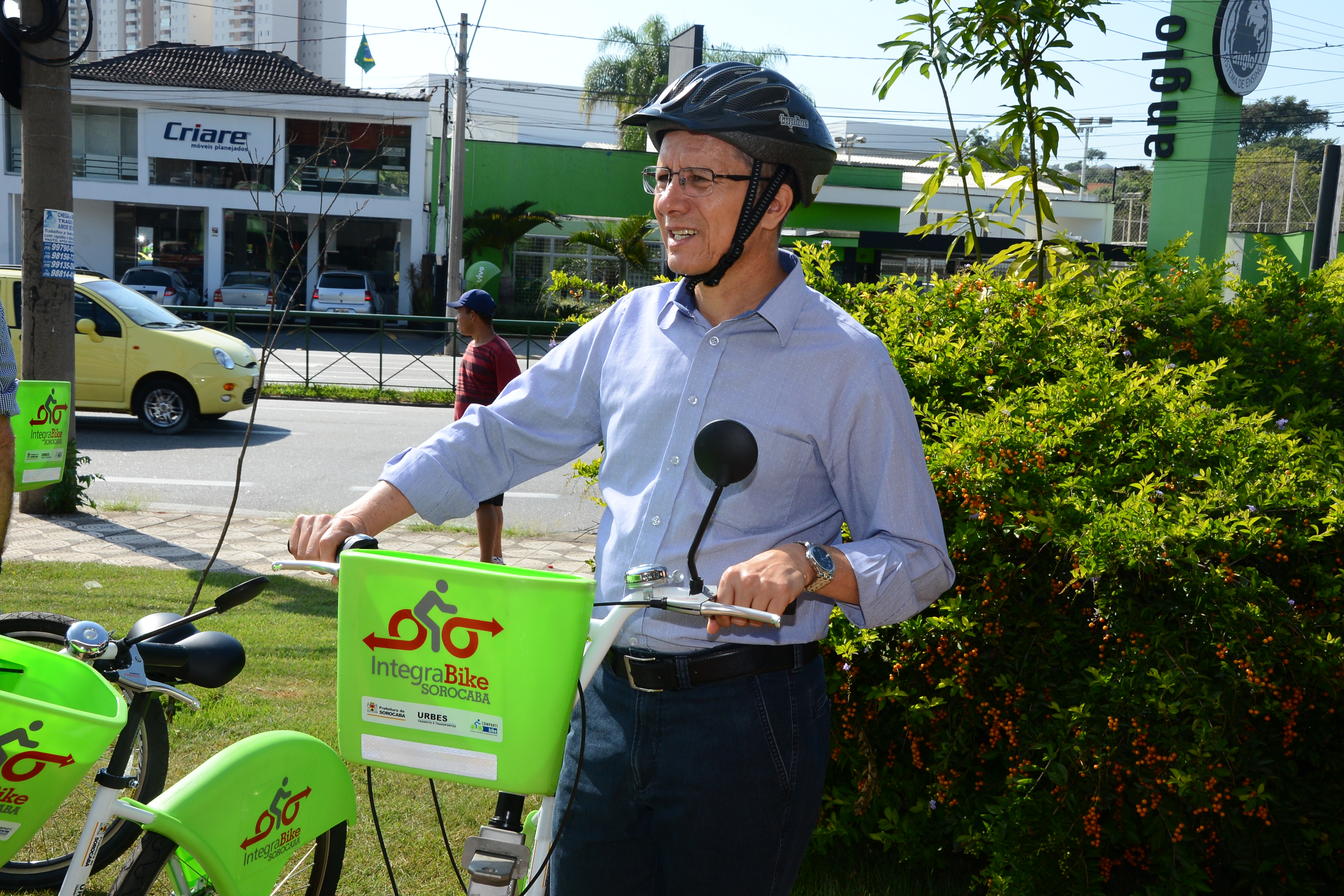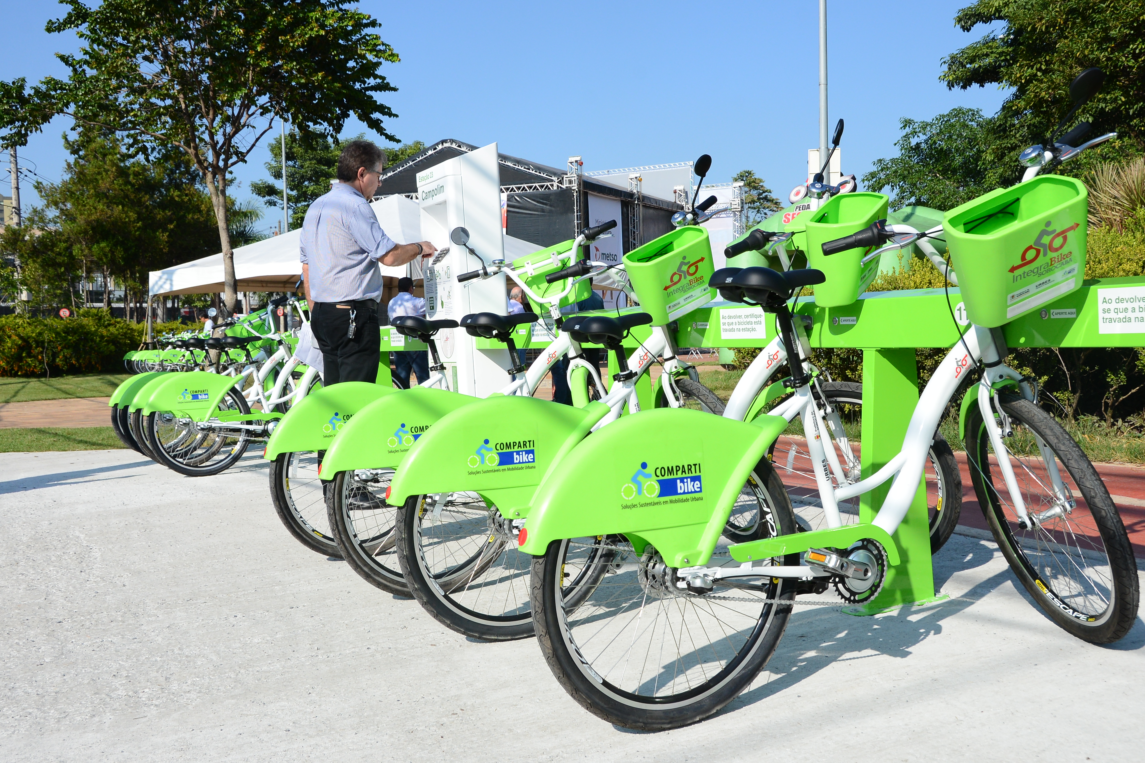 O prefeito Antonio Carlos Pannunzio lançou oficialmente nesta sexta-feira (15) o novo sistema IntegraBike de bicicletas públicas. O evento aconteceu no Parque Carlos Alberto de Souza, no Campolim, onde está uma das estações já em funcionamento, oferecendo oito bicicletas para empréstimo gratuito aos cidadãos cadastrados.