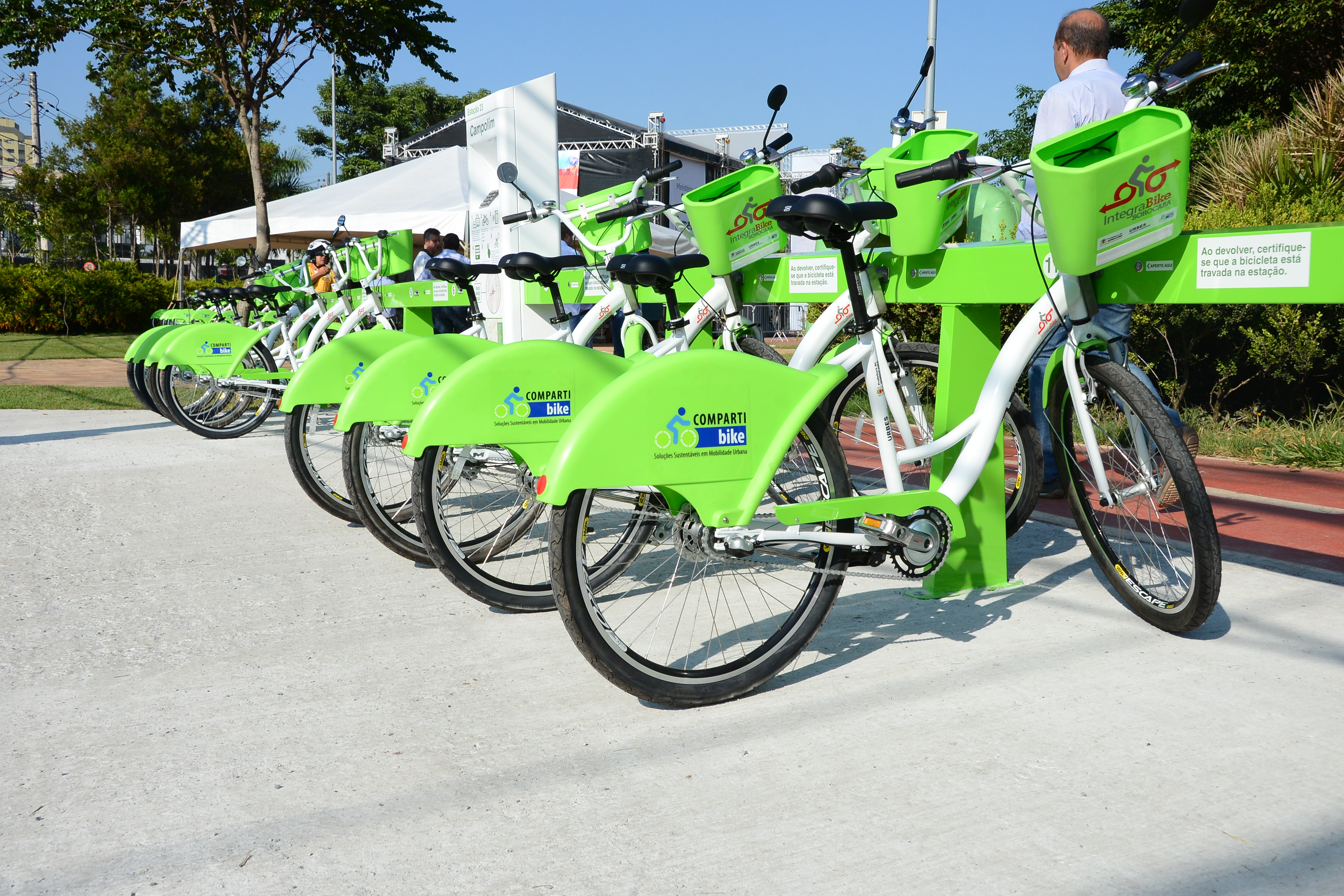 A iniciativa da Prefeitura de Sorocaba, gerenciada pela Urbes – Trânsito e Transportes, entra desta forma numa nova etapa com operação da empresa M2 Engenharia/Compartibike, vencedora da licitação. As novas bicicletas e estações têm novas cores (verde e branco).