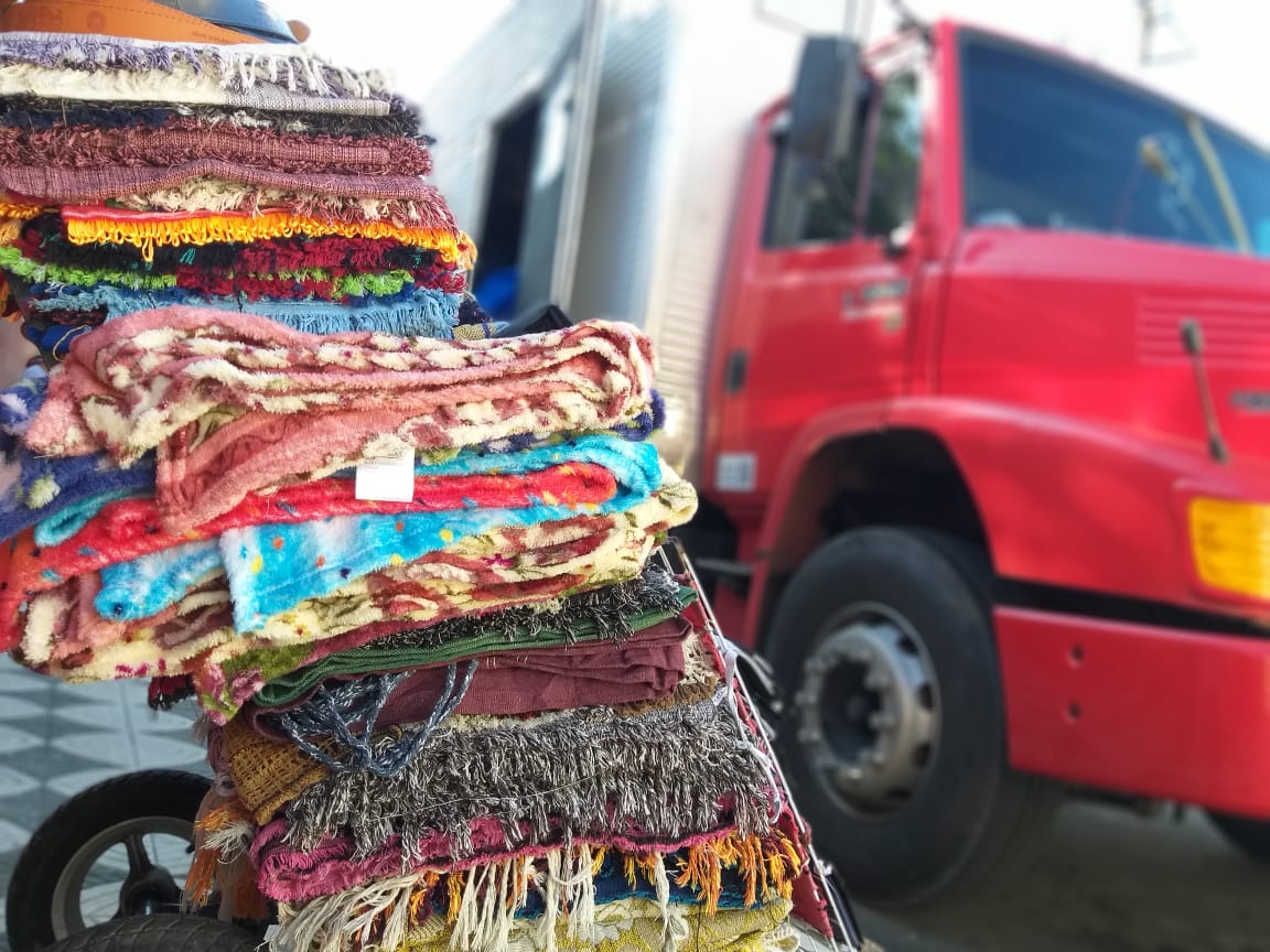O flagrante ocorreu na rua Coronel José Prestes, no exato instante que o responsável pelo carregamento distribuía aos demais clandestinos que planejavam vender pelas ruas da cidade. A equipe de Fiscalização de Feiras e Ambulantes da Secretaria da Segurança e Defesa Civil (Sesdec) apreendeu cerca de 1,8 mil itens entre tapetes, redes e mantas, além de aproximadamente 200 acessórios em couro, como cintos e carteiras.