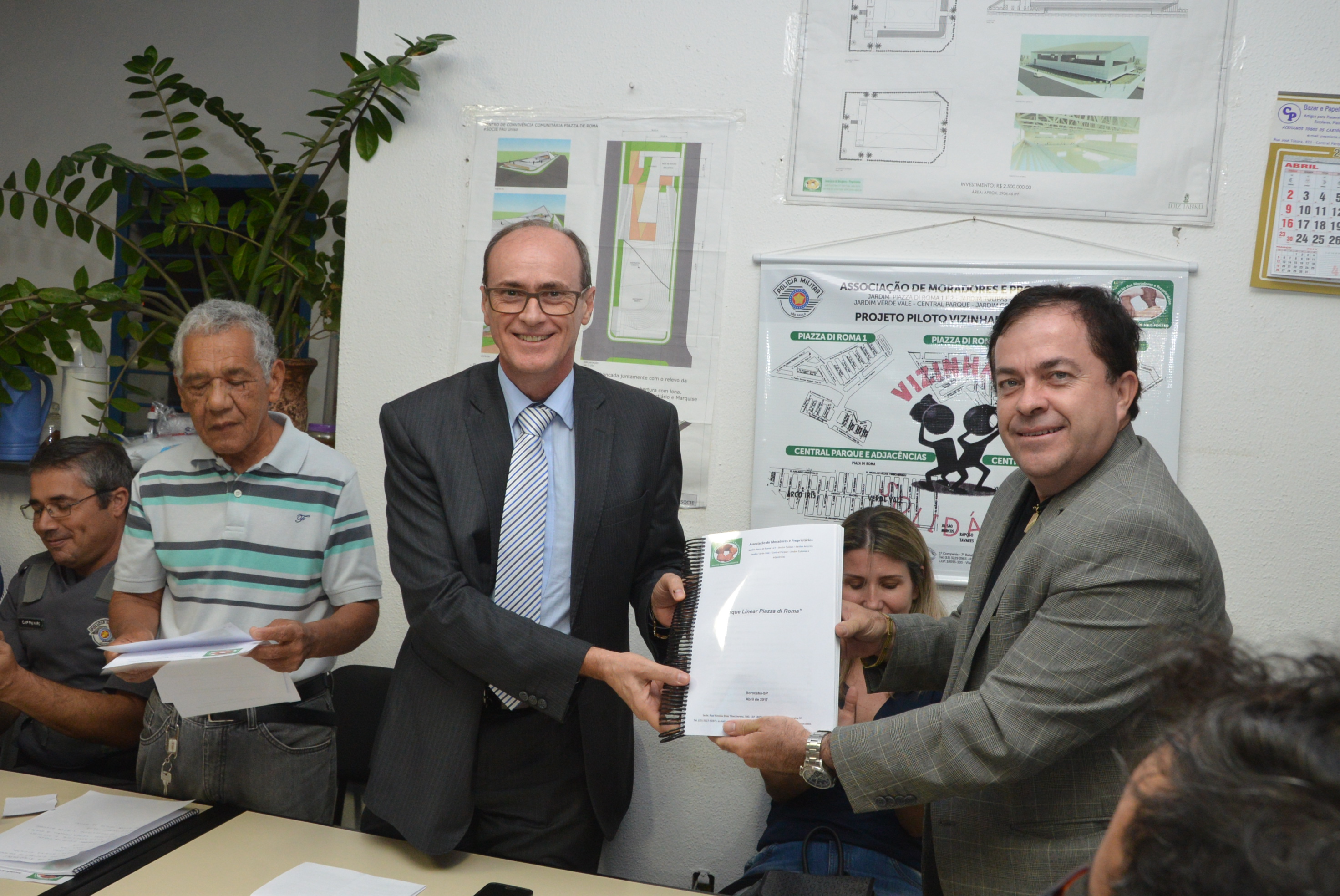 Em reunião, na noite de segunda-feira (10) com a Associação de Moradores e Proprietários do Central Parque, Piazza de Roma e Adjacências, o secretário de Gabinete Central da Prefeitura de Sorocaba, Hudson Zuliani, recebeu um abaixo assinado com mais de 1.500 assinaturas de membros da comunidade apoiando o projeto de instalação do Parque Linear na região e pedindo apoio ao poder público para o atendimento das demandas daquela área.
