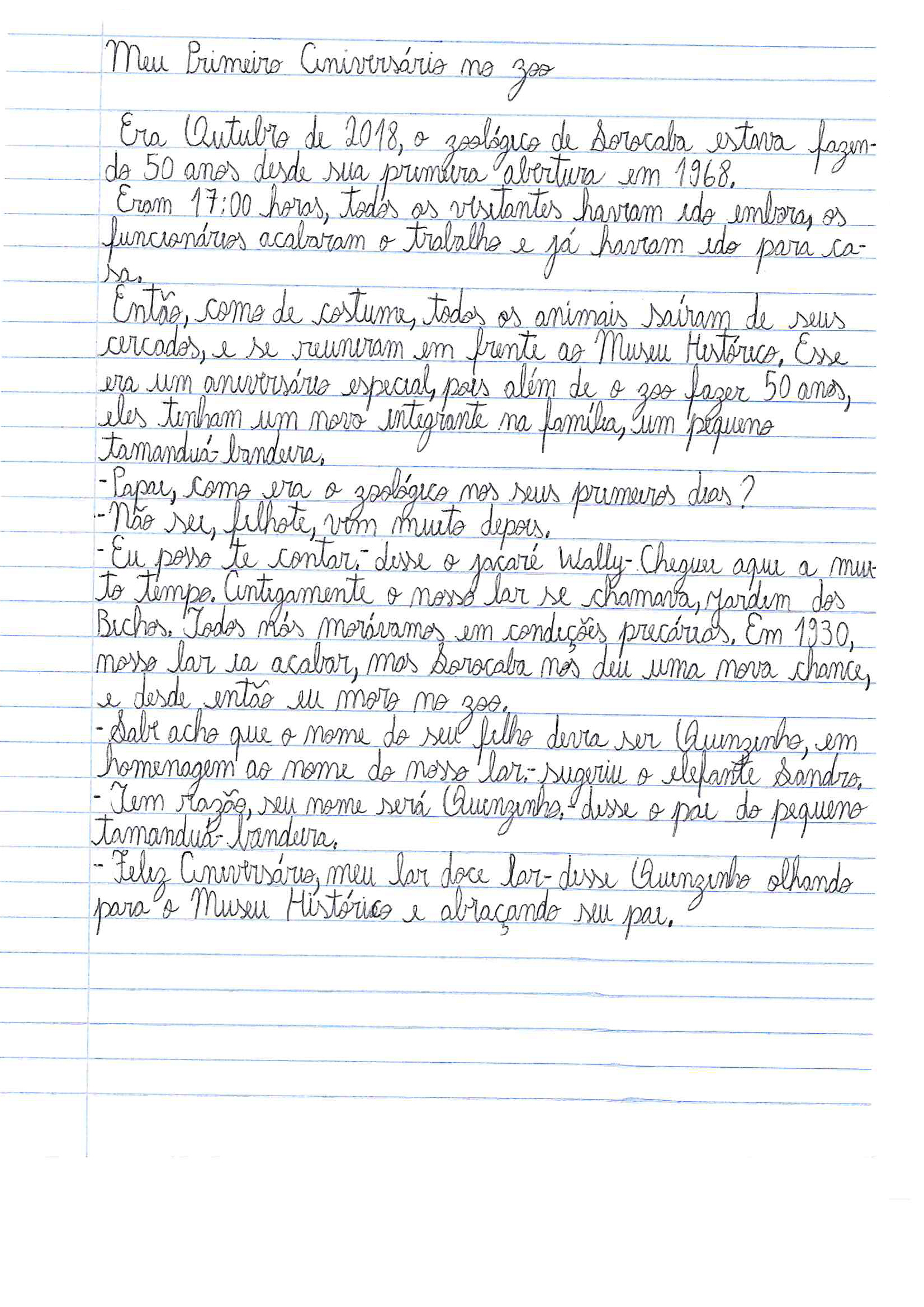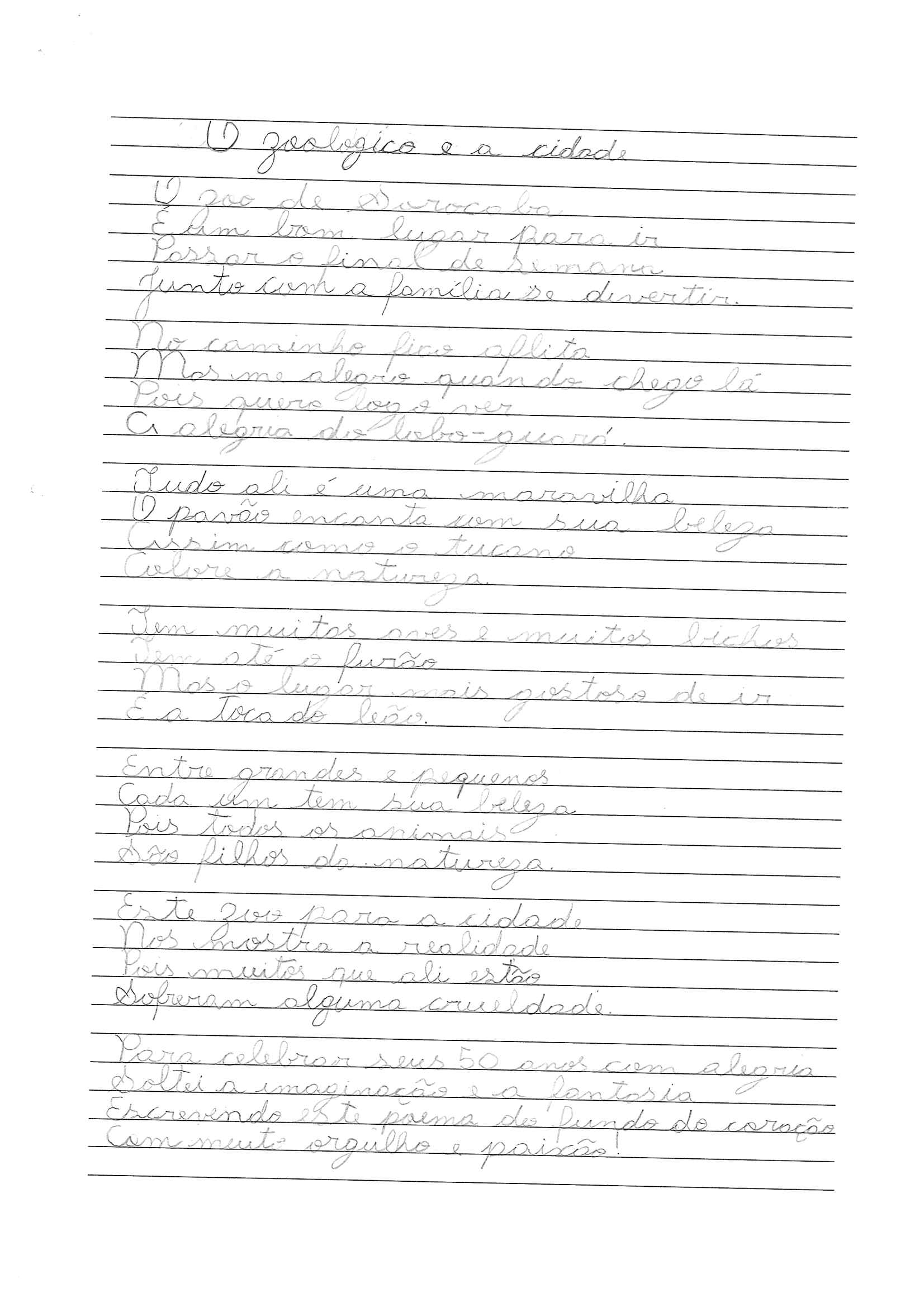 “A ideia do concurso foi de envolver as crianças das escolas municipais com o nosso zoo, que é um patrimônio da nossa cidade, e assim celebrarmos os 50 anos do espaço ecológico de uma maneira educativa, buscando estimular o imaginário dos alunos”, destaca o secretário da Sema, Jessé Loures. Os estudantes da rede puderam mostrar seu talento e criatividade por meio de desenho ou redação que retratasse a importância e o significado do “Quinzinho de Barros” para o município.