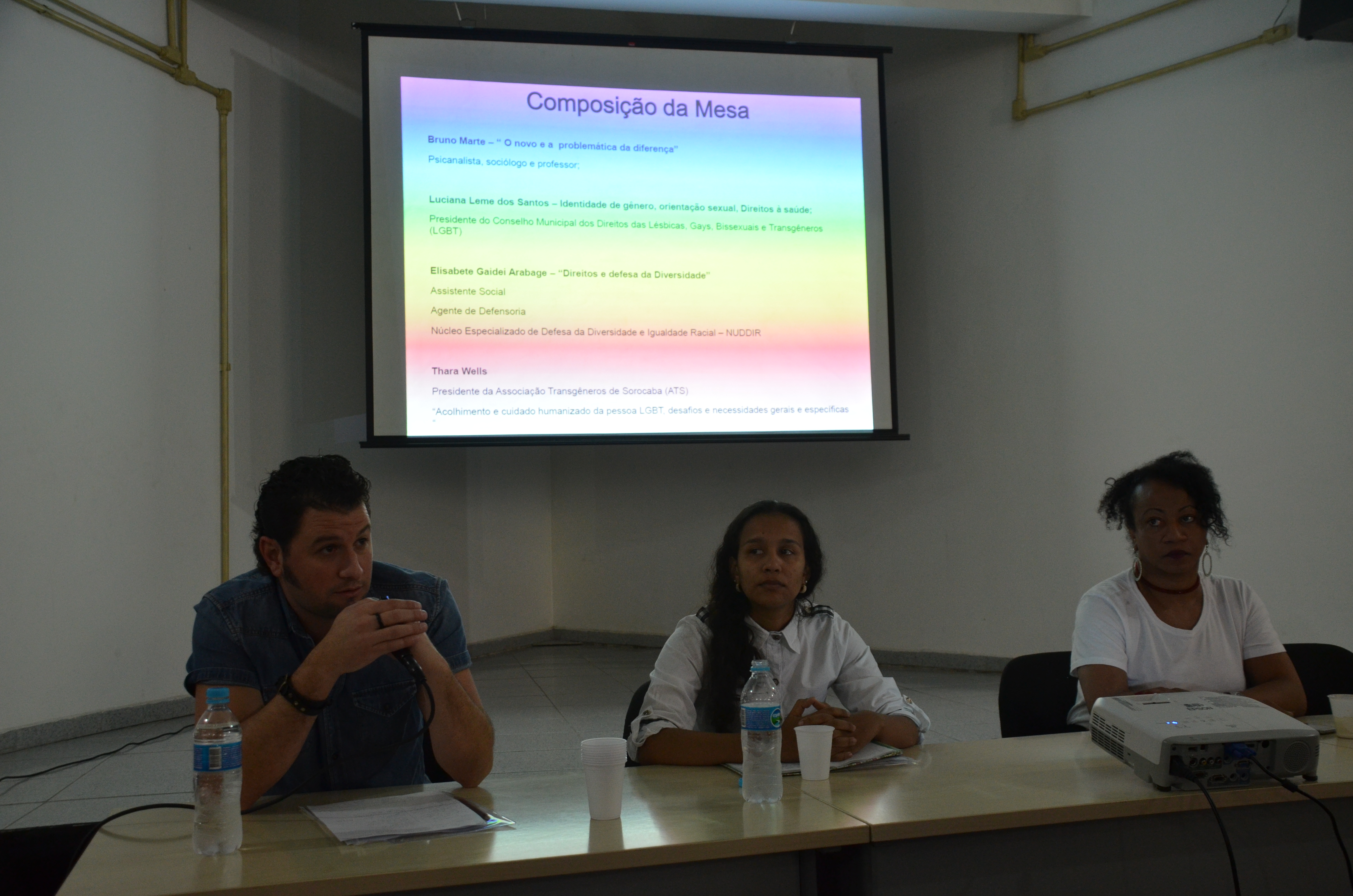 O evento contou com a participação da secretária da Saúde, Dra. Marina Elaine Pereira; do psicanalista, sociólogo e professor, Bruno Marte; da assistente social e agente da Defensoria Pública do Estado de São Paulo, Elisabete Gaidei Arabage; da presidente do Conselho Municipal dos Direitos das Lésbicas, Gays, Bissexuais e Transgêneros (LGBT), Luciana Leme; e da presidente da Associação Transgêneros de Sorocaba (ATS), Thara Wells. Também estiveram presentes as conselheiras Gabriela Chagas e Vivian Machado e a coordenadora de Diversidade Sexual, Rogéria Fernandes. A secretária de Cidadania e Participação Popular (Secid), Suélei Gonçalves, foi representada pela servidora pública, Maria da Penha Nihei.