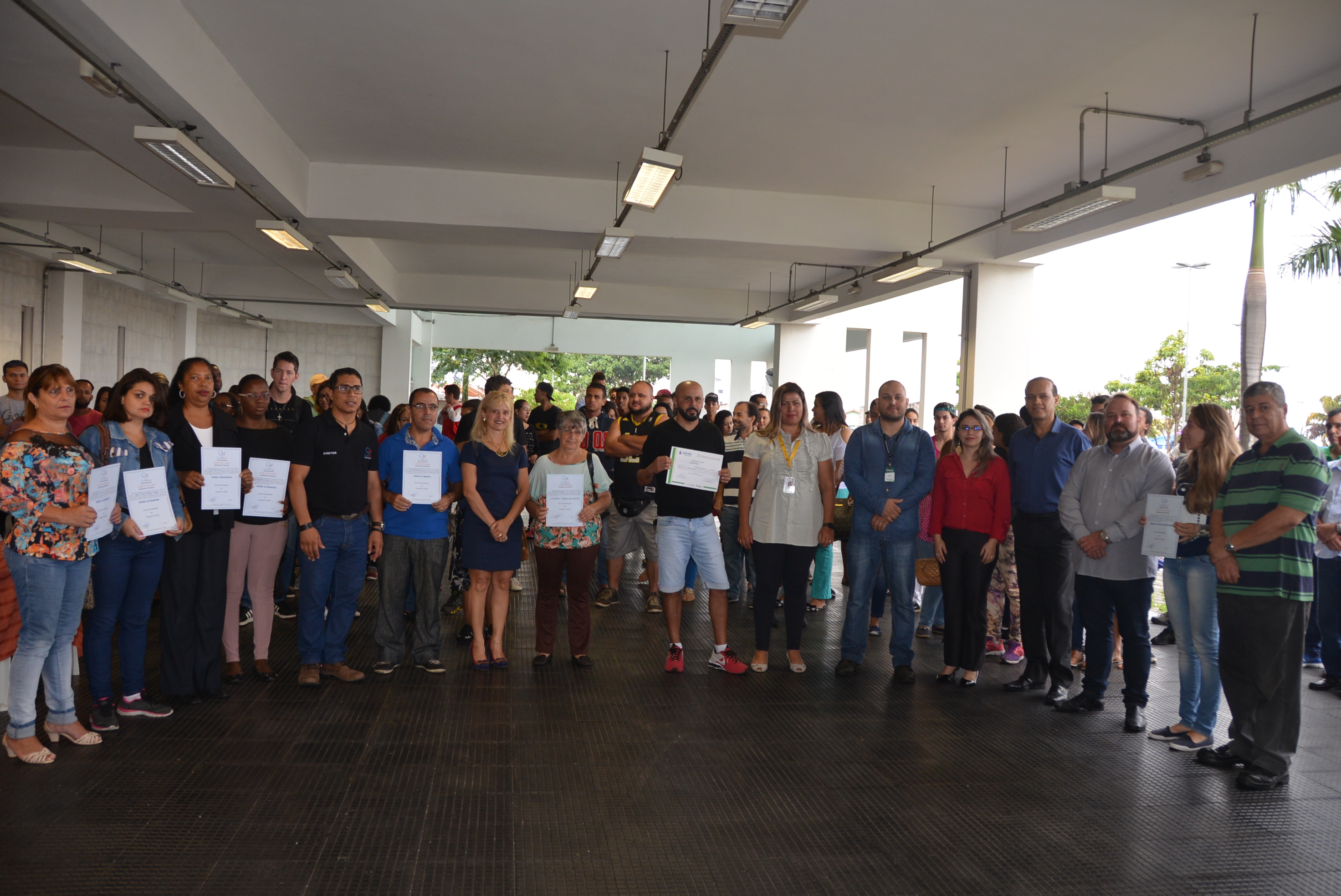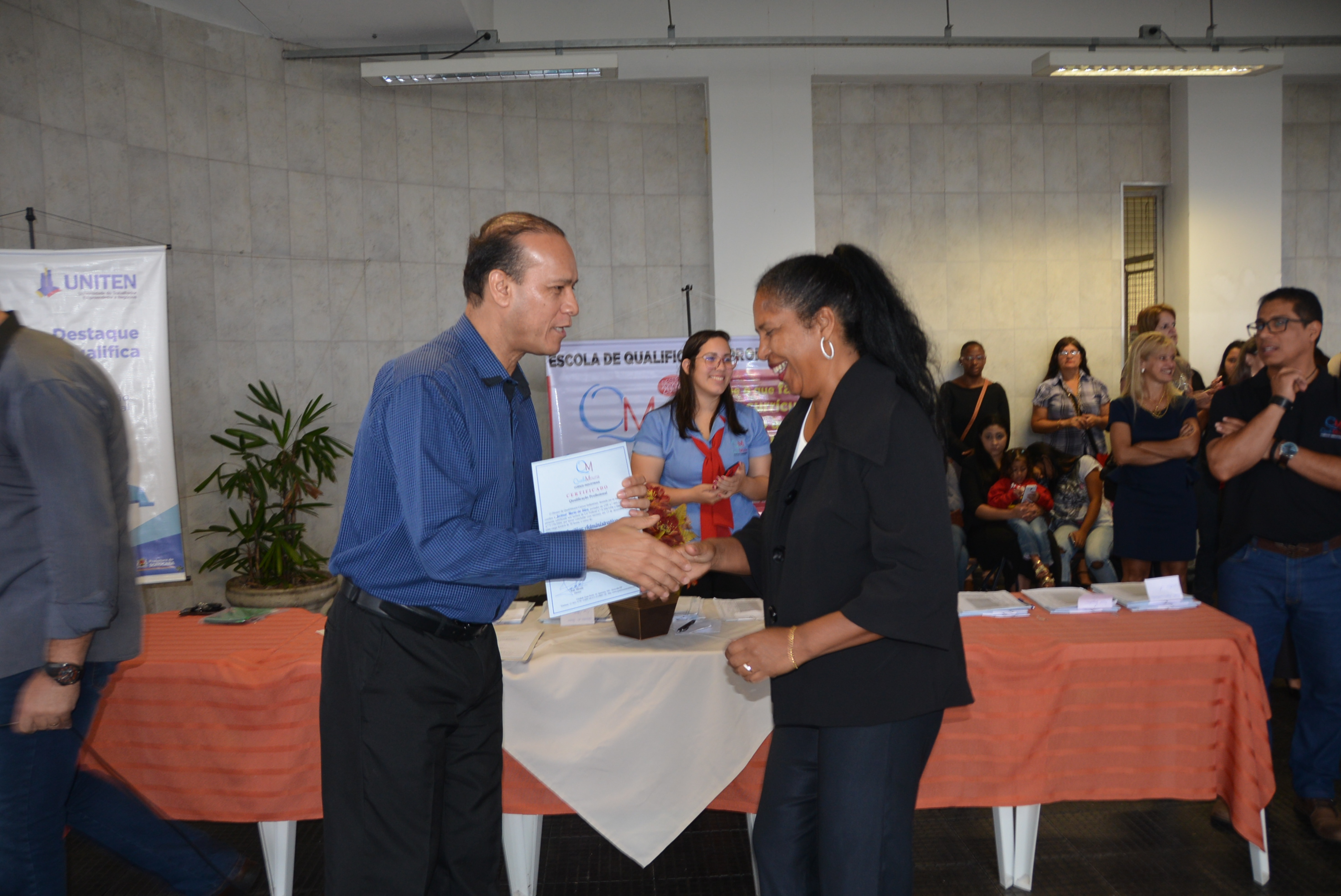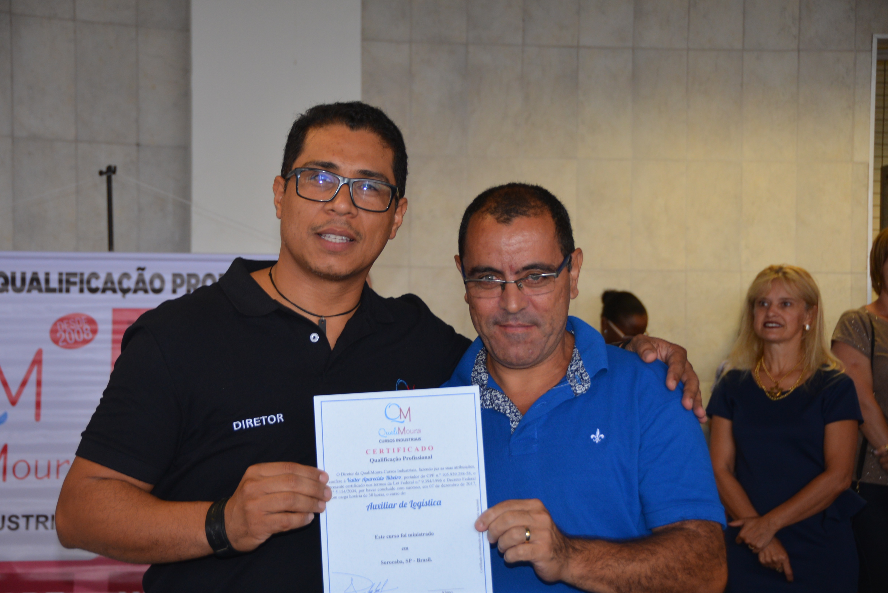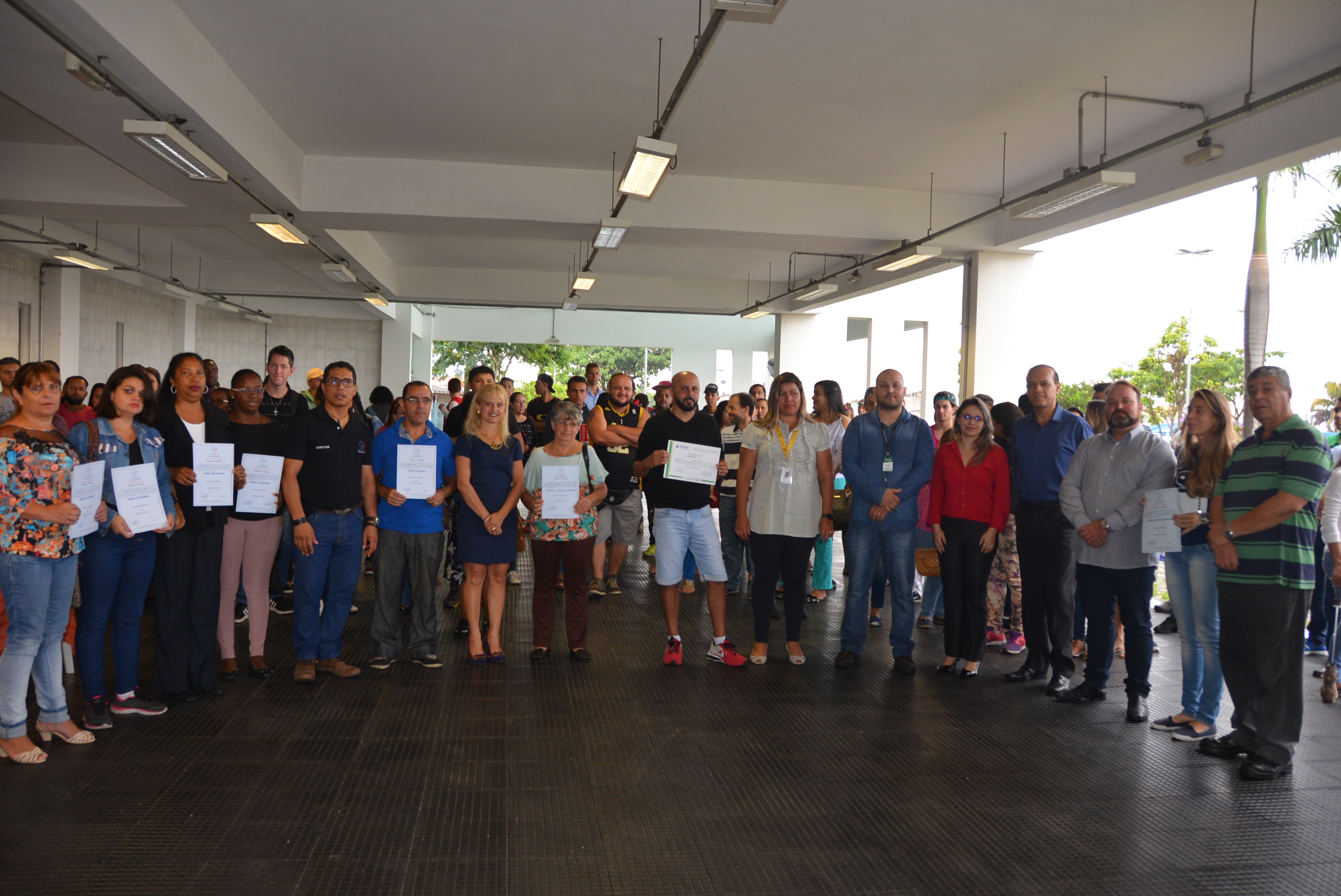 Os certificados foram entregues aos alunos dos cursos de Auxiliar Administrativo, Auxiliar em Logística, Auxiliar de Recursos Humanos, Auxiliar de Qualidade, Auxiliar de Costura, Operador de Caixa, Vendas e Atendimento ao Cliente, Segurança do Trabalho e Equipamento de Proteção Individual.