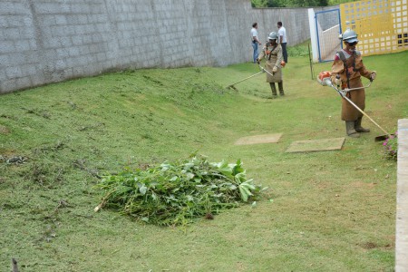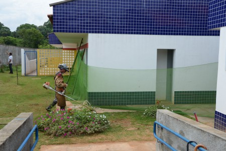 Novas grades de escoamento estão previstas para serem colocadas na parte da frente do prédio do CEI-104 e também próximo ao muro do fundo. Ali também está sendo realizado o corte de grama.
