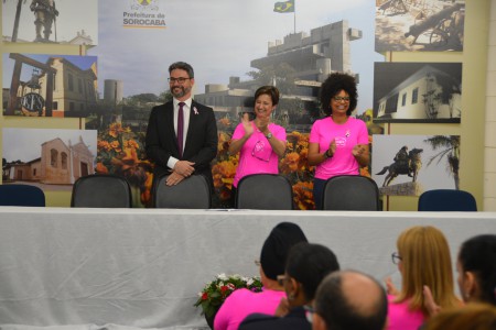 Durante o evento, a Prefeita Jaqueline sancionou o Projeto de Lei de autoria do vereador Hudson Pessini, que instituiu o mês de outubro como o mês da luta contra o câncer de mama e o dia 30 de outubro como o Dia Municipal na luta contra o câncer de mama (alterando a Lei 6.533/2002). “A comunicação é importante para conscientização à prevenção ao câncer de mama. A campanha outubro rosa teve início nos anos 90. Quando o então vereador João Donizete fez essa lei em 2002, era muito recente. Por isso agora, propus essa alteração e ter o mês de outubro como de combate ao câncer de mama, por ser o mês nacionalmente dedicado à essa conscientização”, explicou Hudson.