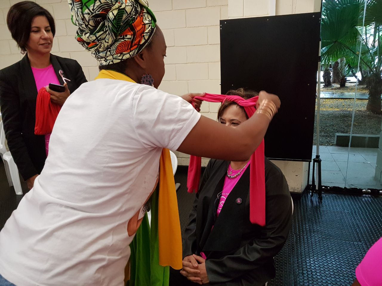 O evento teve a participação das Secretarias de Saúde e Comunicação e Eventos, e do Fundo Social de Solidariedade (FSS) presidido por Jéssica Carvalho, e contou com oficina de turbantes, massagem relaxante e arrecadação de lenços, que posteriormente serão doados às mulheres que estão passando pelo tratamento. “Com muito empenho e disposição preparamos esse evento por sabermos da importância de se conhecer a importância da prevenção ao câncer de mama e falar sobre isso. Não só em outubro, mas sempre usar o rosa e incentivar a prevenção. O quanto antes for diagnosticado, a possibilidade de cura é muito maior”, ressaltou Jéssica.