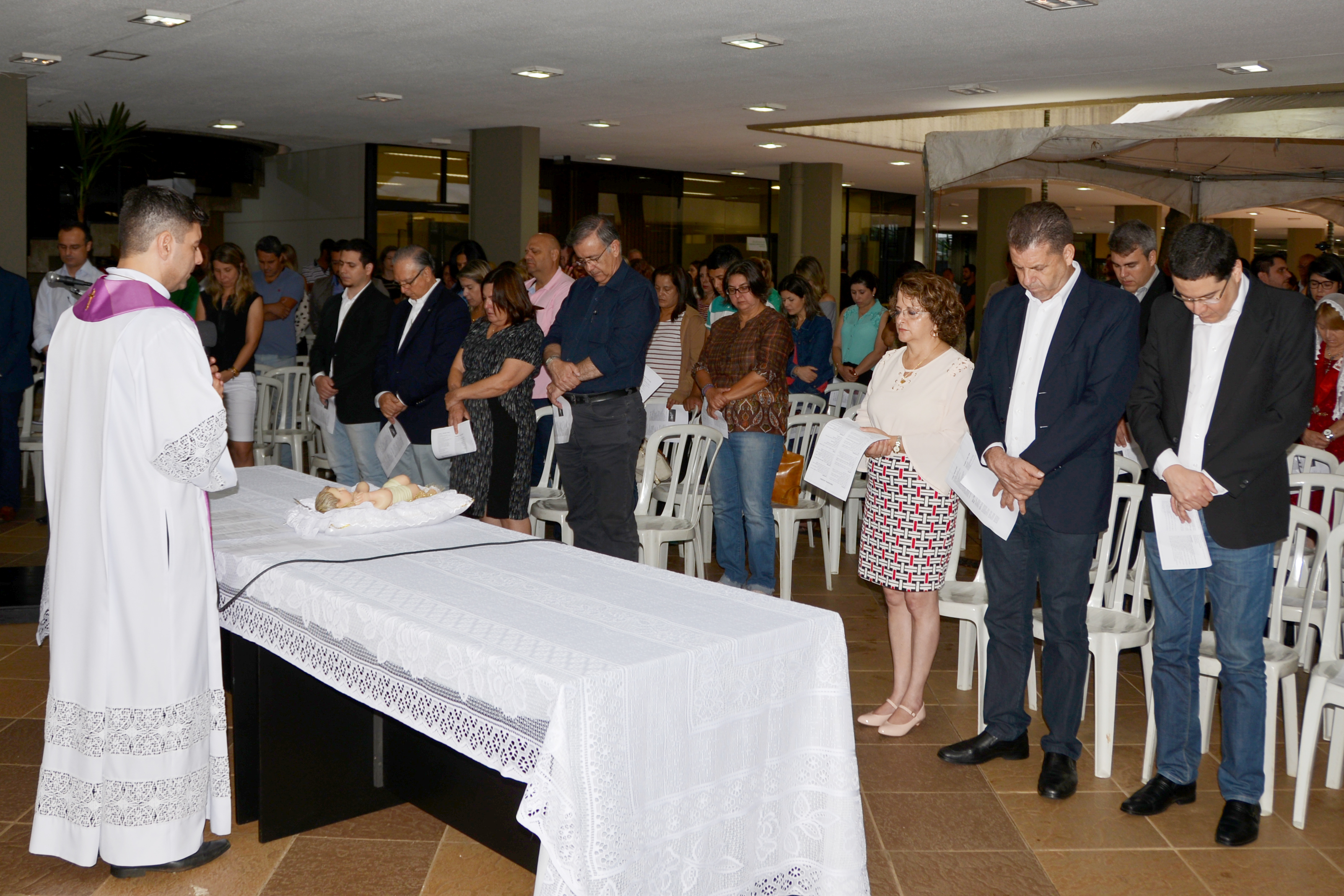 O Fundo Social de Solidariedade de Sorocaba, por meio da presidente e primeira dama, Lilian Crespo, e de sua equipe organizaram uma celebração de Natal, realizada nesta sexta-feira (22), no térreo do paço municipal. O Prefeito José Crespo, secretários municipais e servidores participaram da solenidade, ministrada pelo padre Wilson Roberto.