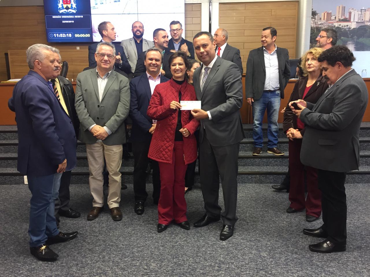 A Prefeitura de Sorocaba recebeu da Câmara de Vereadores, na manhã desta quinta-feira, a devolução de R$ 2,5 milhões de recursos que foram economizados do orçamento do Legislativo. A cerimônia de repasse foi realizada durante a sessão ordinária desta quinta-feira, em que a prefeita Jaqueline Coutinho recebeu o cheque das mãos do presidente da Câmara, o vereador Fernando Dini. A solicitação dos vereadores é para que o valor seja aplicado na área saúde.