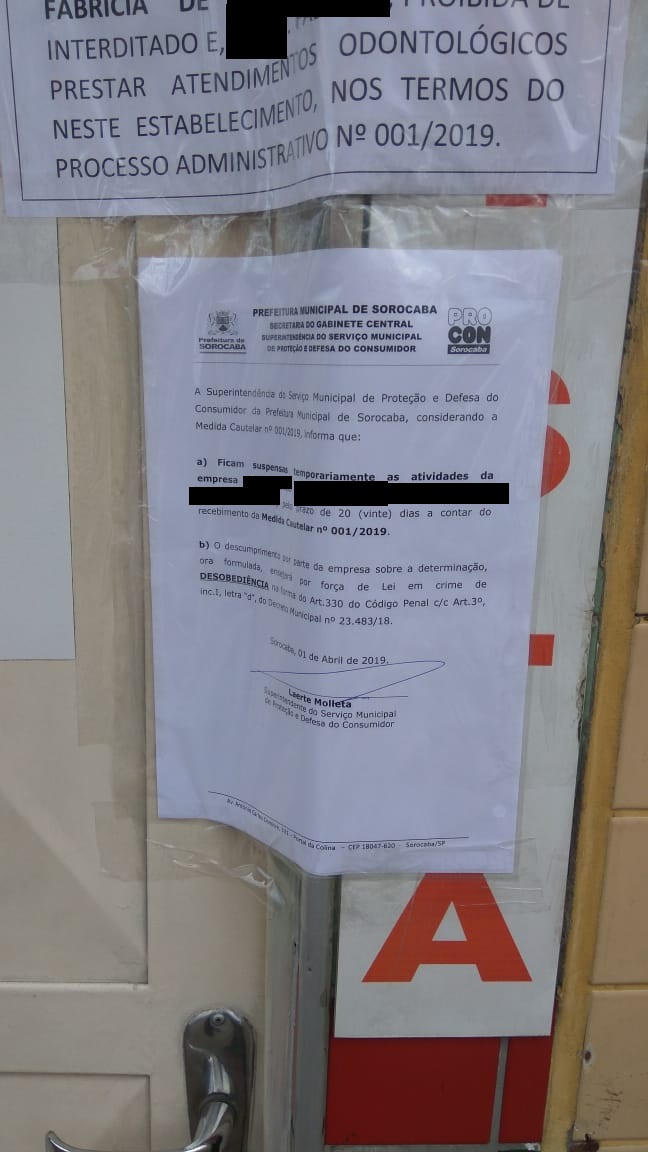 Procon Sorocaba interdita clínica odontológica por transgredir Código de Defesa do Consumidor