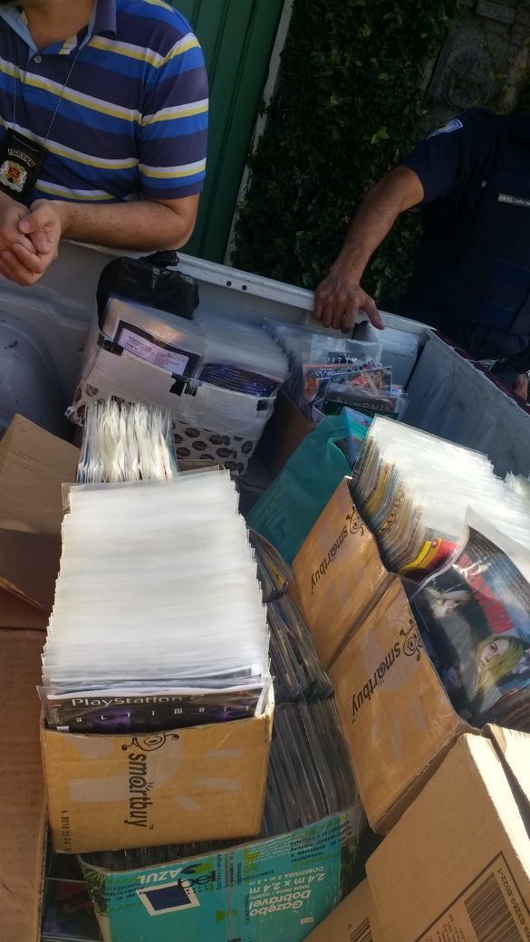 A primeira autuação aconteceu na feira livre realizada na Vila Progresso. Os agentes se deparam com um casal em um veículo Agile verde, comercializando DVDs, CDs e Pen-drive piratas. Os produtos foram apreendidos e encaminhados com seus responsáveis ao Primeiro Distrito Policial da Vila Progresso e à autoridade Policial de plantão. Foram apreendidos 3.100 DVDs e CDs e 33 Pen-drives.