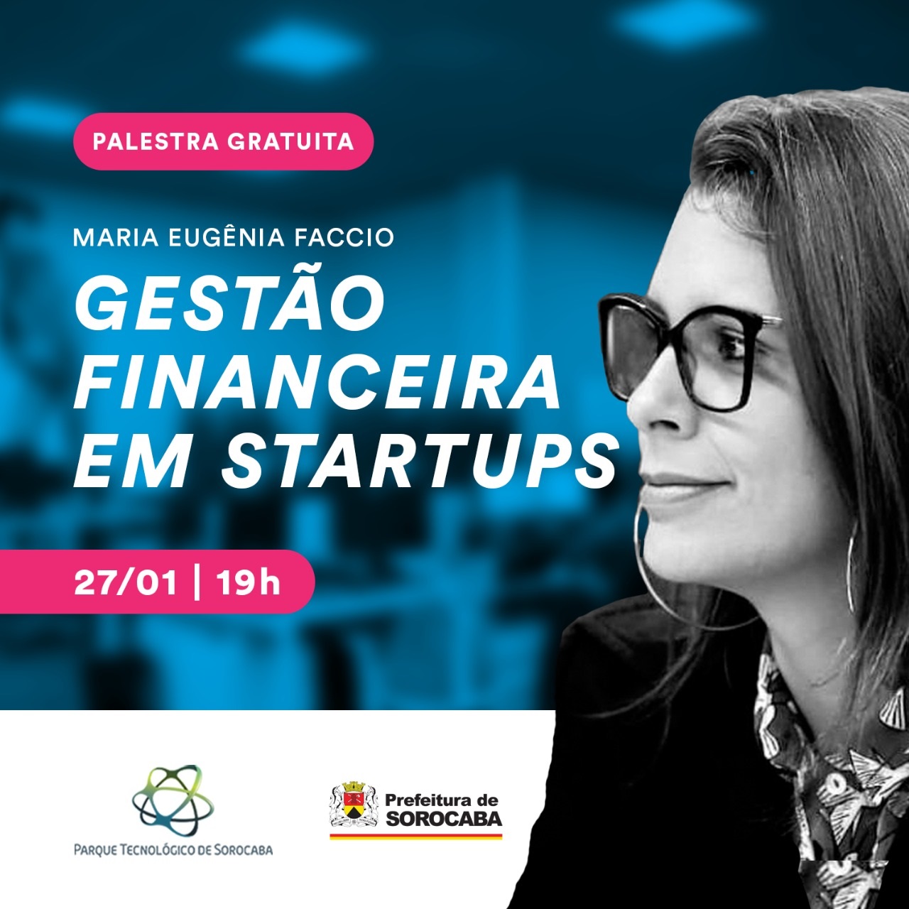 Economista e especialista em finanças, Maria Eugênia Faccio estará no PTS (Parque Tecnológico de Sorocaba) para ministrar a palestra “Gestão financeira em startups”. O evento, que é de graça, será nesta segunda-feira (27), às 19h, e as inscrições devem ser feitas por meio do link: https://www.sympla.com.br/gestao-financeira-em-startups__769875.