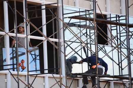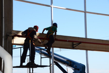 Sem chuva, anexos do prédio começam a receber telhas metálicas