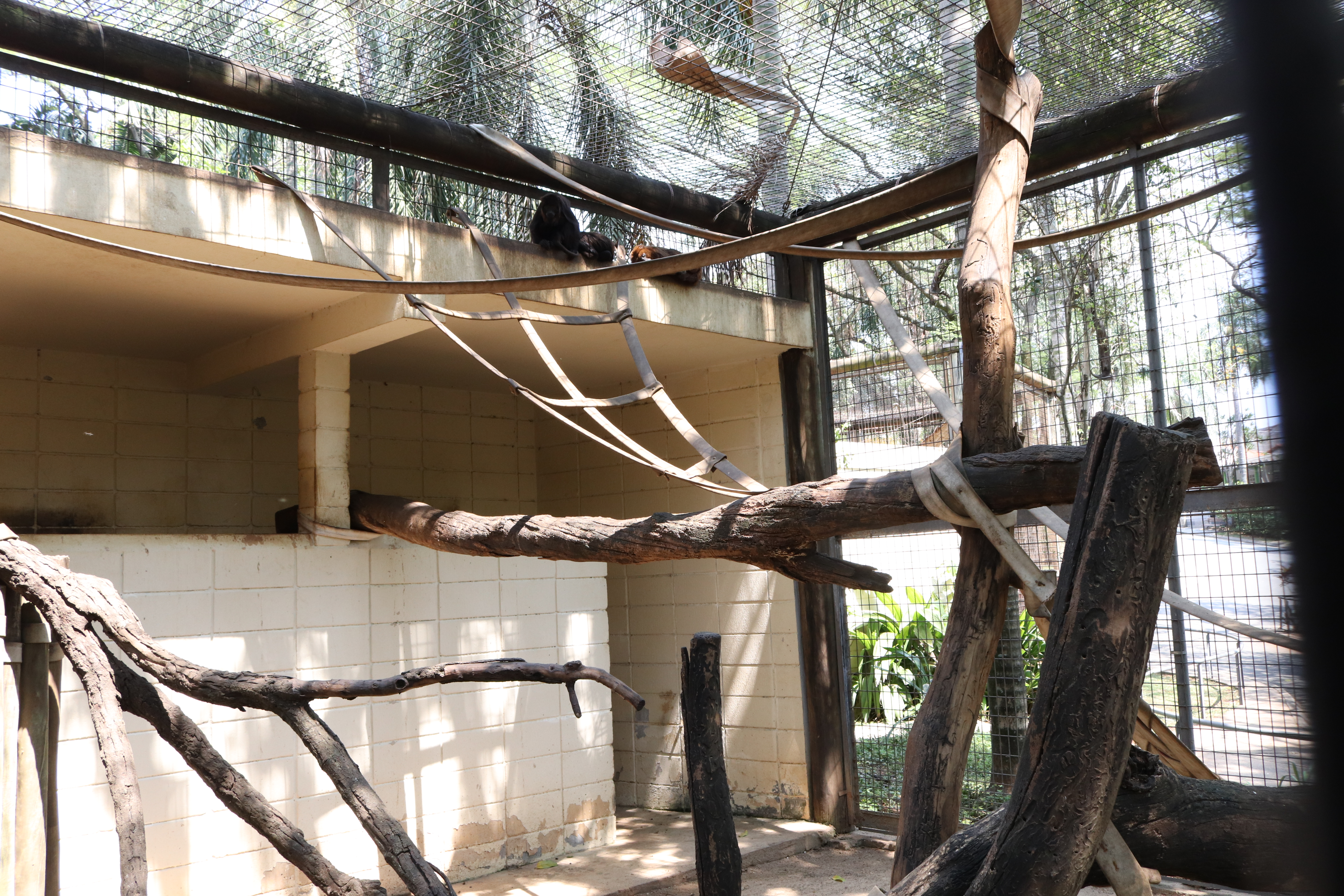 O recinto dos bugios especiais é todo adaptado a necessidade deles. Os puleiros, por exemplo, são colocados numa altura mais baixa para que, em caso de queda no momento do pulo, o animal não se machuque. As esteiras também estão colocadas em local mais baixo para que os animais alcancem e subam. O espaço também conta com galhos de árvores e folhas.