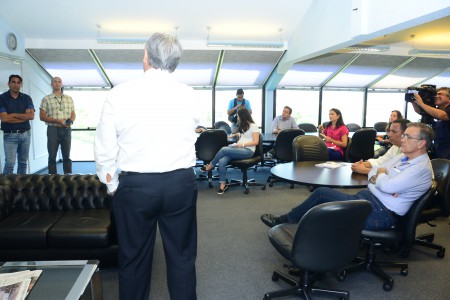 Participaram também da entrevista coletiva o vereador Fernando Dini e os secretários Eloy de Oliveira (Comunicação e Eventos) e Hudson Zuliani (Gabinete Central).