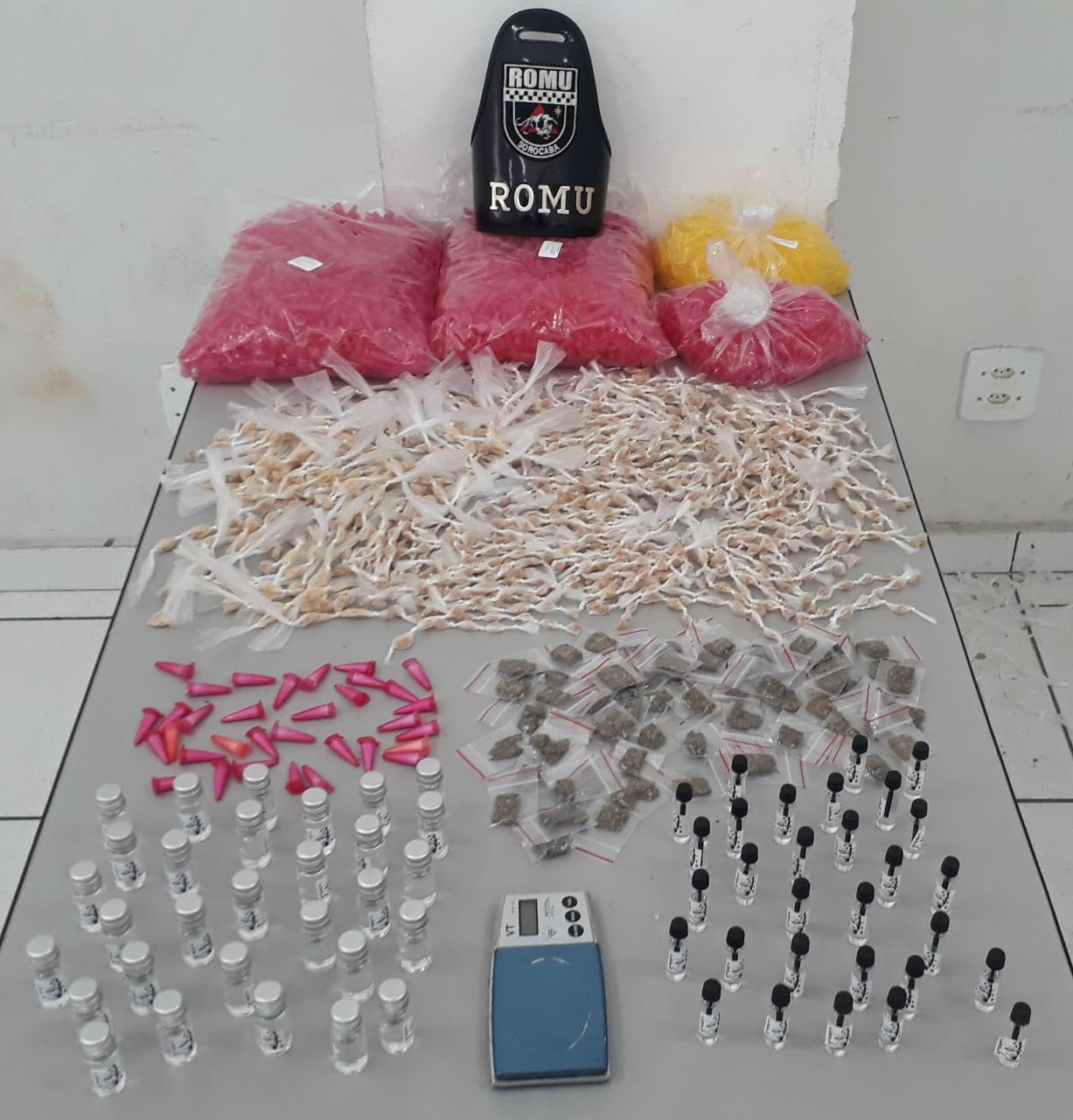 No local, entretanto, havia uma residência que se encontrava com a porta aberta e, no seu interior, um indivíduo que foi abordado, F.A.R.F. de 20 anos, onde juntamente com ele foi localizada uma bolsa contendo 1.304 porções de crack, 62 porções de maconha, 33 porções de cocaína, 60 vidros de lança perfume, uma balança de precisão e aproximadamente 2.500 micro tubos vazios.