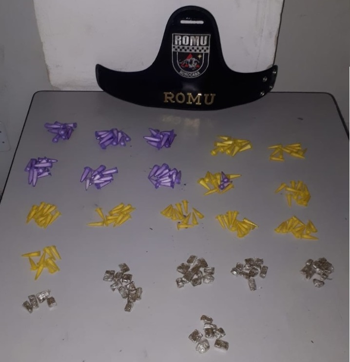 Em revista pessoal, foi encontrado no bolso seis microtubos de cocaína e quatro porções de maconha. Ao averiguar o local onde A.A.M de 23 anos estava, foi encontrada uma sacola plástica contendo mais 152 microtubos de cocaína e 47 porções de maconha. Indagado, o indivíduo assumiu a propriedade do material encontrado e confirmou estar traficando no local.