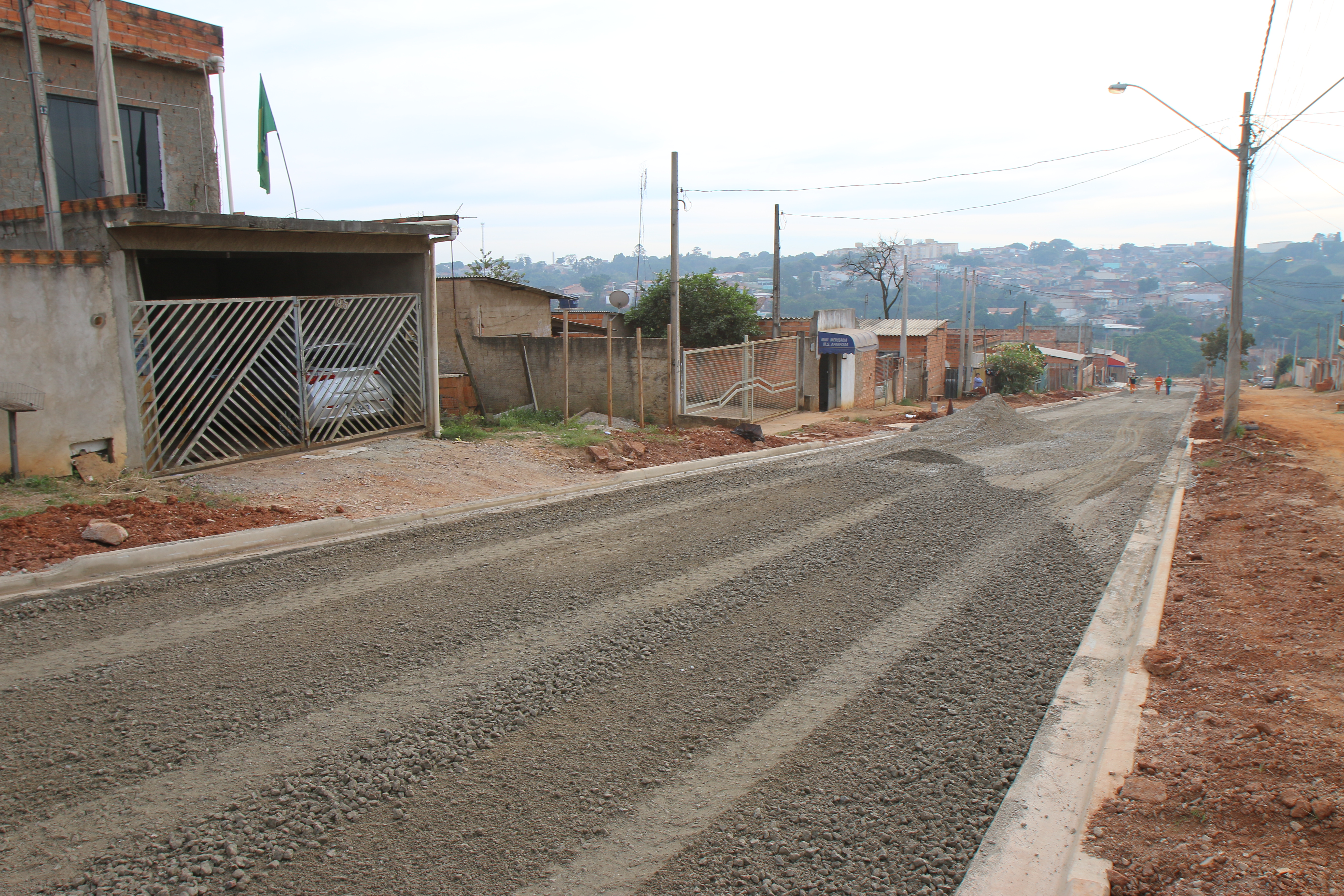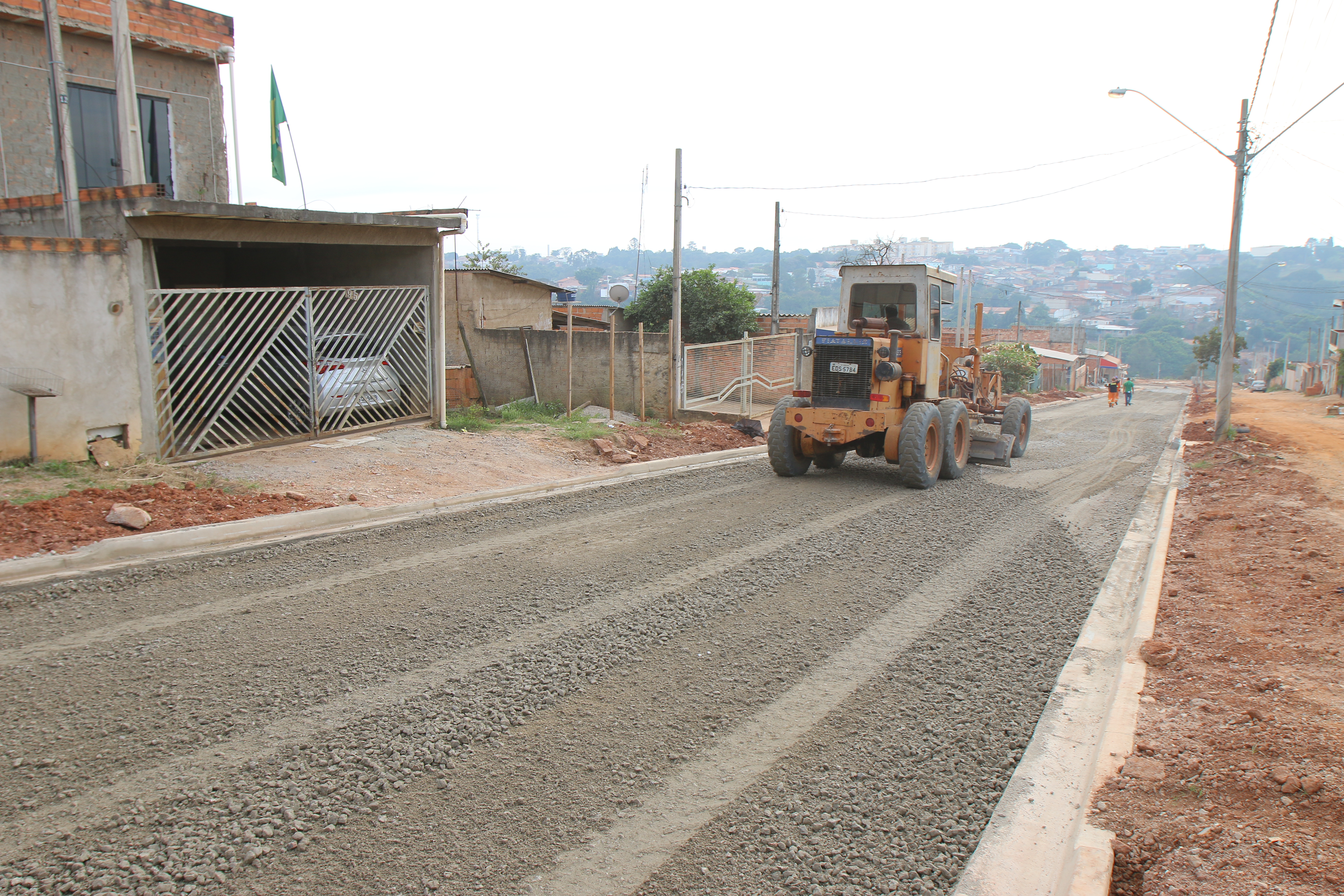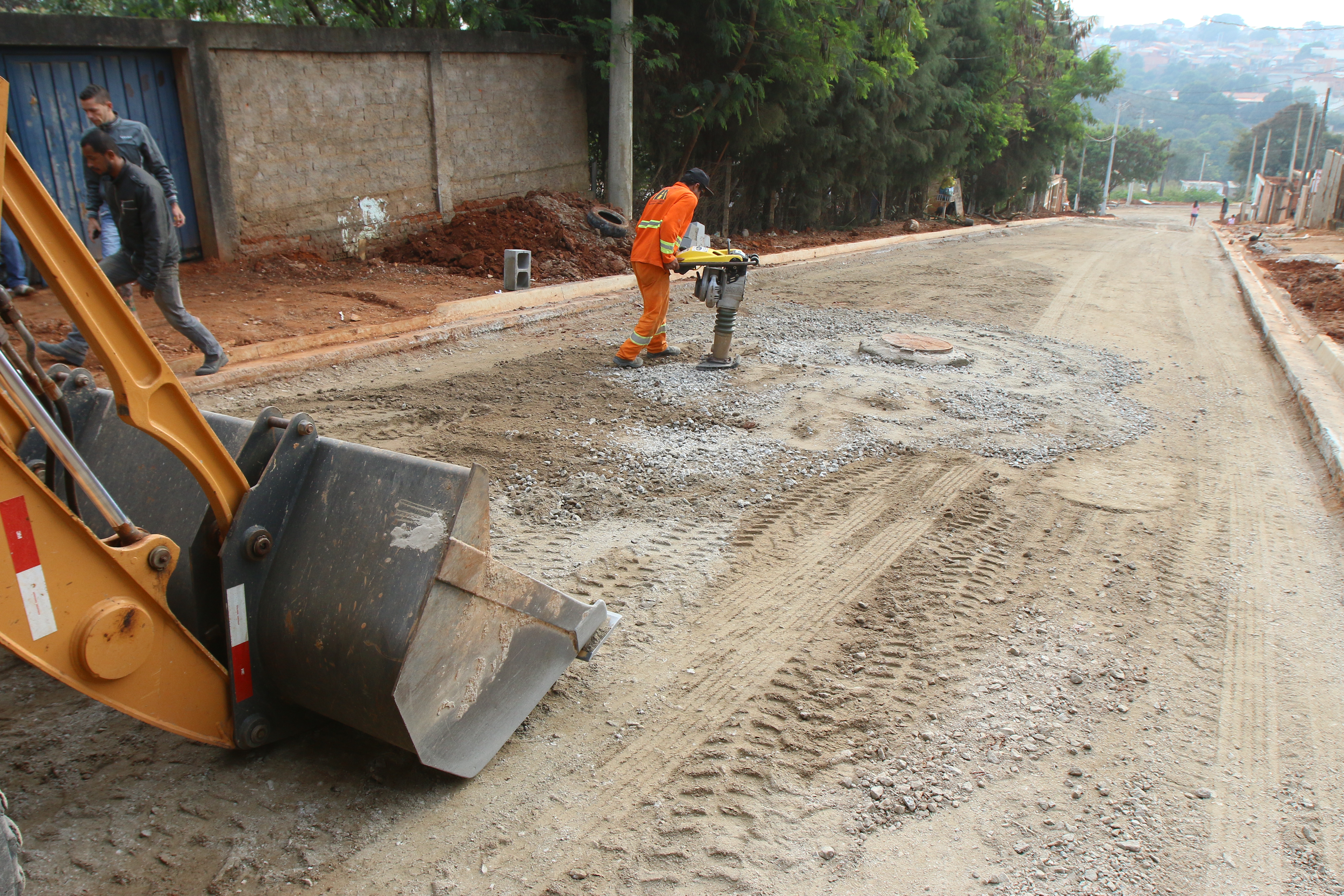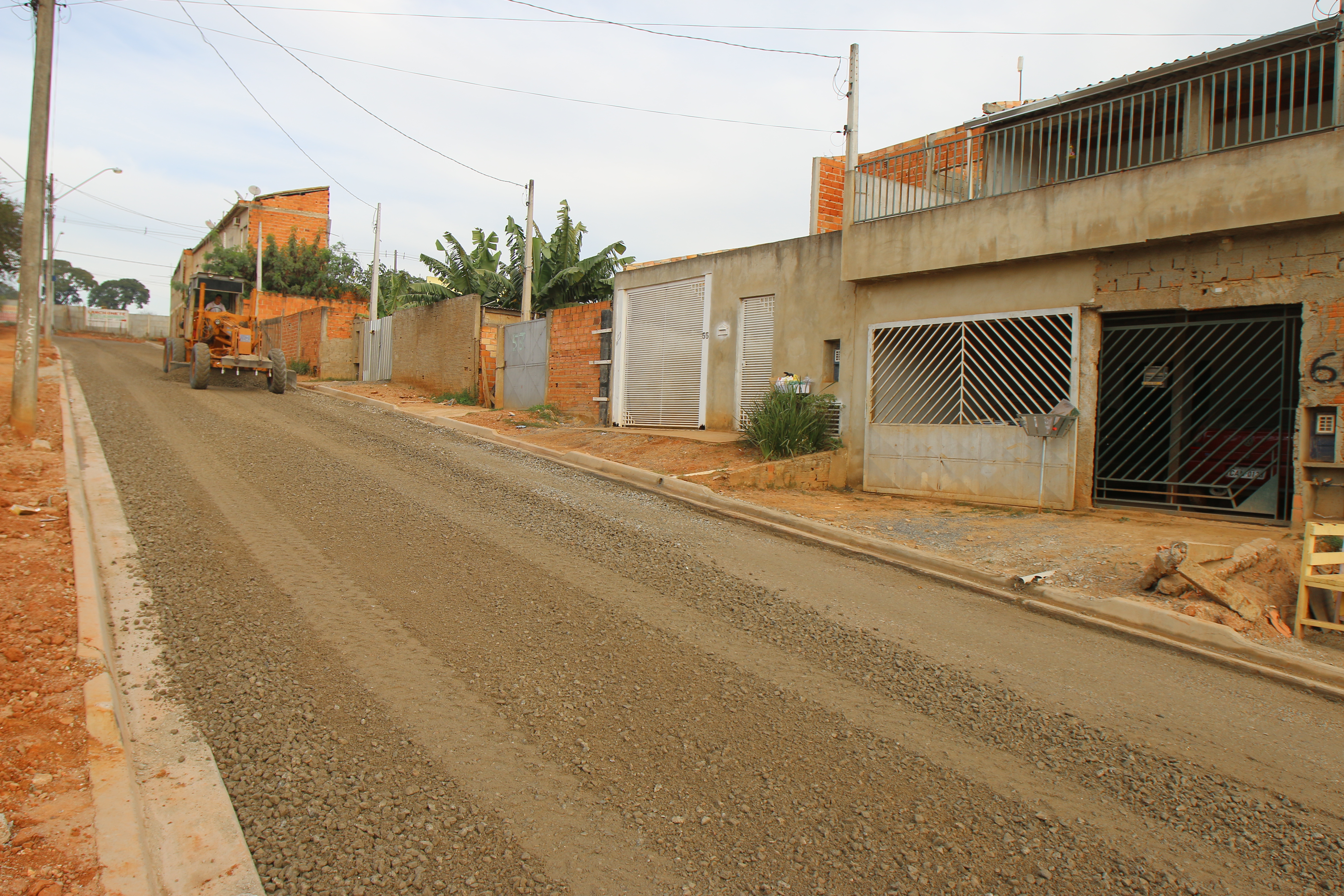 A Rua Antonio Bravo Plaça já está pronta para aplicação do binder (camada de ligação) e, depois, a capa asfáltica. Na manhã desta quinta-feira (30), os funcionários da empresa Oestevalle Pavimentações e Construções Ltda. realizavam a terraplenagem com aplicação de brita (bica corrida) na Rua Maria Aparecida Rodrigues.