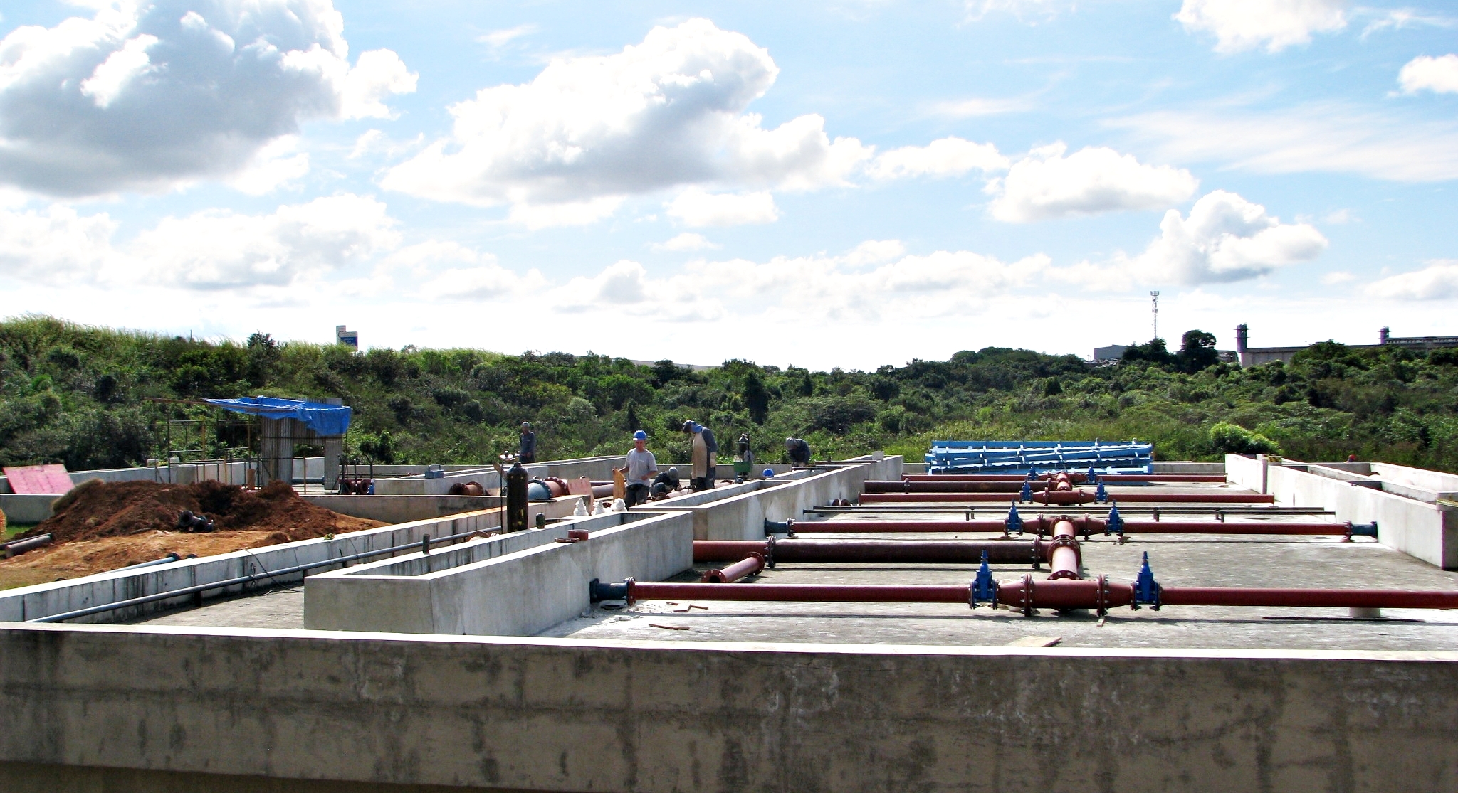 O trabalho inclui a estação elevatória (bombeamento) de esgoto bruto; grade rotativa e desarenador com raspador e rosca transportadora de sólidos; reatores anaeróbios; filtros biológicos e sistema de aeração; decantadores; estação elevatória de recirculação de lodo; tanque de contato de cloro; tanque de recepção e mistura de lodo e sistema de desidratação; sistema de chegada e distribuição de energia; sistema viário interno e de drenagem pluvial; prédio administrativo e tubulação do efluente final.