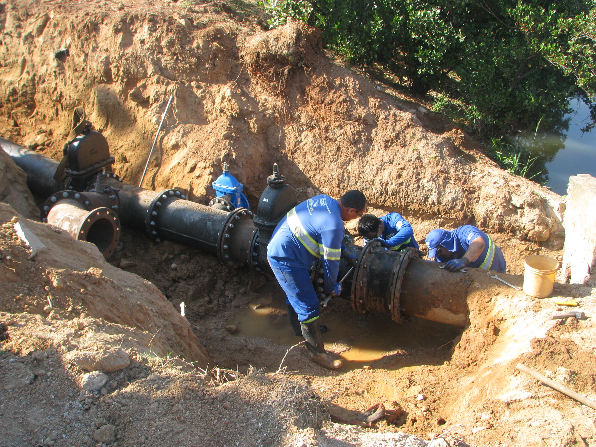 Com o auxílio de caminhões e máquina retroescavadeira, a intervenção teve início às 5h de hoje, na rua Pedro de Oliveira Neto, próximo ao cruzamento das avenidas Washington Luiz e Antônio Carlos Cômitre, e consistiu no remanejamento de um trecho de rede de 350 milímetros de diâmetro, para uma posição menos profunda em relação à original, o que vai proporcionar mais agilidade em eventuais futuras manutenções, facilitando também a detecção de possíveis vazamentos.