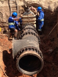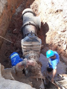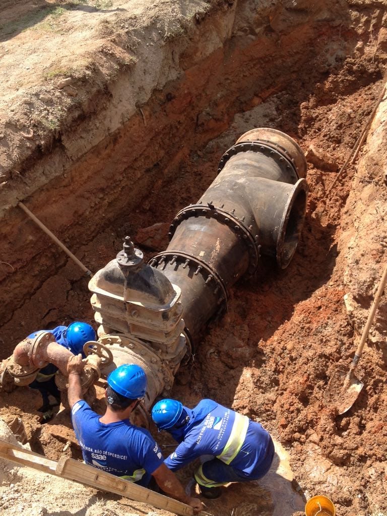 A equipe de profissionais do próprio Saae-Sorocaba está instalando os novos 550 metros de linha necessários para interligar a ETA Vitória Régia com a rede já existente na avenida Itavuvu, que atende o Jardim Maria Eugênia. Essa tubulação possui 700 milímetros de diâmetro, o que é capaz de transportar até mil litros por segundo, mas a expectativa é que a demanda seja de 300 litros por segundo. “A construção da nova ETA segue com muita agilidade e o Saae vai preparando as suas redes para garantir a distribuição”, explica o diretor-geral do Saae-Sorocaba, Ronald Pereira da Silva.