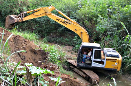Numa extensão de aproximadamente 200 metros, os funcionários da autarquia estão trabalhando no local com máquinas retroescavadeiras e caminhões, recompondo as margens que sofreram erosão pela própria ação das águas do córrego, principalmente em dias de fortes chuvas, quando a vazão aumenta consideravelmente.
