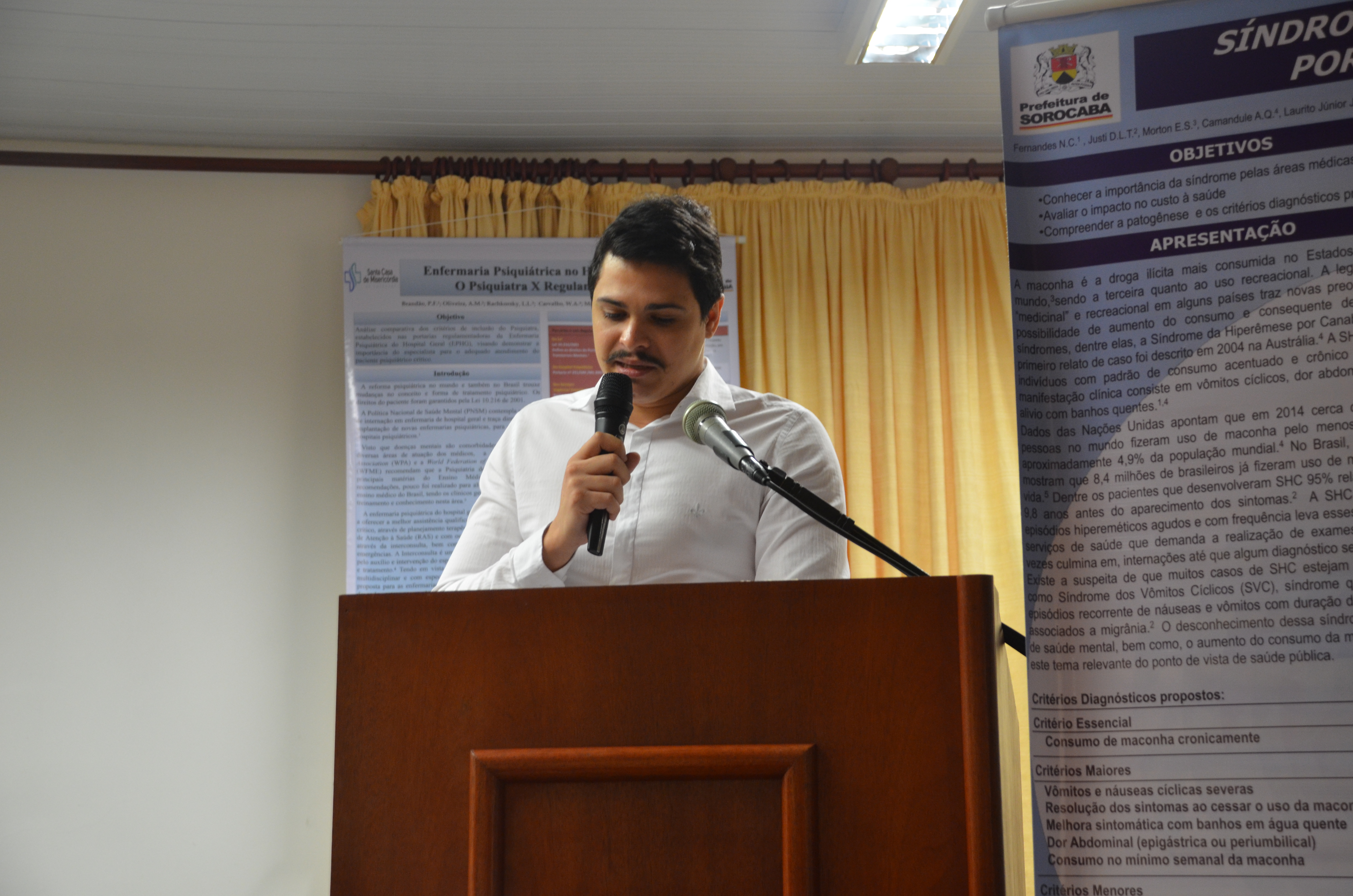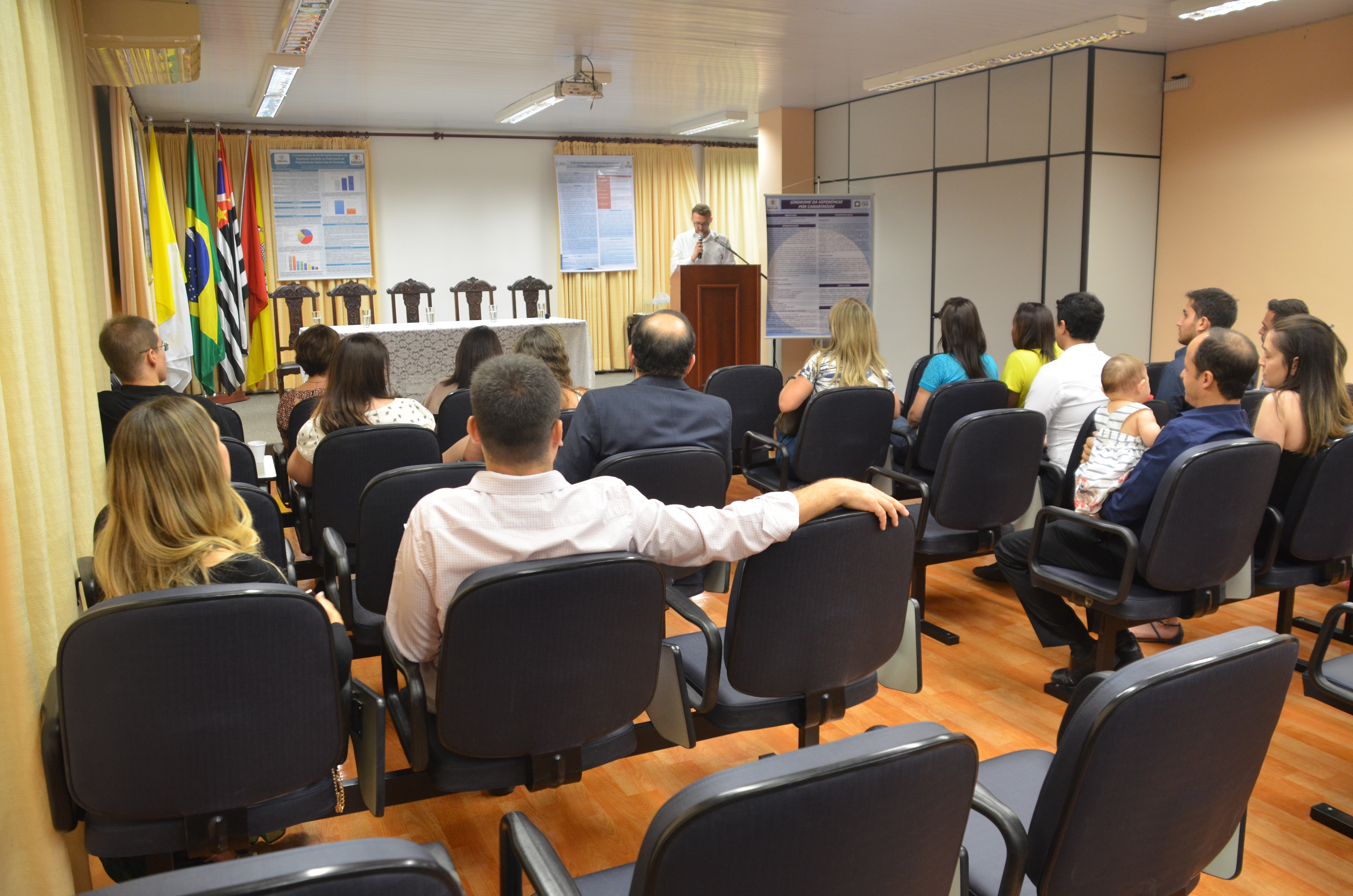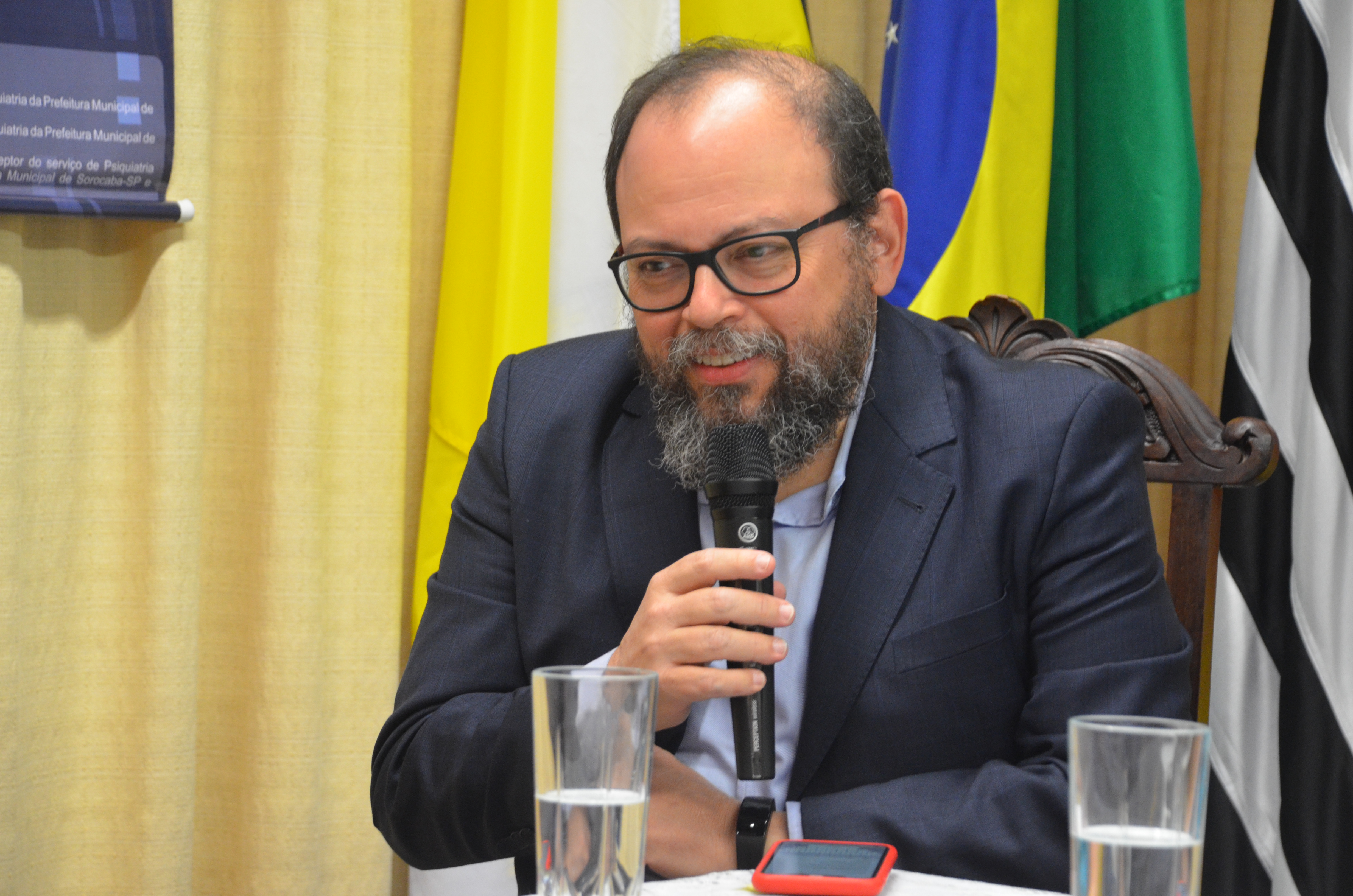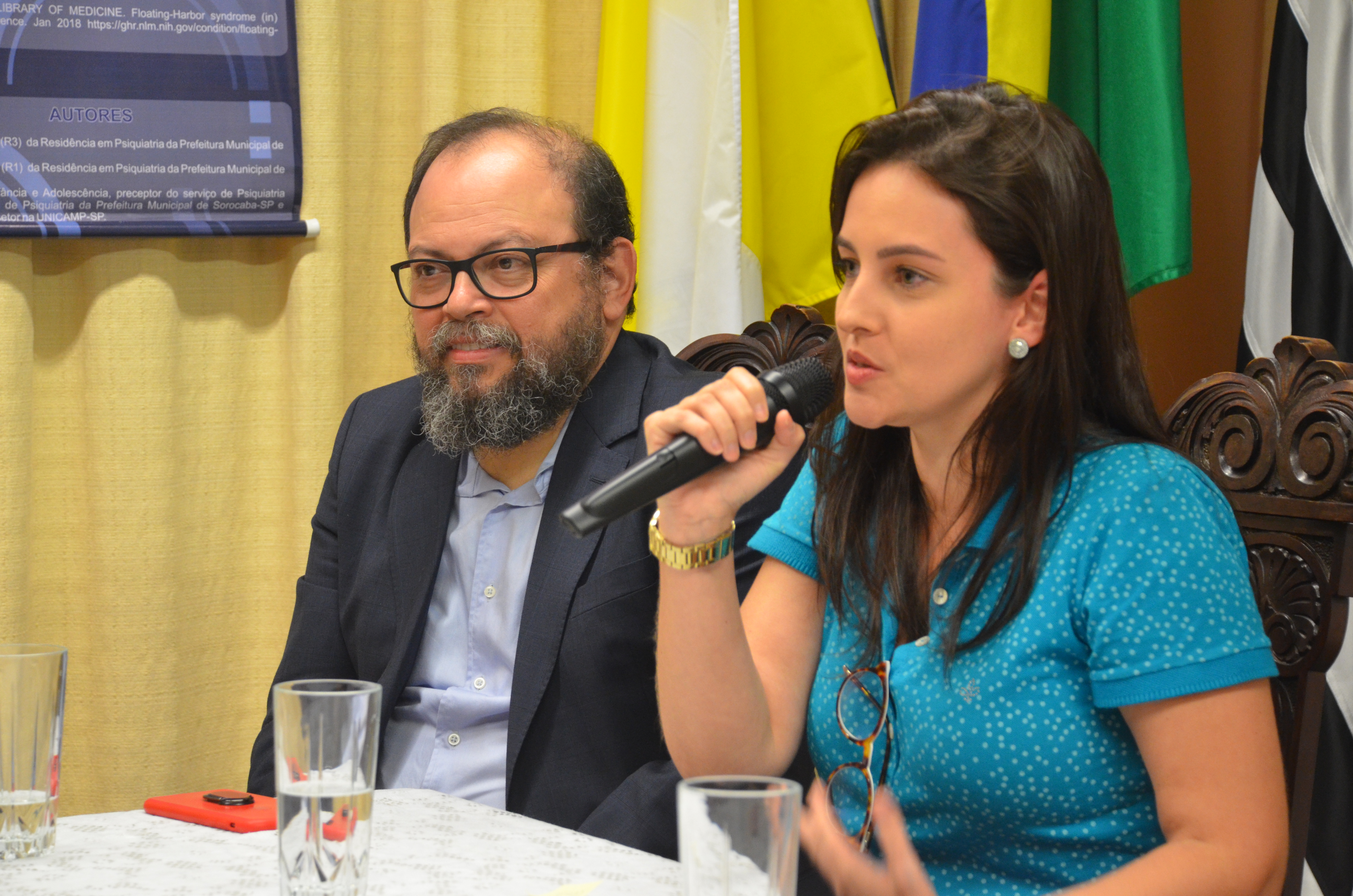Durante o evento, uma mesa foi composta com o psicanalista e psiquiatra da enfermaria de psiquiatria da Santa Casa e coordenador do Programa de Residência Médica em Psiquiatria, João Baptista Laurito Jr; a médica da Divisão de Educação em Saúde da SES e coordenadora da Comissão de Residência Médica- COREME e do Programa de Residência de Medicina de Família e Comunidade, Liliane Maria Guimarães de Pinho; a psiquiatra e chefe da enfermaria de psiquiatria da Santa Casa, Eglinara Silva Morton; a psicóloga e supervisora da Divisão de Educação em Saúde da SES, Camila Maria de Almeida Lima; além da secretária da Saúde, Dra. Marina Elaine Pereira.