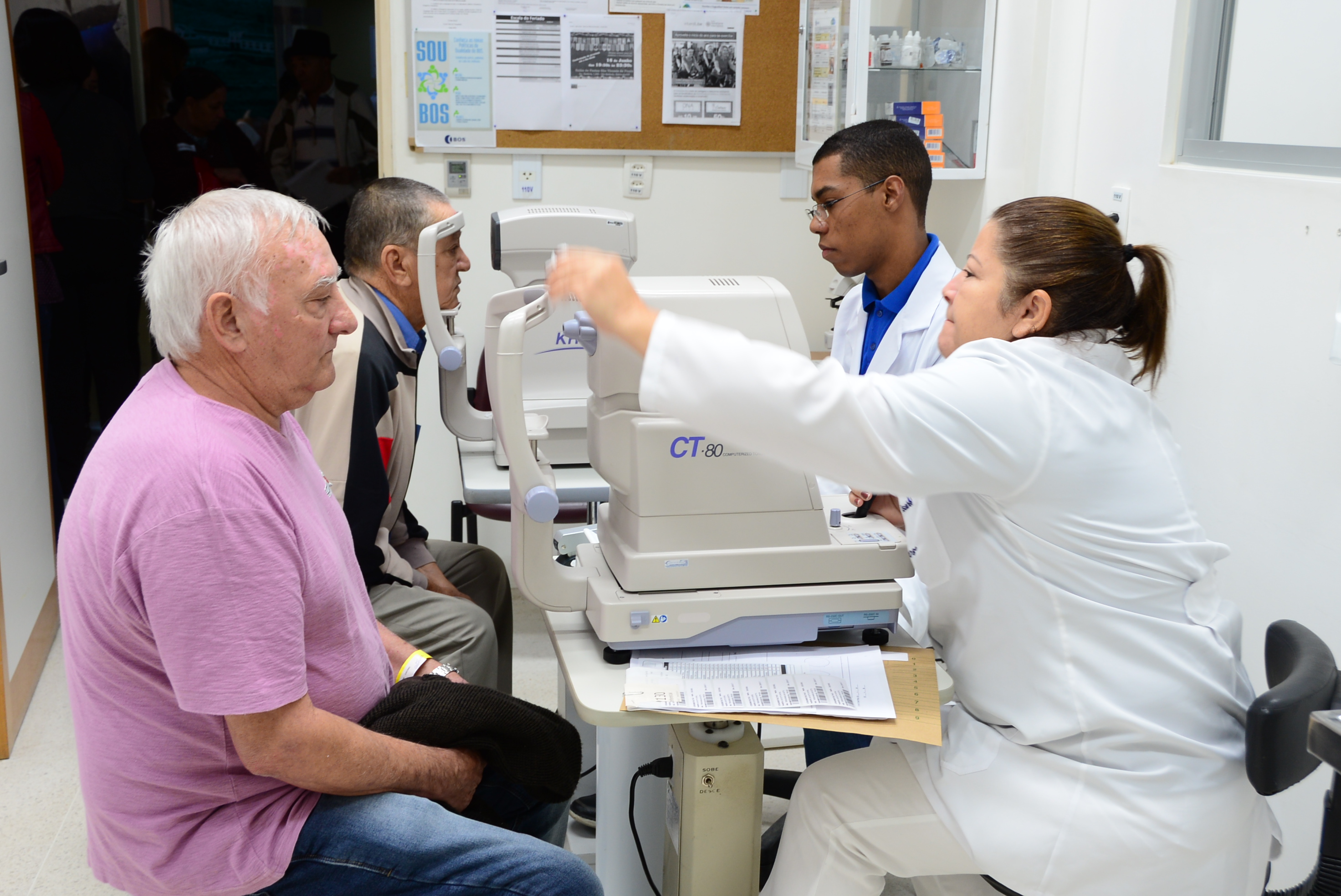 Limitada para fazer tarefas básicas do cotidiano, como ler e cozinhar, Maria do Socorro de Lima, de 73 anos, já operou a catarata mas voltou a ter uma avaliação cirúrgica. Moradora do jardim Renascer, enquanto saía da sala de triagem, a aposentada elogiou o sistema de atendimento deste sábado com várias etapas atendidas no mesmo dia. “Cheguei perto das 7h e minha parte já está quase terminando”, comentou. Uma hora e meia foi o tempo planejado pelo hospital para que o paciente passasse por todos os exames e consultas durante o mutirão, conforme explicou o médico Fernando Cresta, chefe do departamento de catarata do BOS. Para conseguir este feito, a escala do mutirão conta com vinte médicos e mais 35 funcionários do Banco de Olhos.