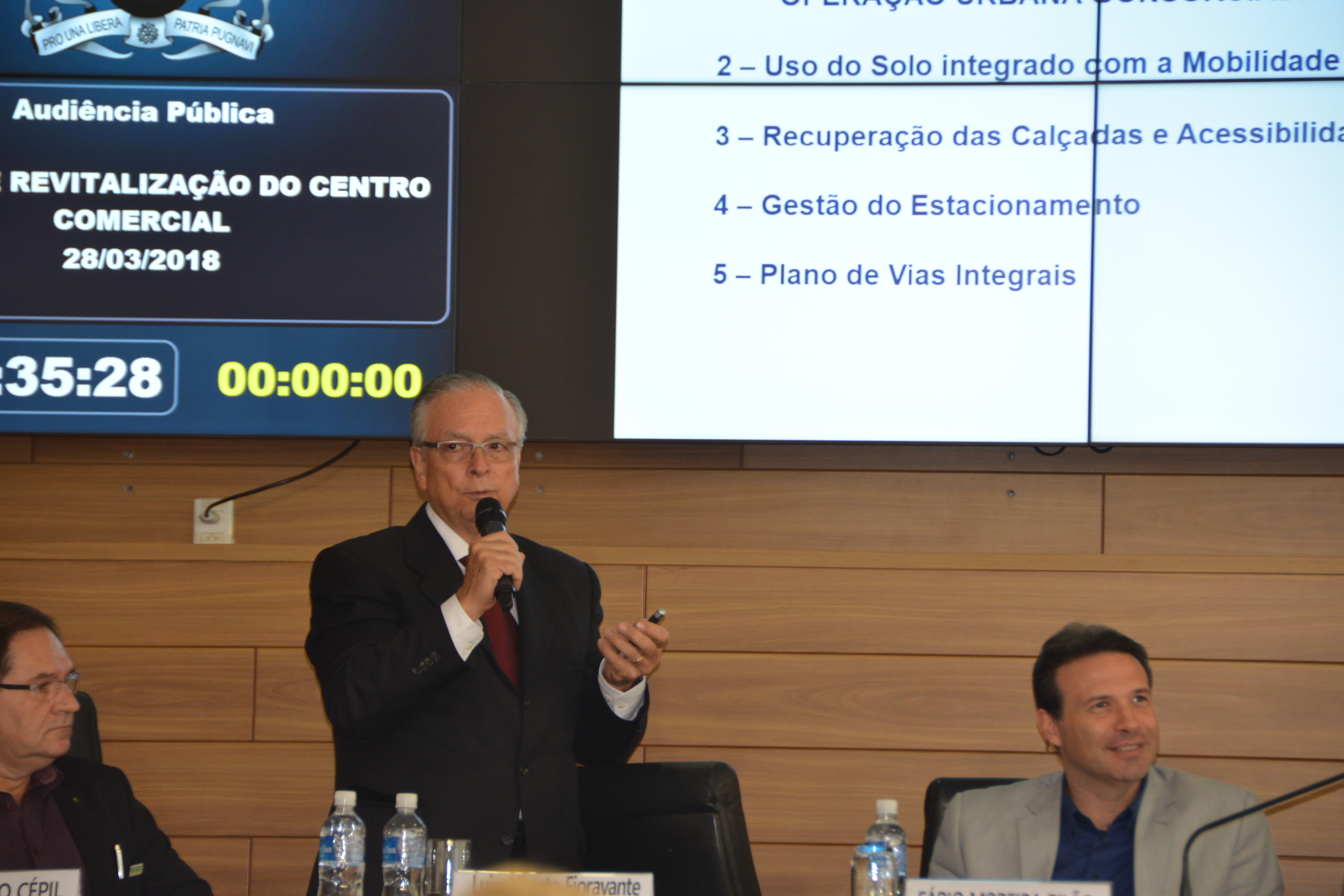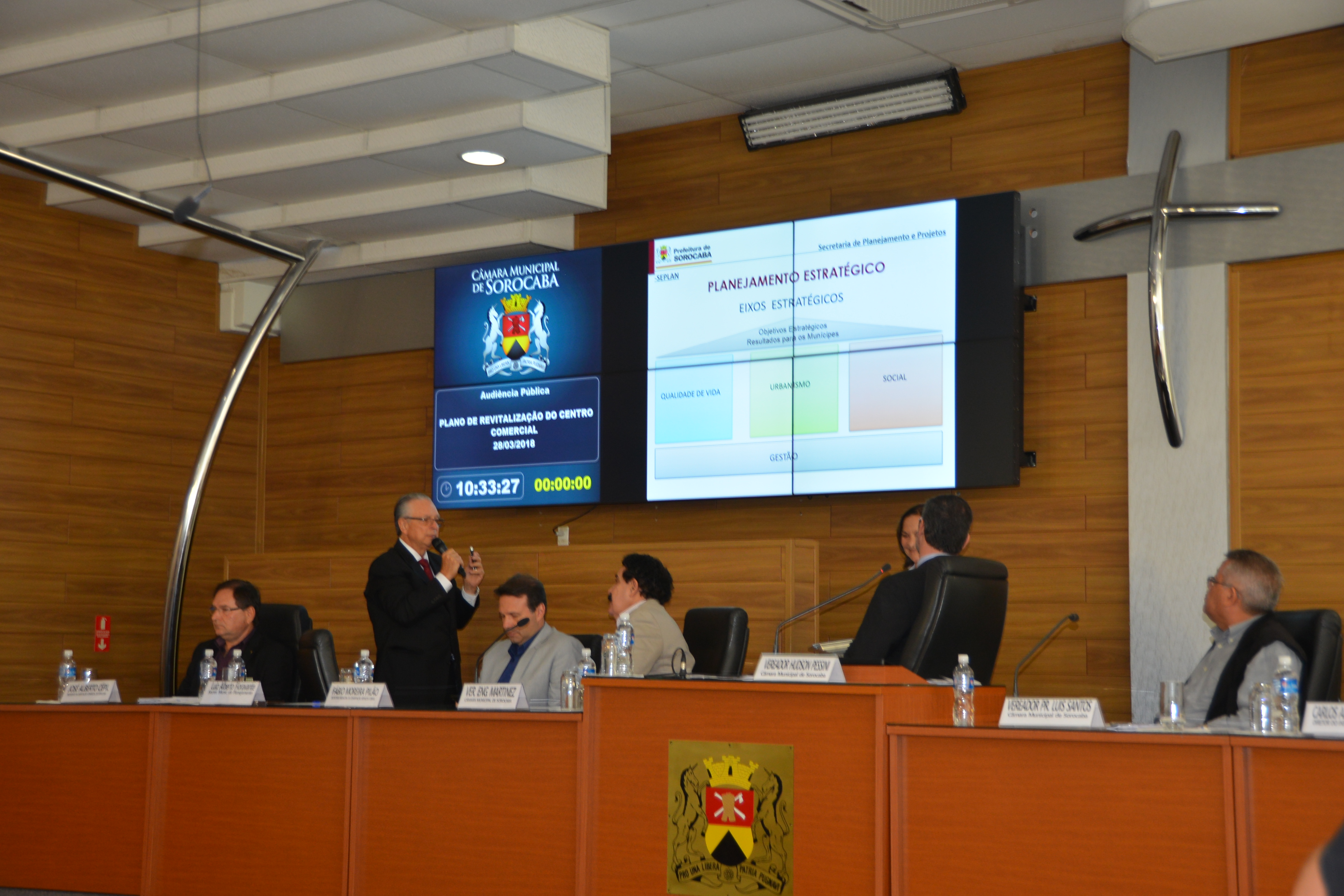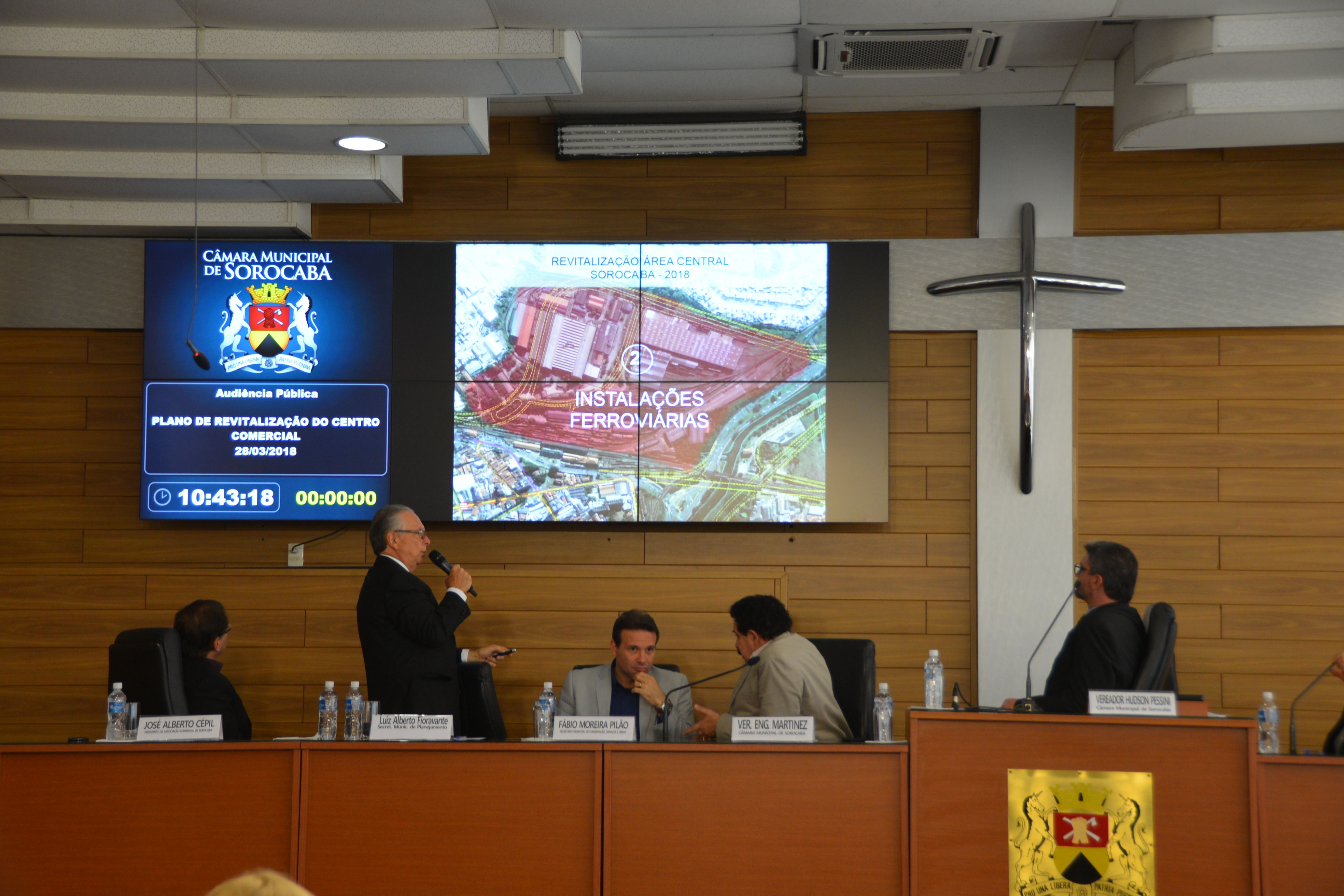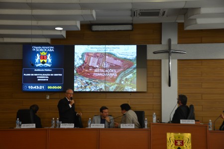 O plano de revitalização do Centro Comercial de Sorocaba foi discutido em audiência pública no plenário da Câmara Municipal, na manhã desta quarta-feira (28). O debate contou com a presença dos Secretários Luiz Alberto Fioravante (Planejamento e Projetos) e Fábio Pilão (Conservação, Serviços Públicos e Obras). Foram apresentados os planejamentos estratégicos com os estudos e projetos das obras viárias, transportes urbanos, parque e calçadas, que contemplam esta revitalização. Um planejamento que vai melhorar a qualidade de vida, o urbanismo e o setor social.