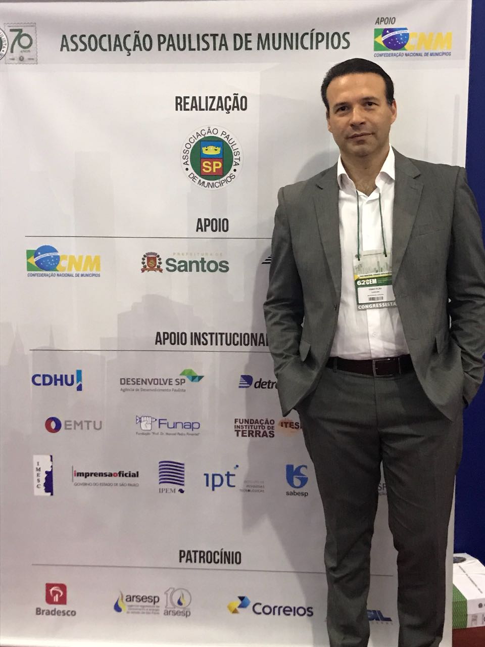 O Secretário de Conservação, Serviços e Obras (Serpo), Fabio Pilão e o Chefe de Gabinete, Alexandre Robim, estão representando a Prefeitura de Sorocaba no 62º Congresso Estadual de Municípios, que traz este ano como tema “País Moderno, Cidades Inteligentes”. O fórum, que começou na última segunda-feira (2) e termina neste sábado (7), na cidade de Santos, debate a destinação de resíduos sólidos e a aplicação do programa do Governo Federal “Internet Para Todos”.